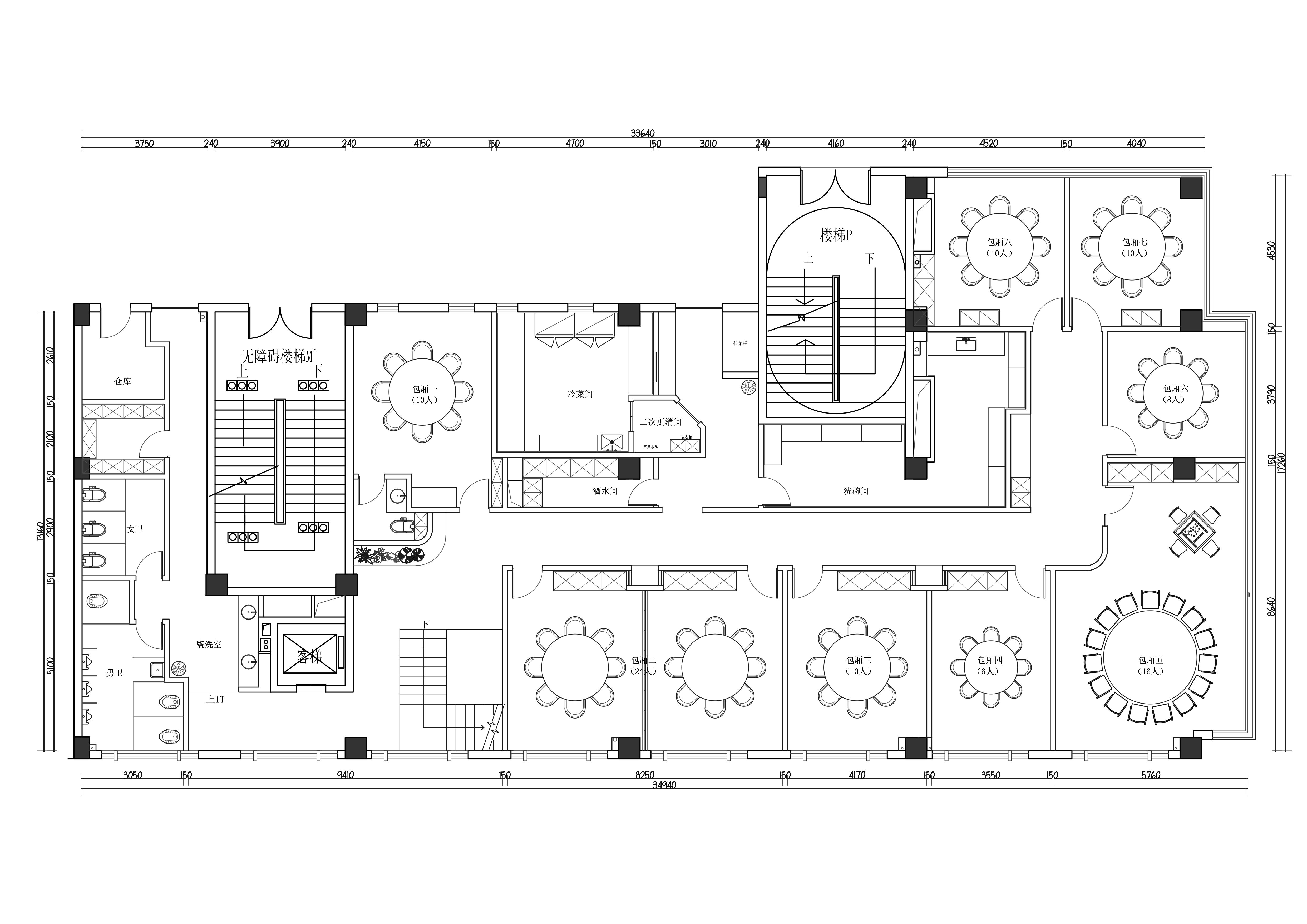 空间布局:电梯与楼梯双通道分流,避免拥堵;包厢隔音屏风满足商务宴请与家宴的静逸需求。
