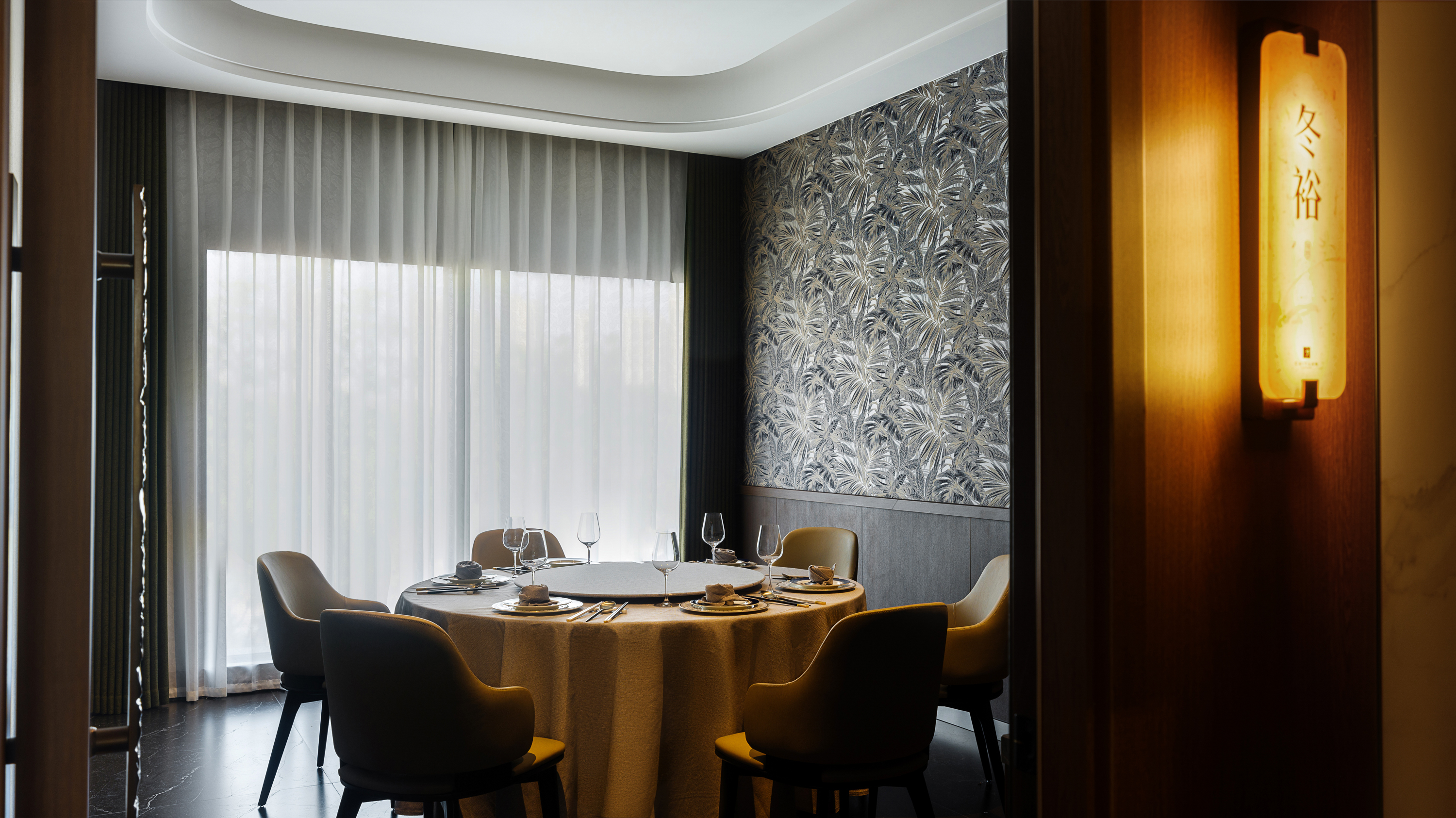 包厢以古典词牌命名,仿玉石灯牌温润如玉,门头已诉尽诗意。
