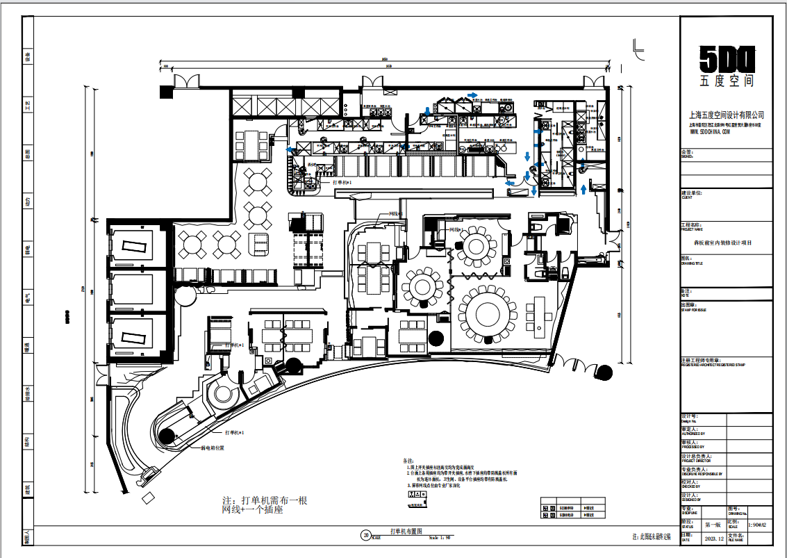 空间布局:整个空间按就餐动线分为门头区域、入口区域、廊道区域、大厅区域、包间区域、卫生间区域,每个区域都有不同主题