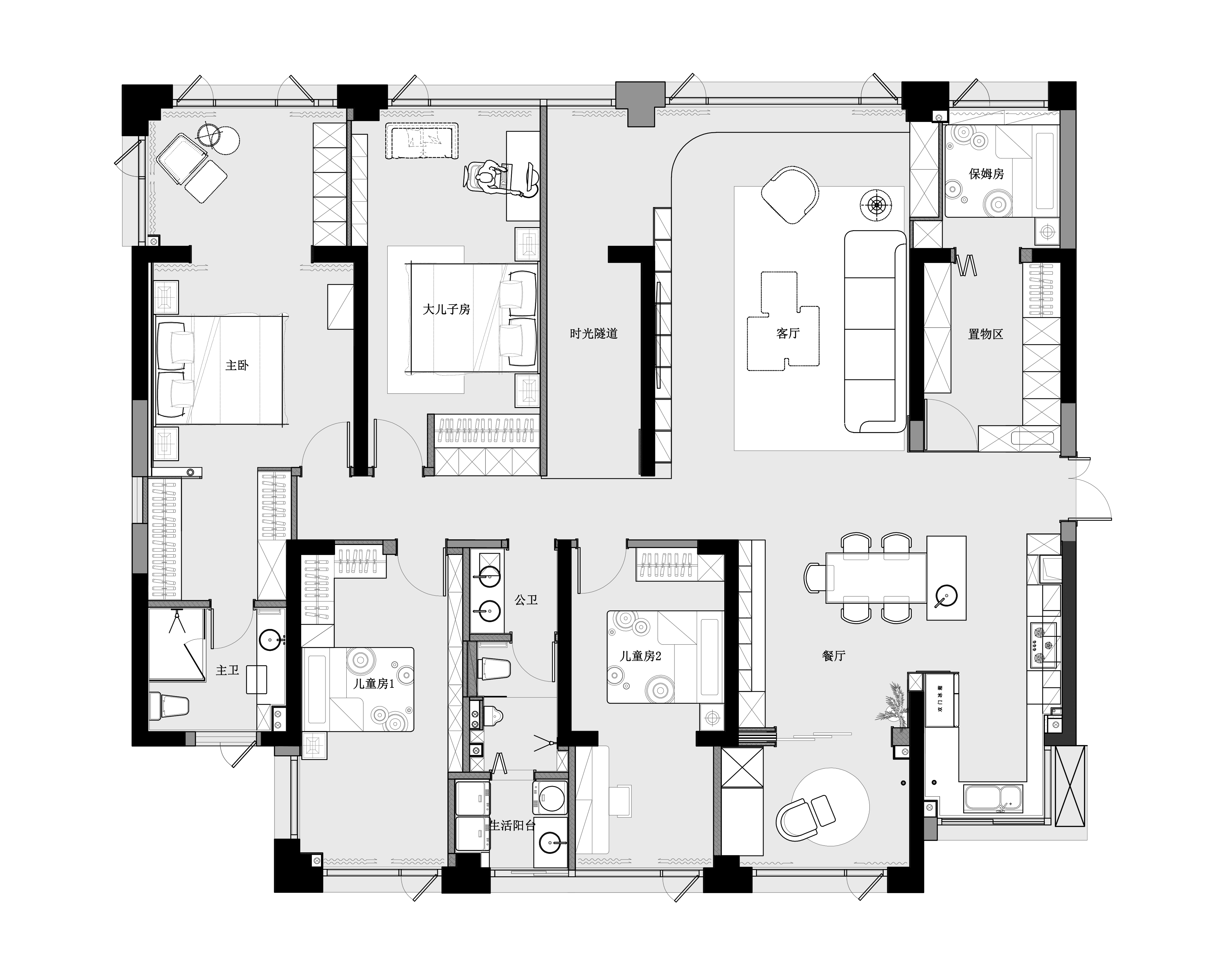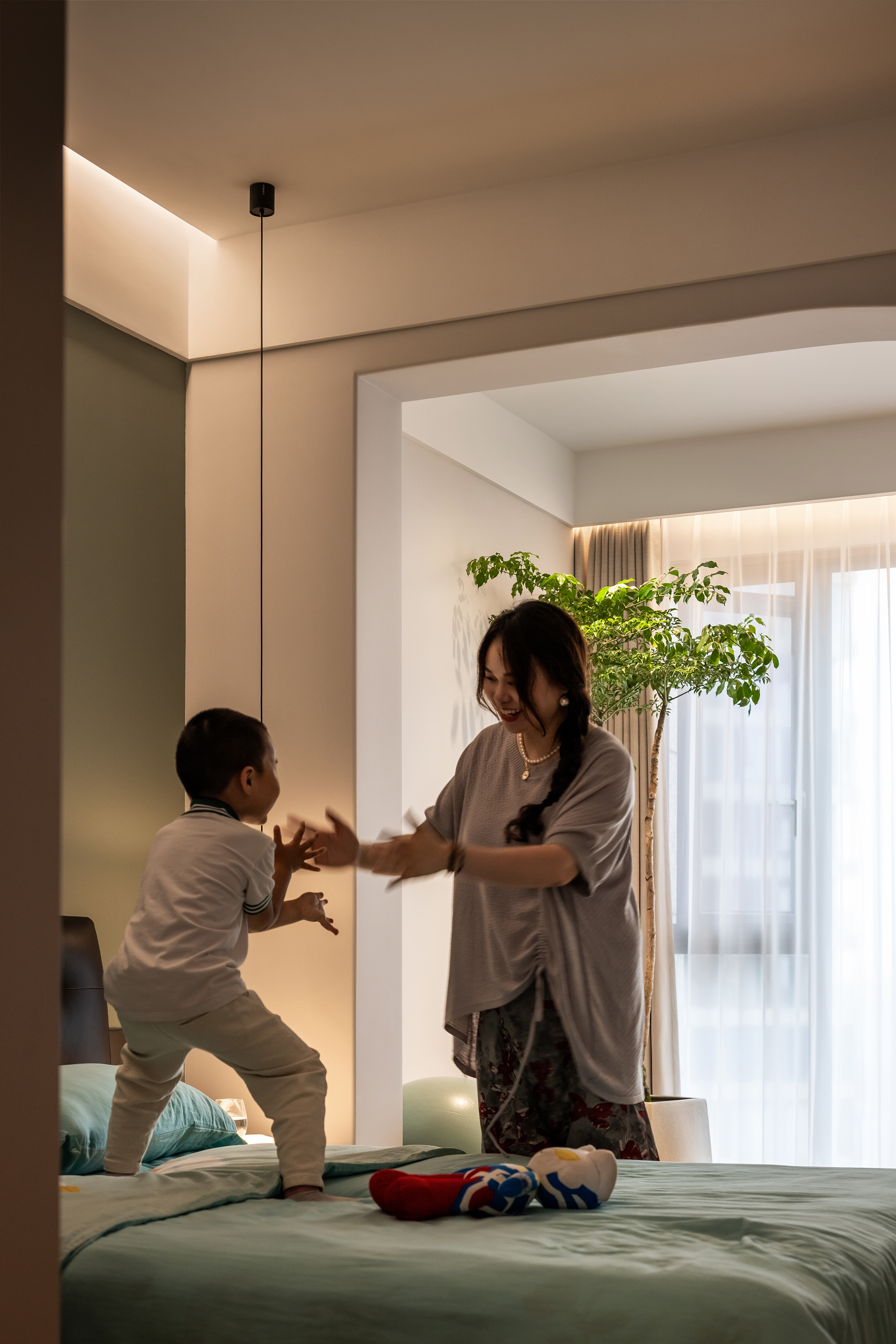 用户体验:这里不仅是居所,更是一个让成长与陪伴具象化的空间——时光隧道里,孩子们的笑声回荡在耳边,客厅的画作记录着全家人的生肖记忆,每一处设计都在诉说:家,是爱与被爱的故事。