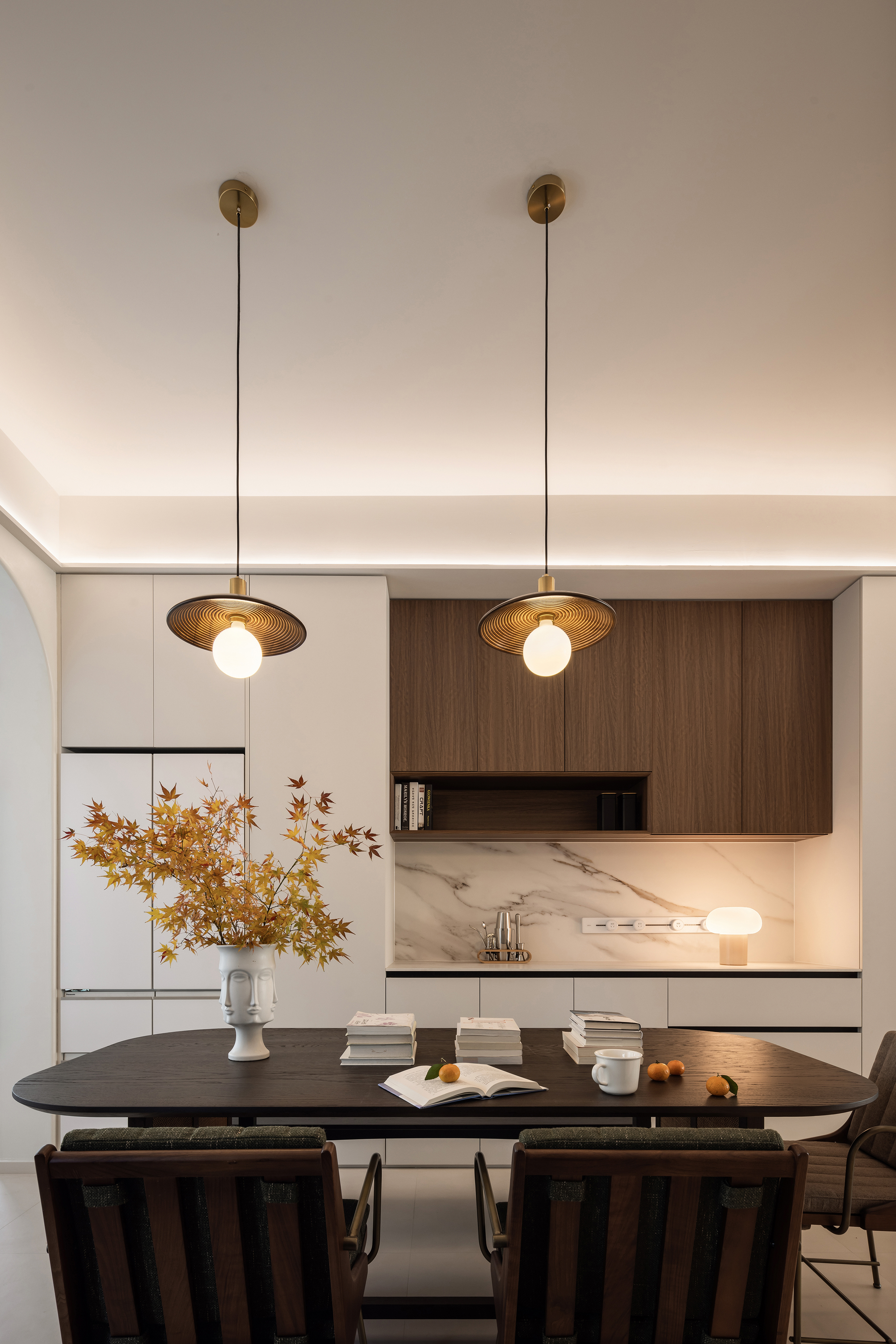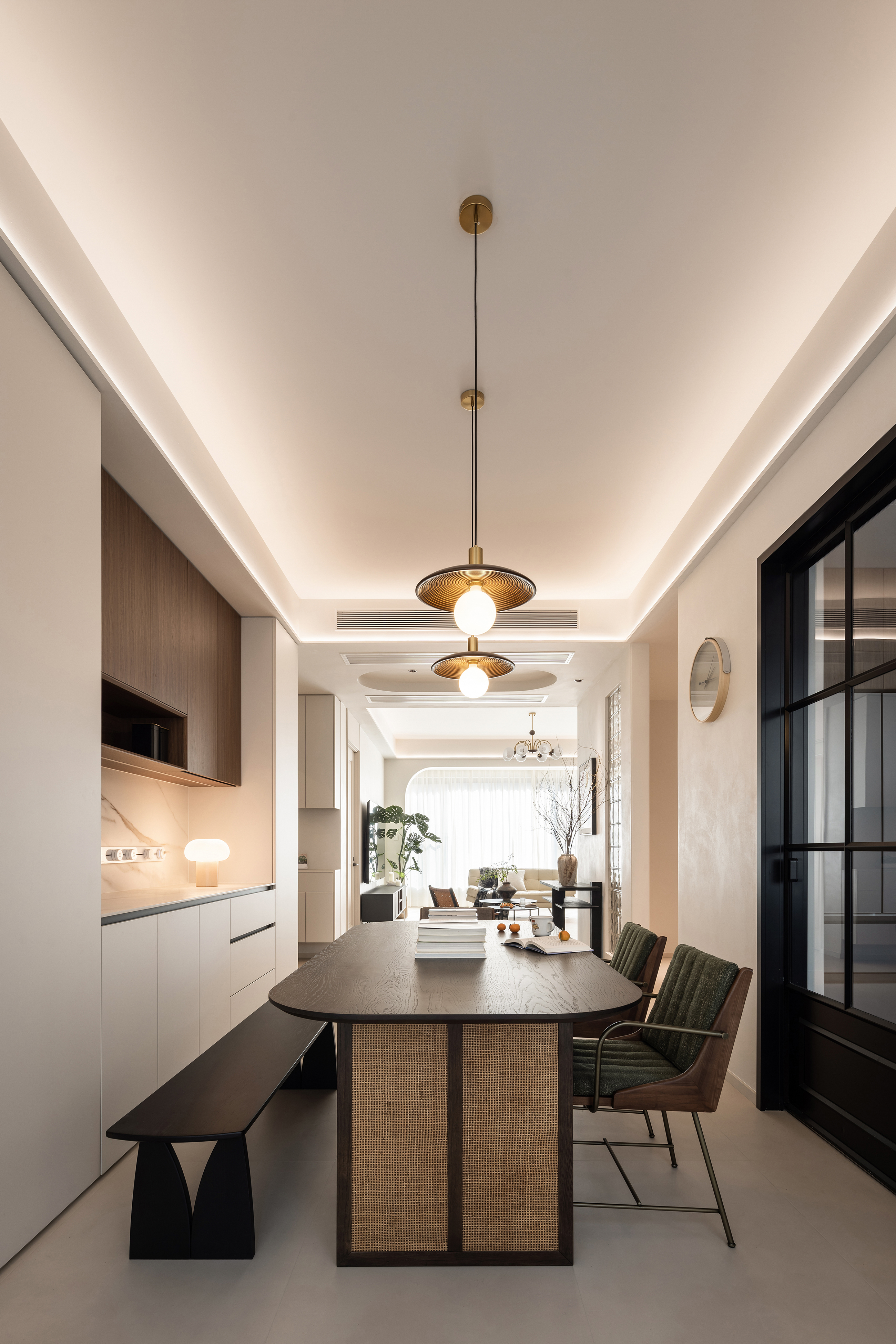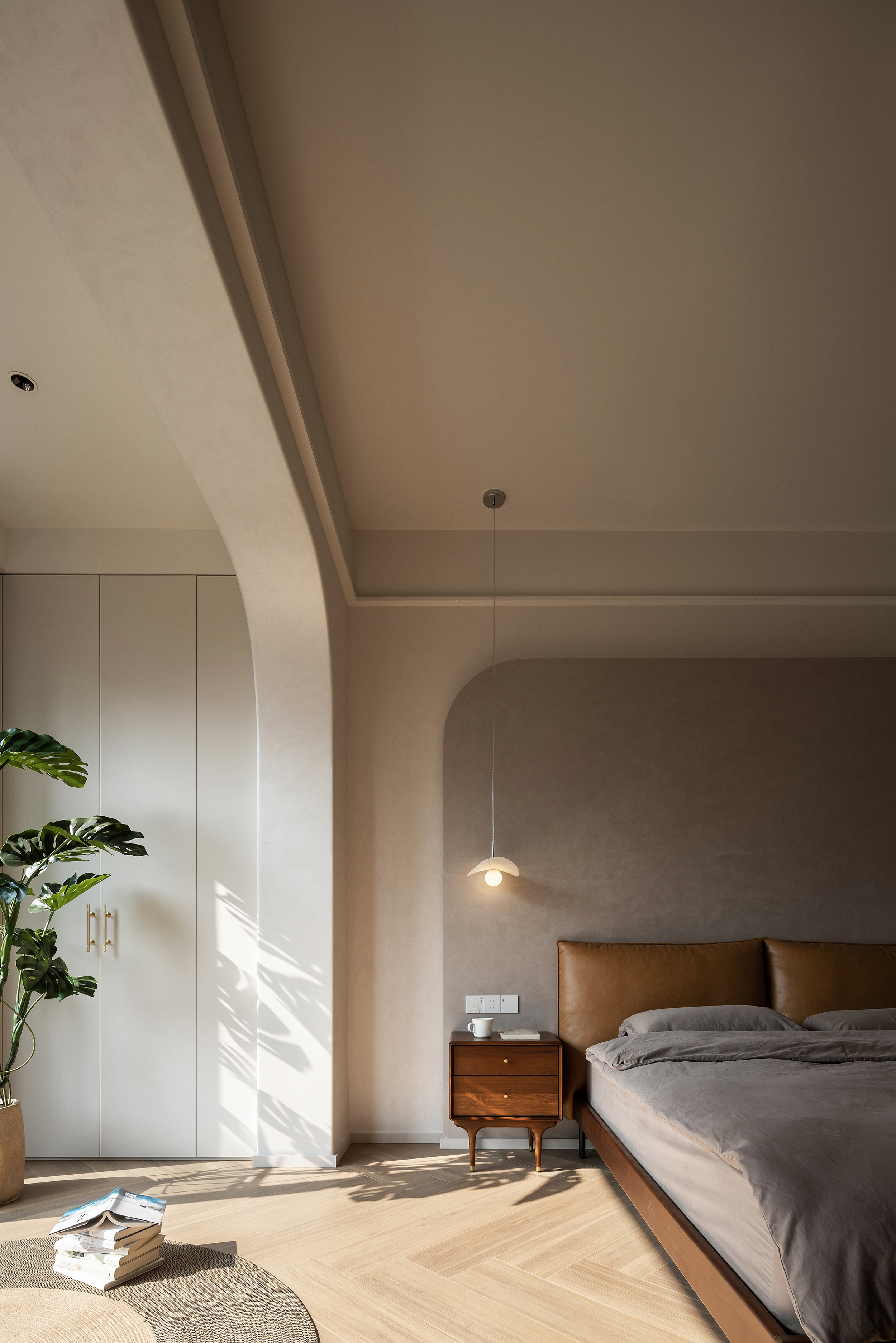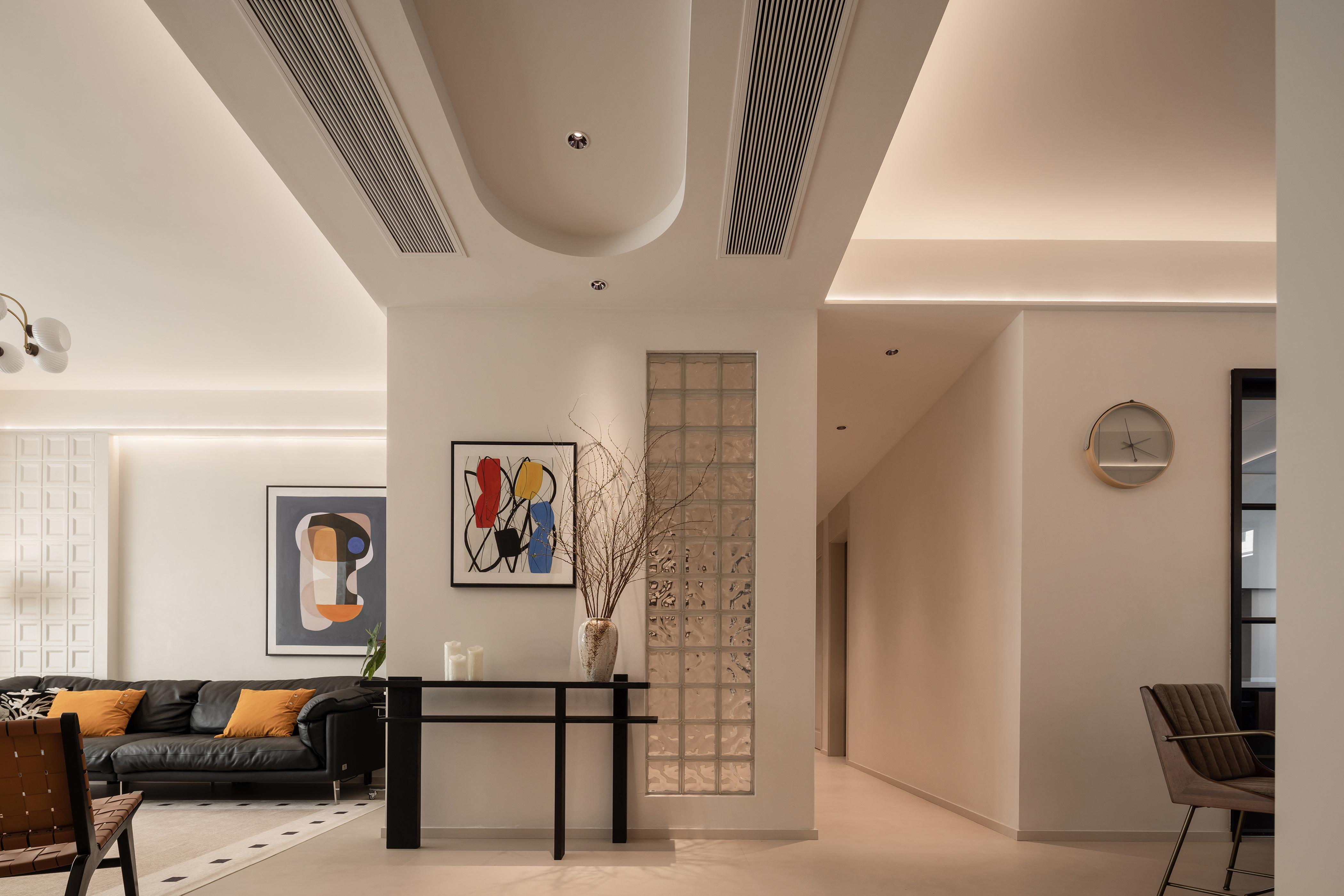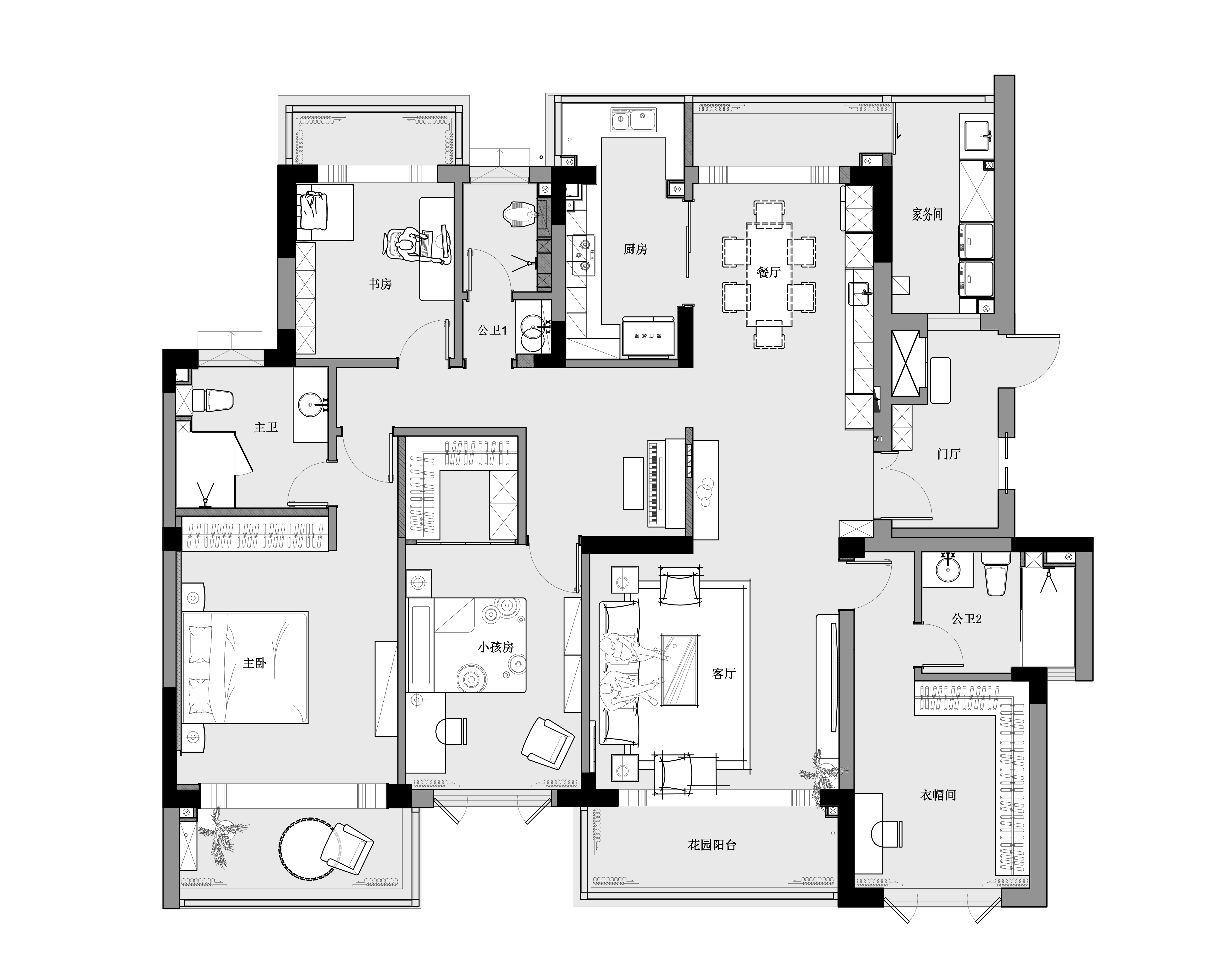 空间布局:在结构布局方面,我们充分尊重女主人的生活习惯与职业特点。进门首个卧室被创新性地改造为衣帽间与次净衣更换区,既满足了她的实用需求,又体现了对她的细致关怀。