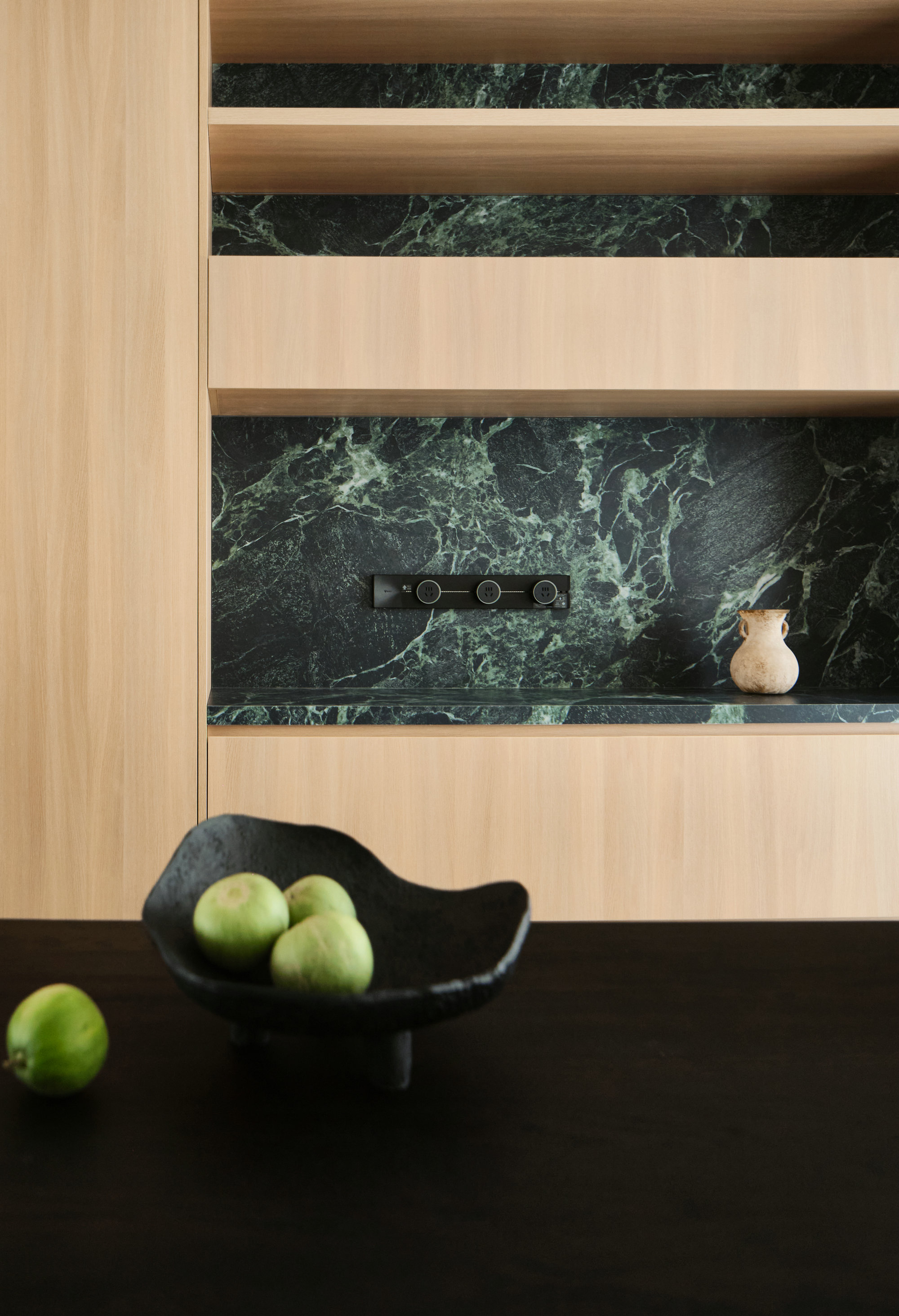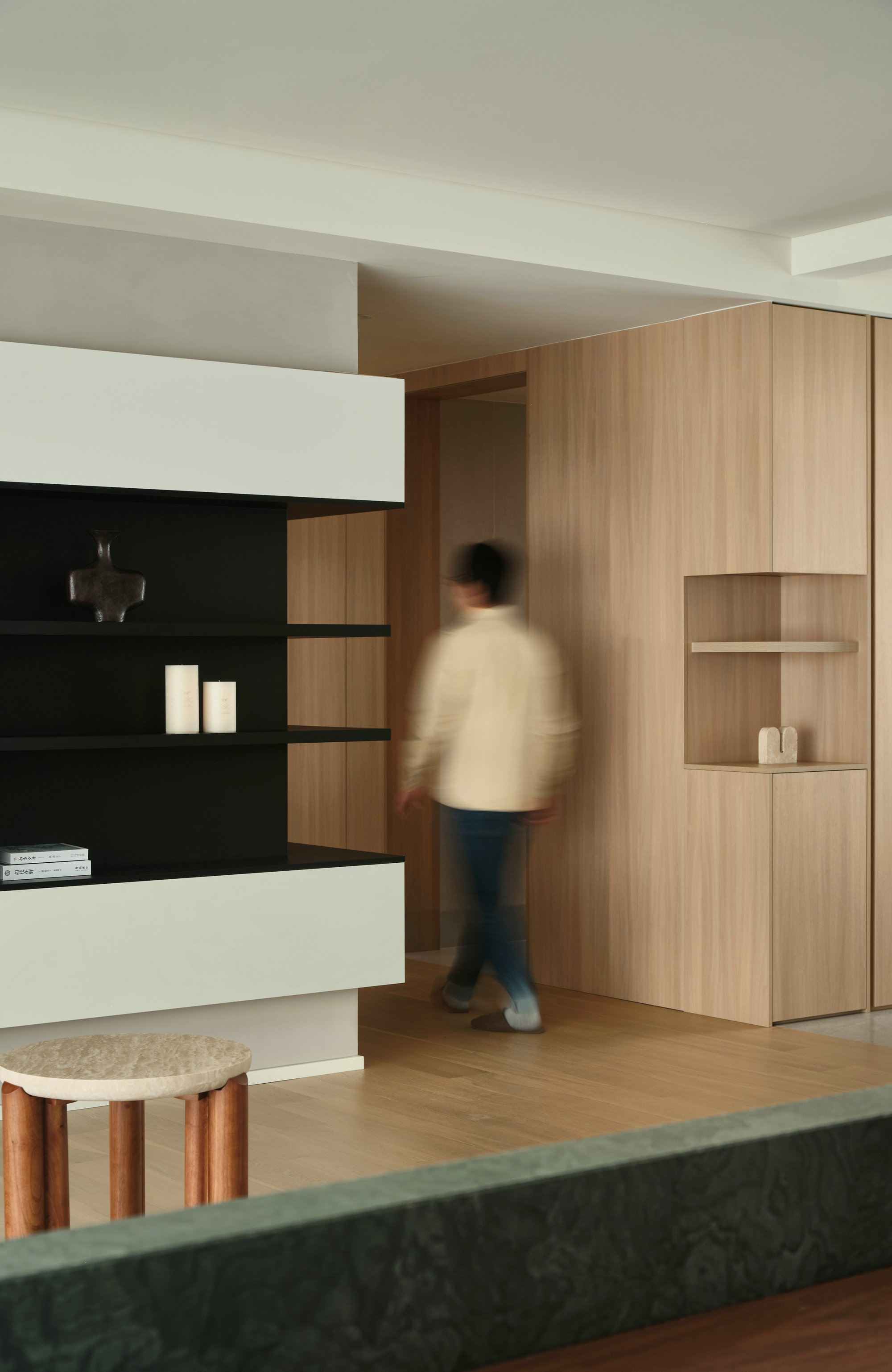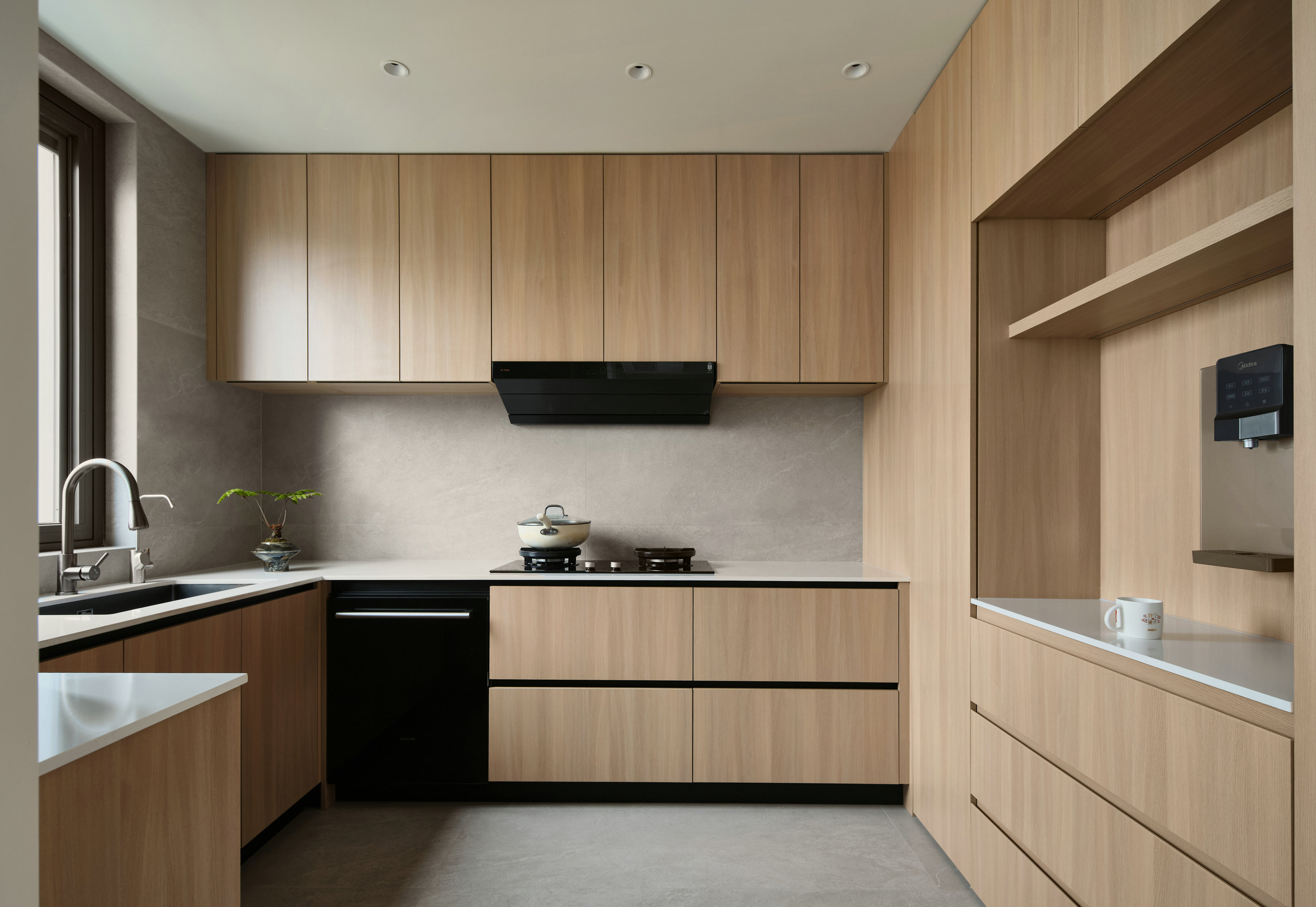 用洄游动线把厨房、岛台和餐桌串起来让它成为家的情感枢纽和幸福制造中心,它是操作台、是临时餐台、是储物柜、是隔断,更是社交聊天的吧台。备菜时可以和家人聊天,朋友来了可以围坐小酌。