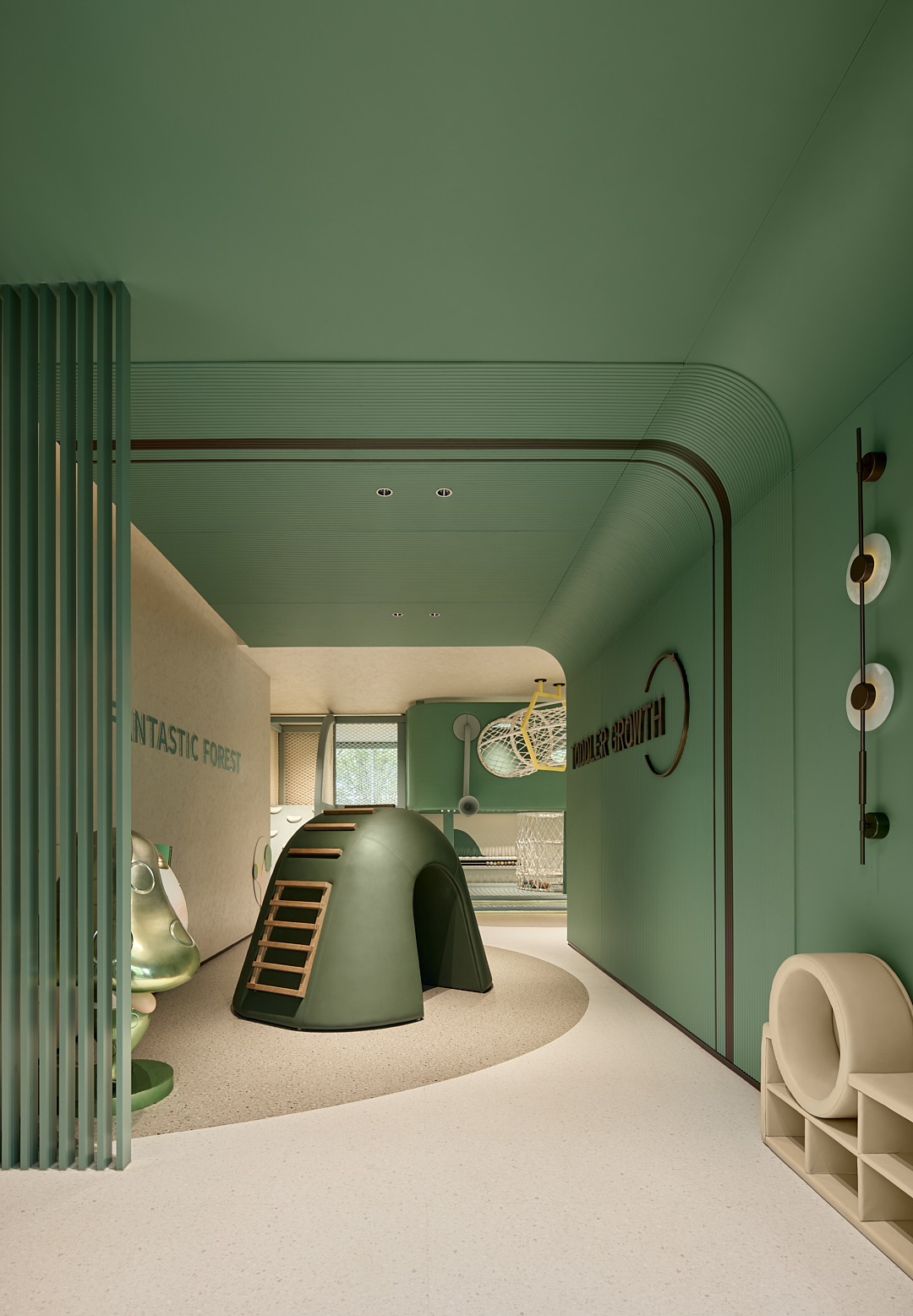 空间意境:空间场景规划以 “内外交叠、全龄适配” 为核心,将社区户外与室内串联,打造邻里交流、健身滋养、长者康乐、儿童成长、泛会所五大聚场,实现不同人群的功能需求全覆盖;环境风格创新聚焦 “自然融合与全龄友好”,以温润材质、灵活布局弱化空间边界,用安全适配设计(如儿童区防撞、长者区无障碍)与自然肌理营造,让共享空间兼具互动活力与舒适质感,诠释全龄共居的生活美学。