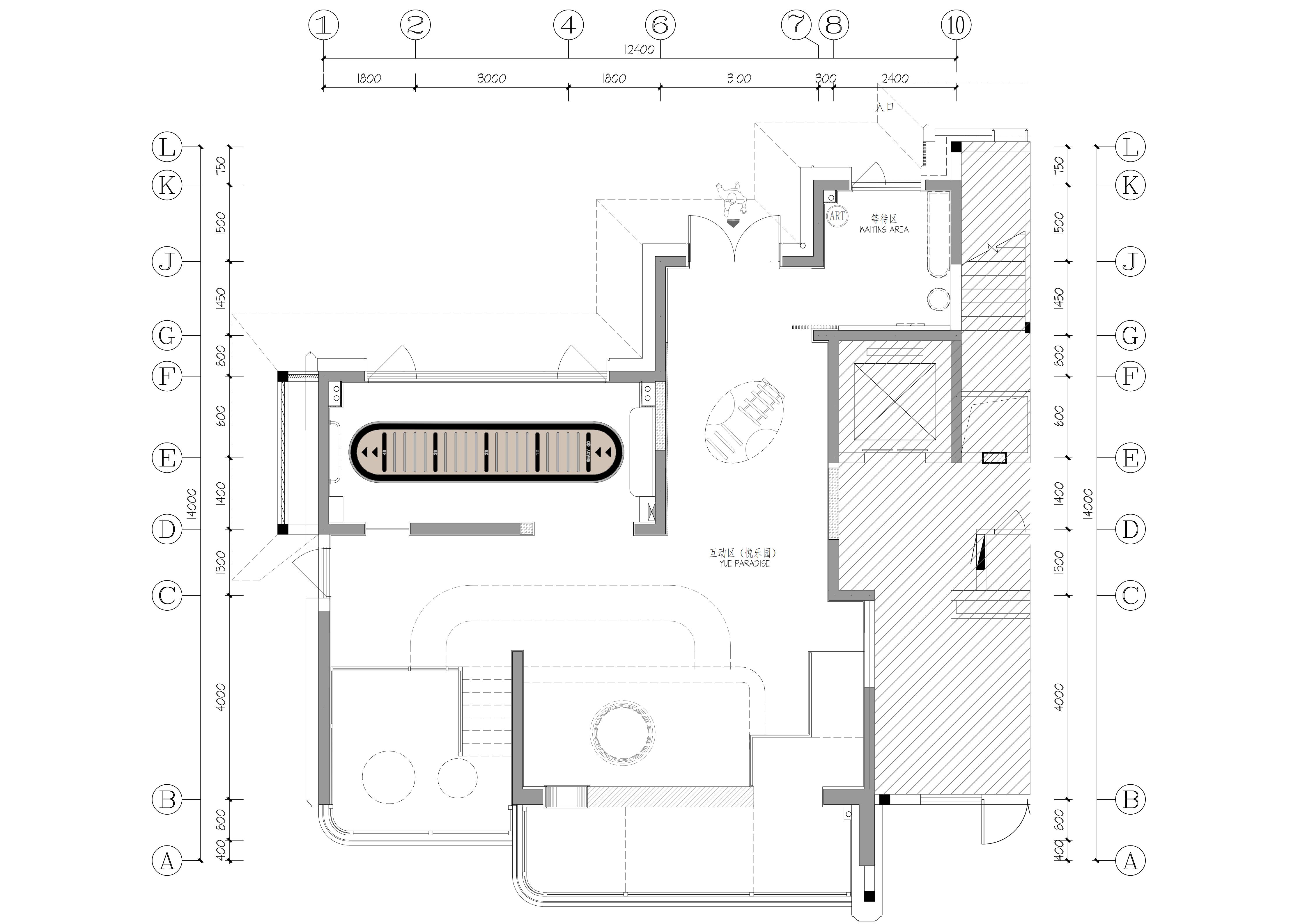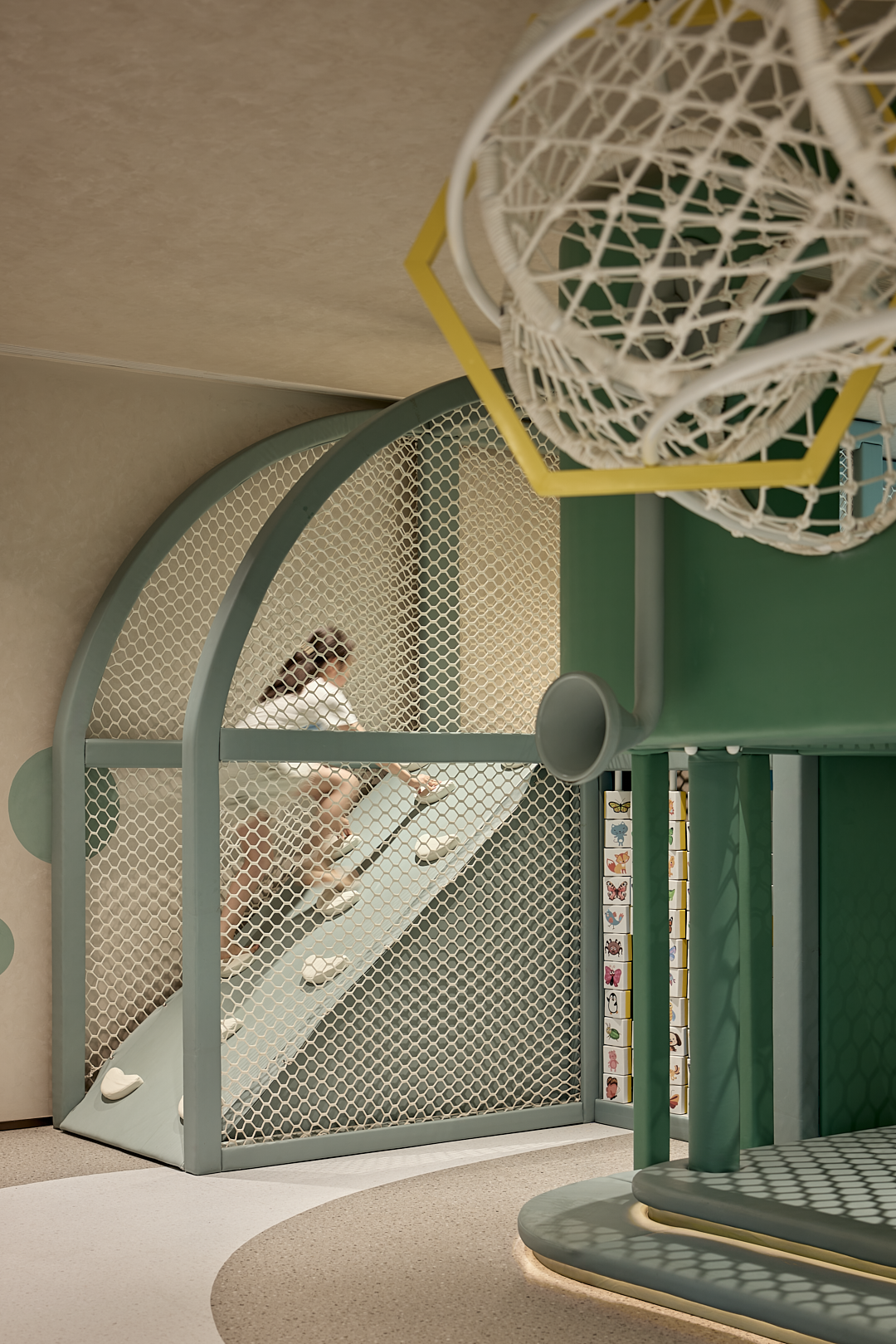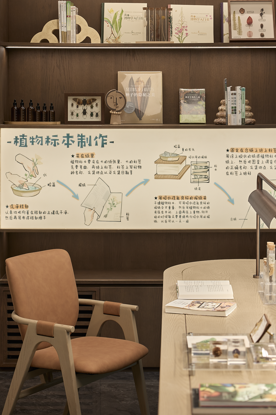 设计选材:空间主要材料包含石材、透光云石、木饰面、水波纹玻璃、金属、陶砖等;选材兼顾全龄适配与风格表达:以石材、陶砖材质提高空间调性,透光云石局部点睛;优选环保达标材料,石材陶砖做防滑处理、磨圆角,保障全龄安全;耐用材质减少损耗,环保用料践行可持续;水波纹玻璃增通透感,木饰面与陶砖显自然肌理,金属点缀精致,契合全龄共享的温润互动风格。