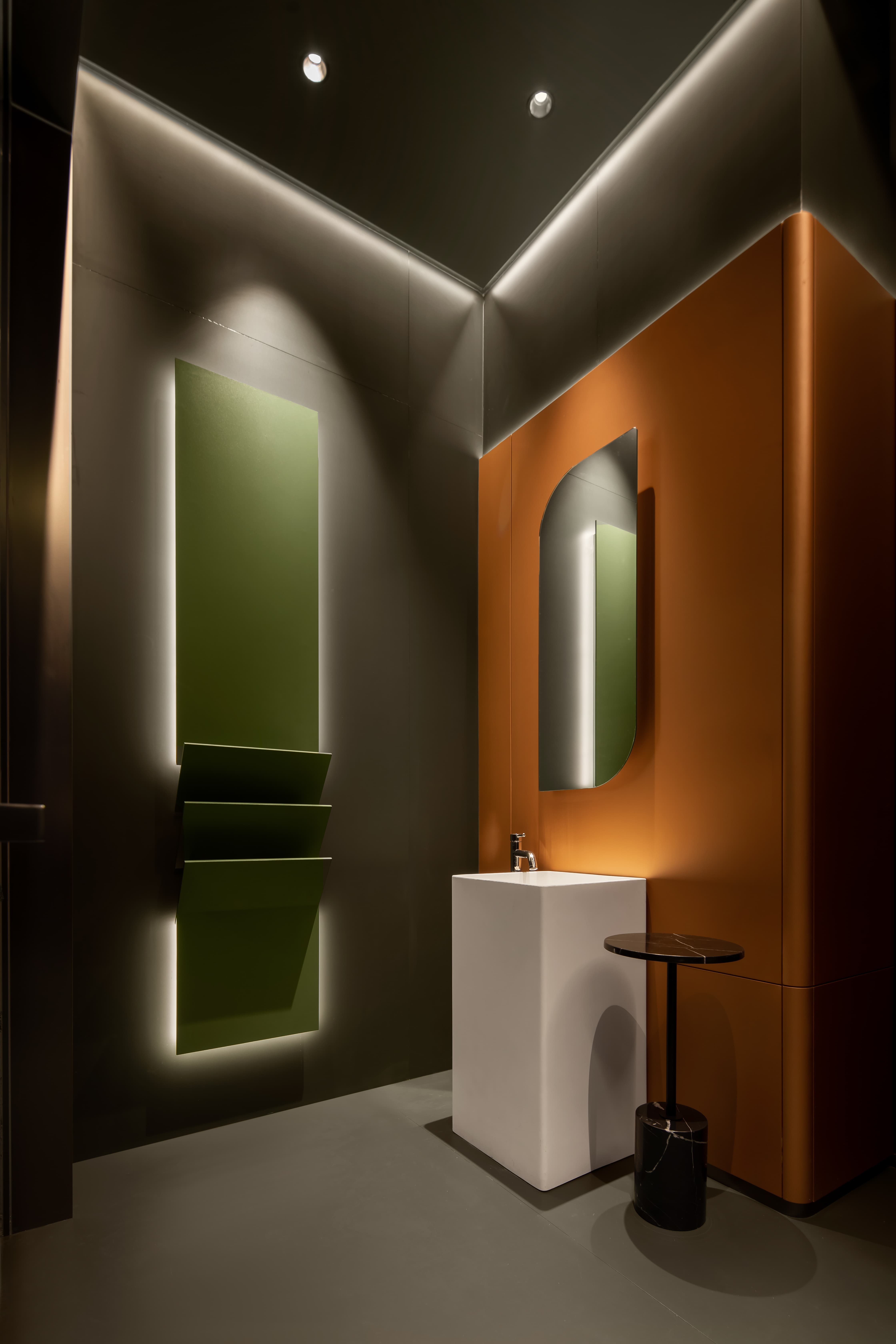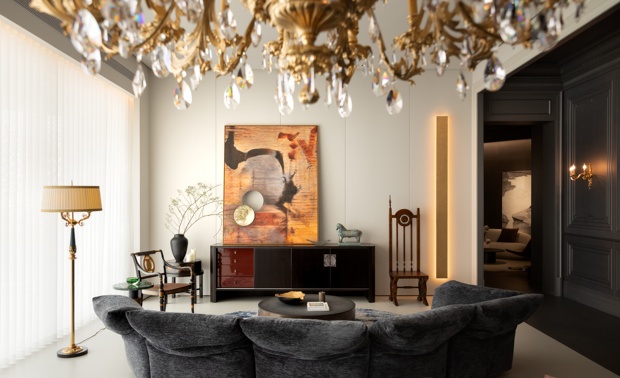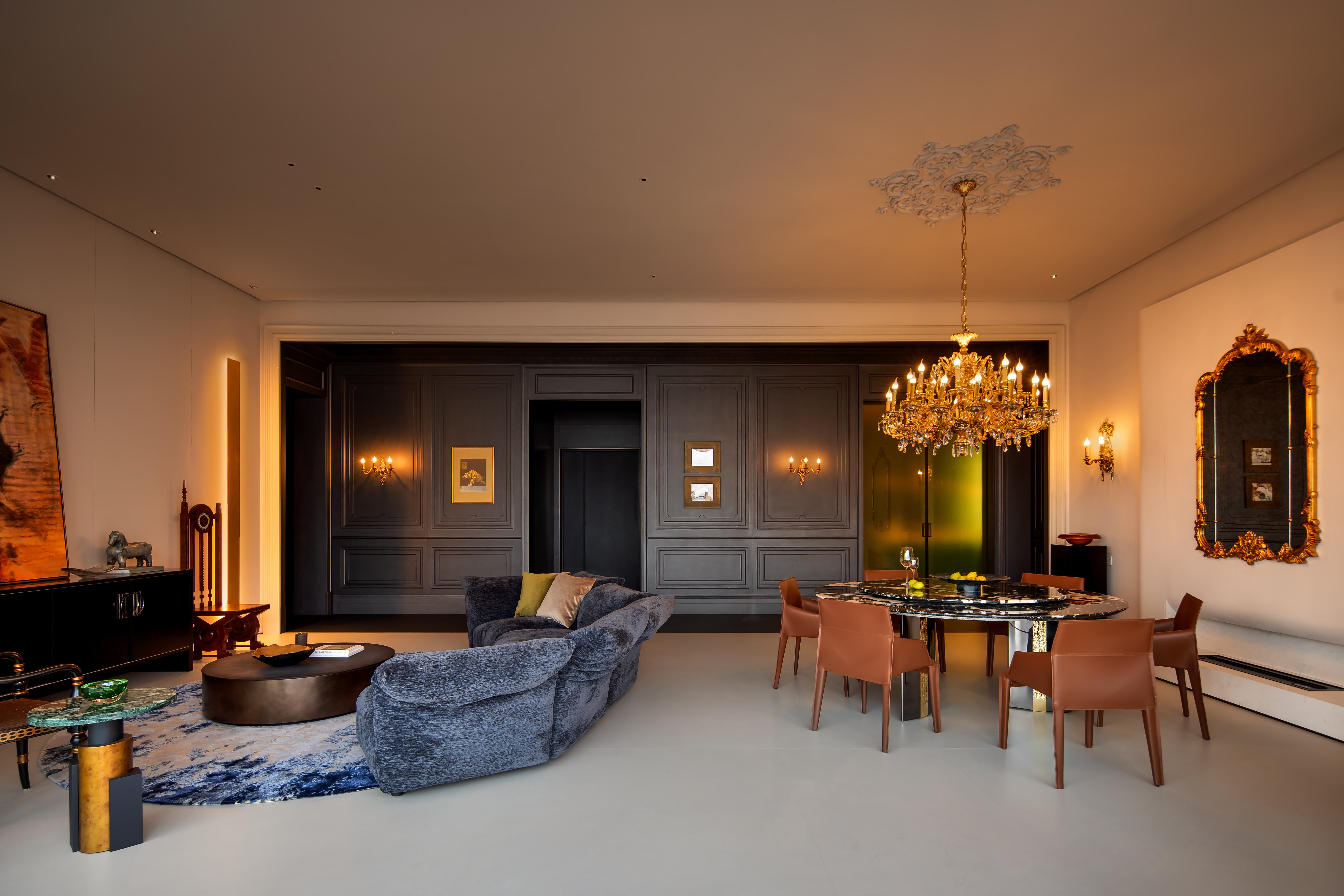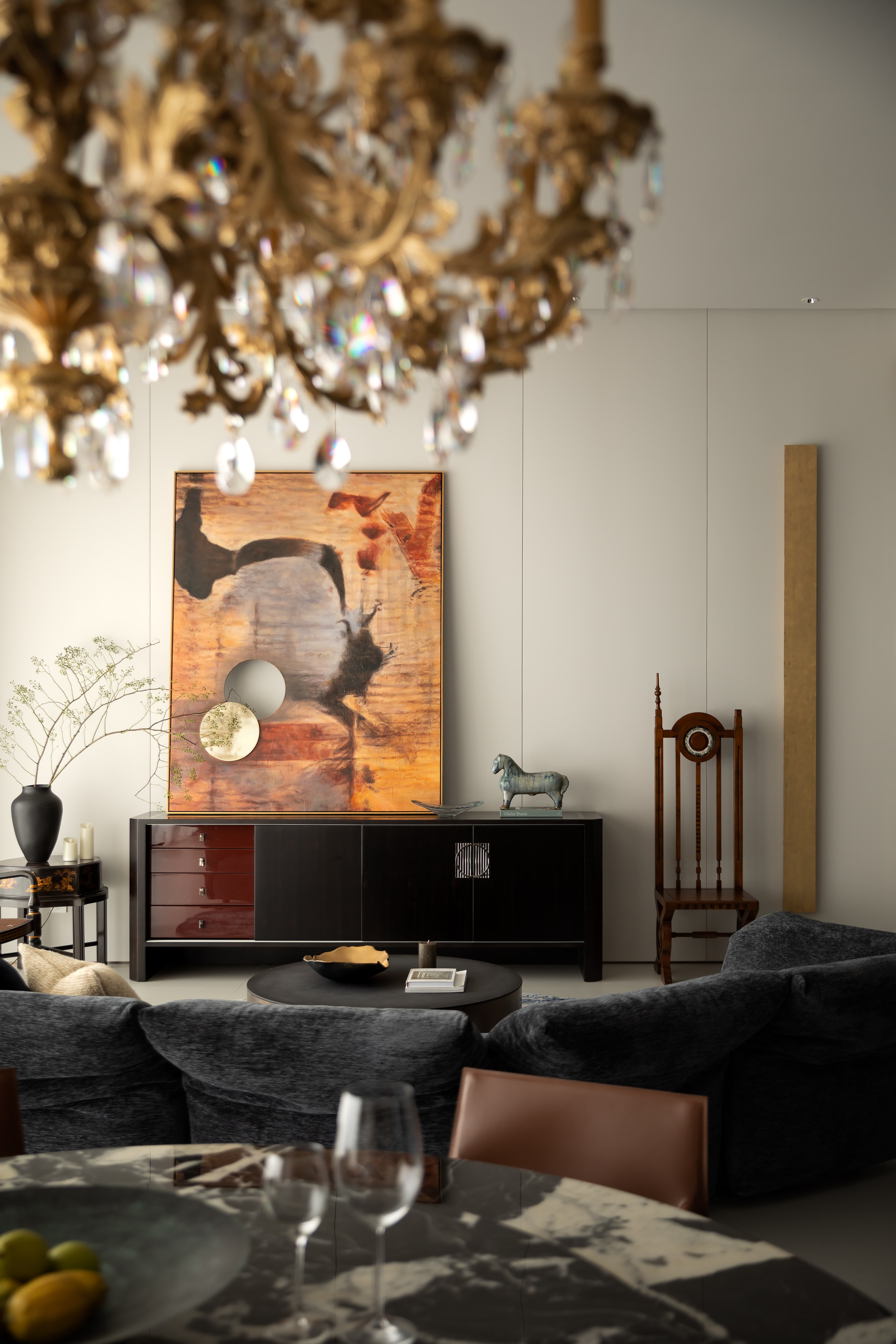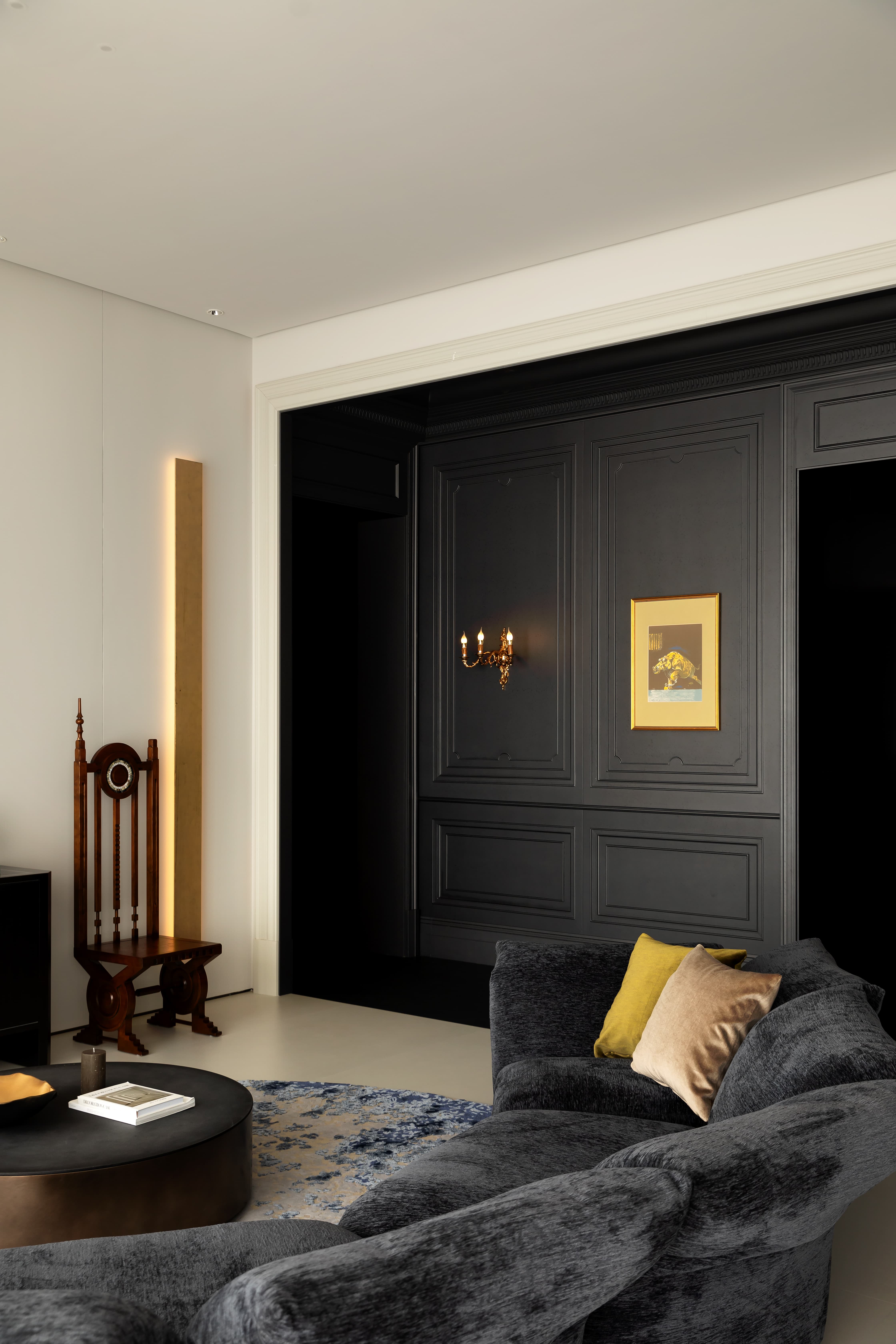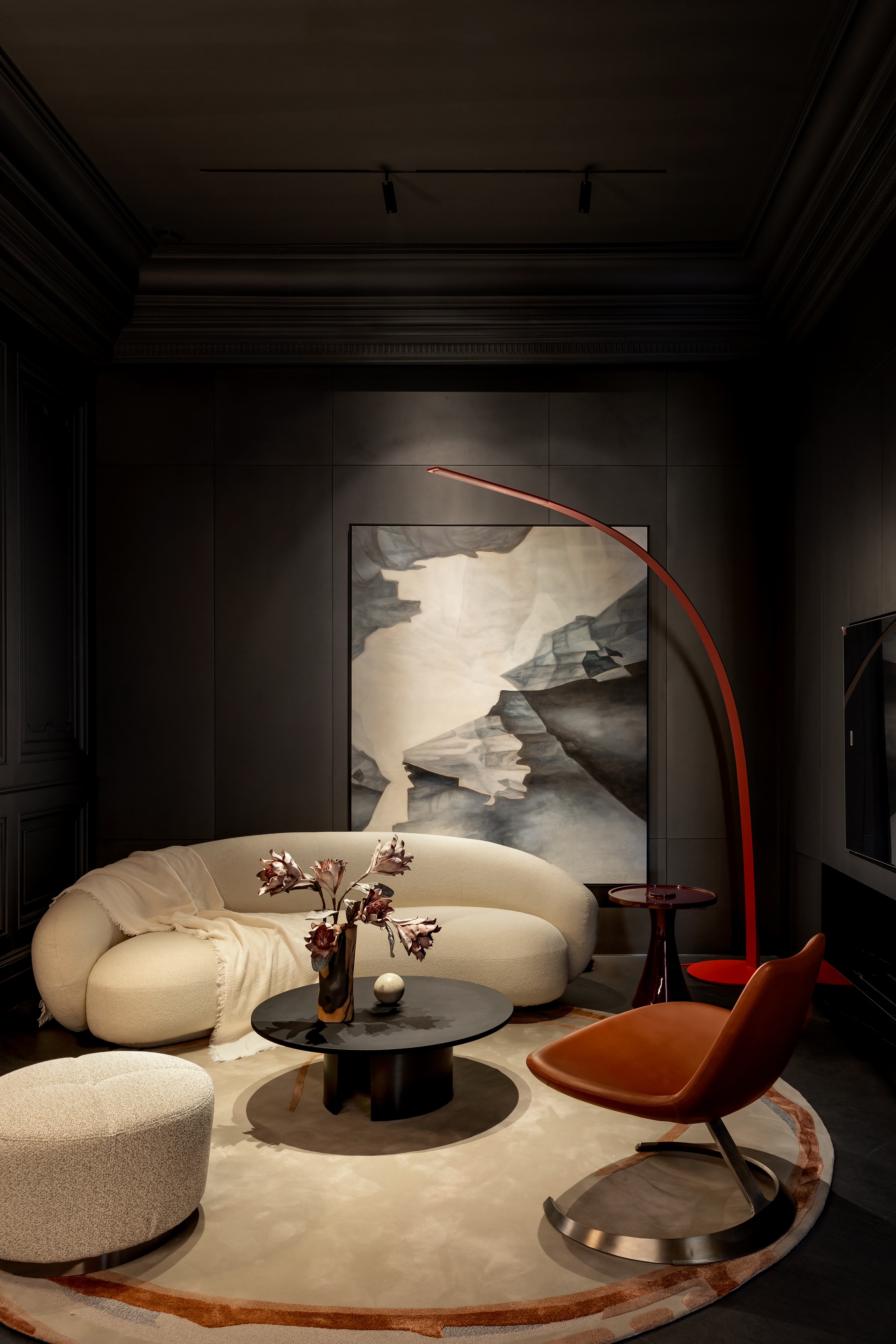 设计选材:颠覆了线条属性的刻板印象,强势的线性包围感,呈现了古典主义的生命力,完全表达了La passione式毫不吝啬的述事感。设计拿起哲学领域中诠释学的理念,便不再拘泥于风格的框制,越发有能力跳脱制约,材质和色彩相互作用,空间厚度和流动性协调合作的结果把视觉上升到全域,腔体力量全线打开--沉厚高贵、温润如玉。