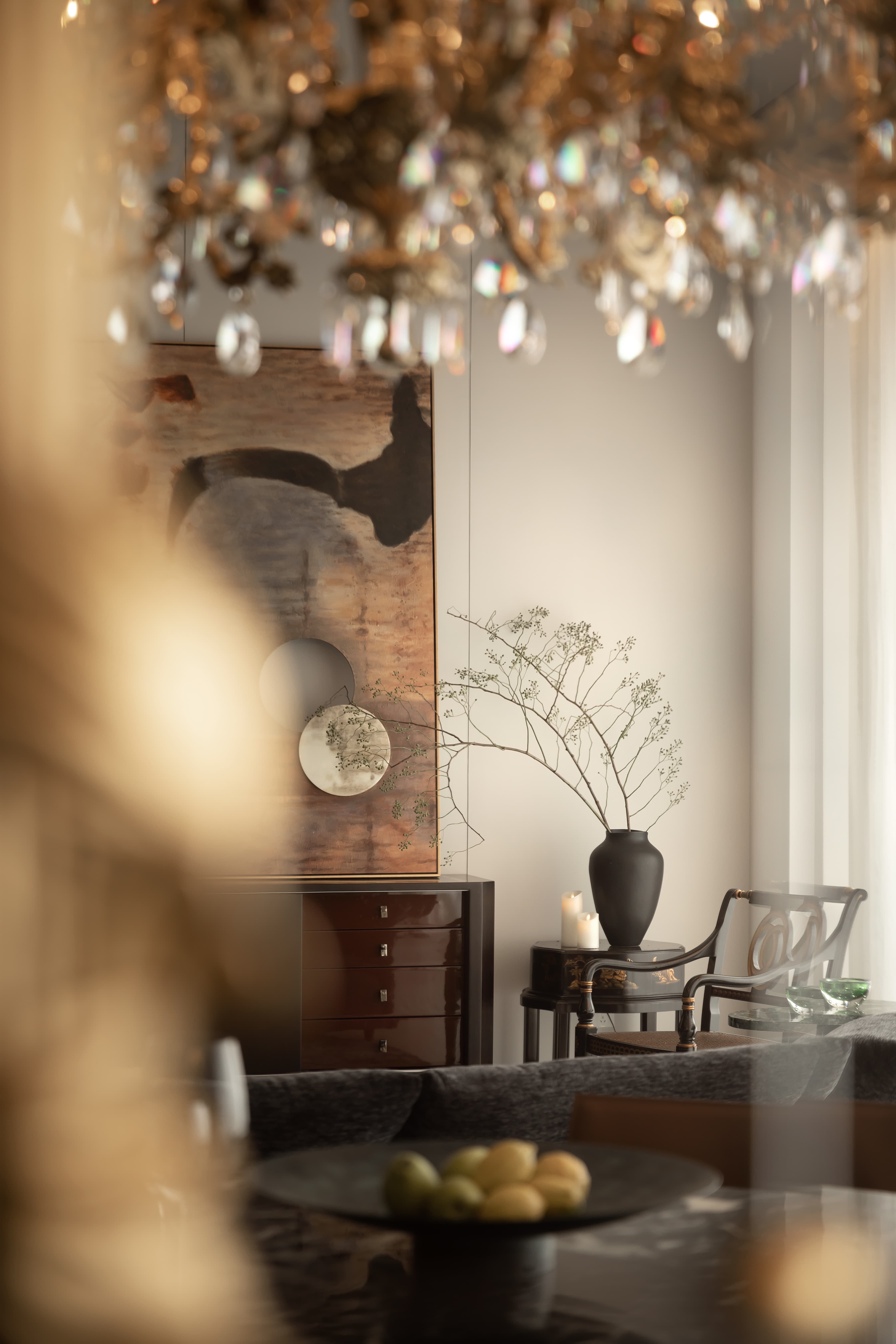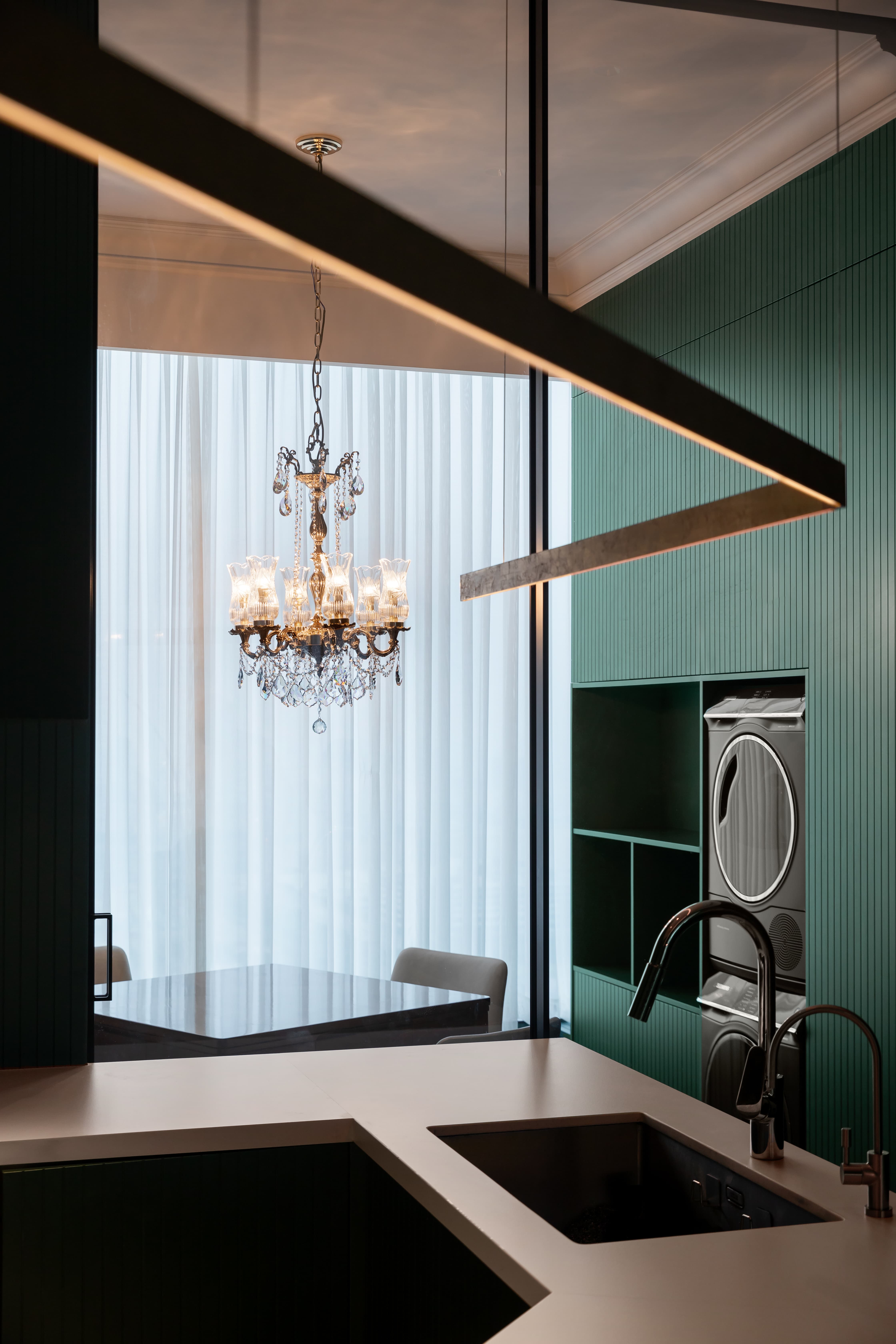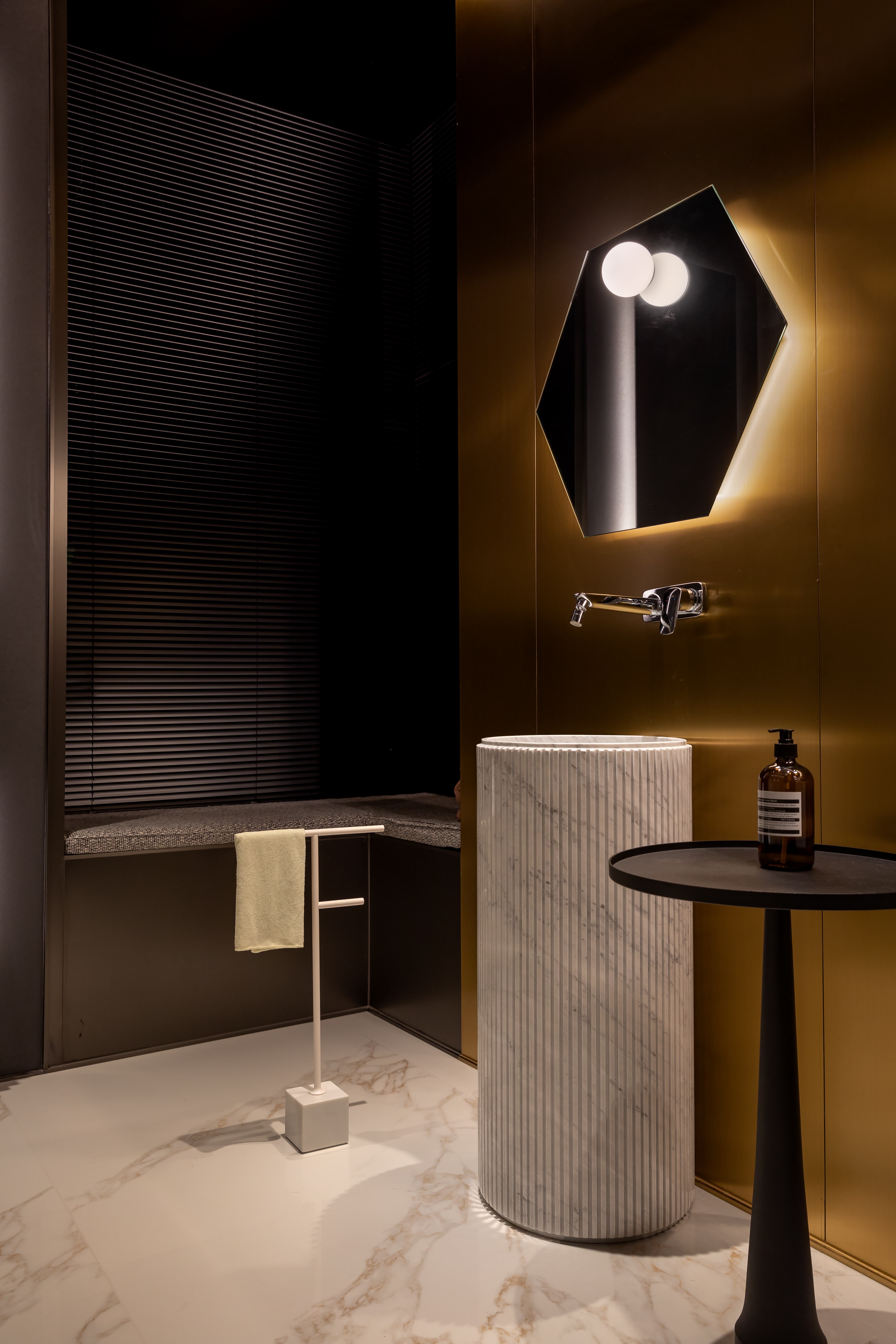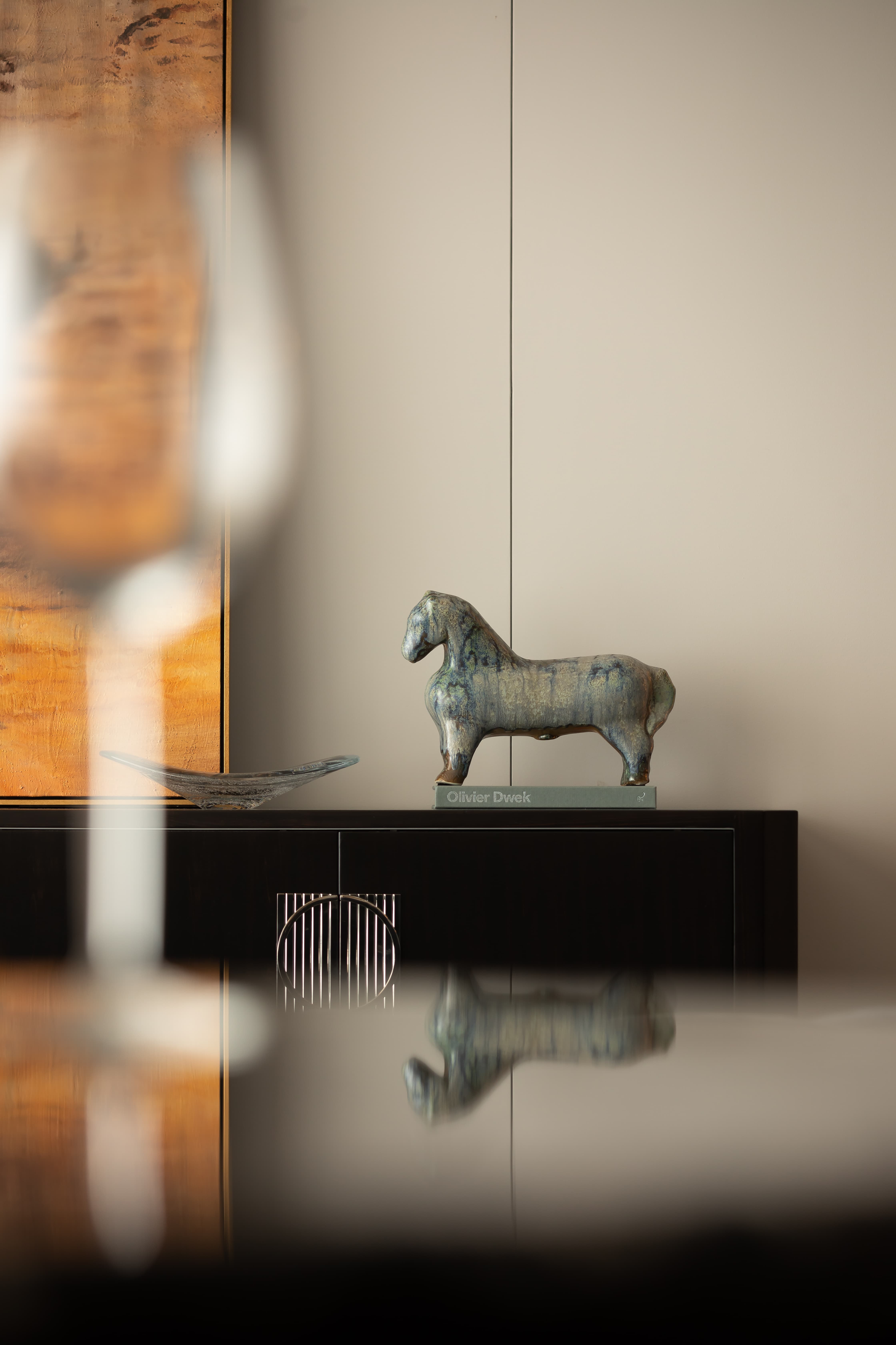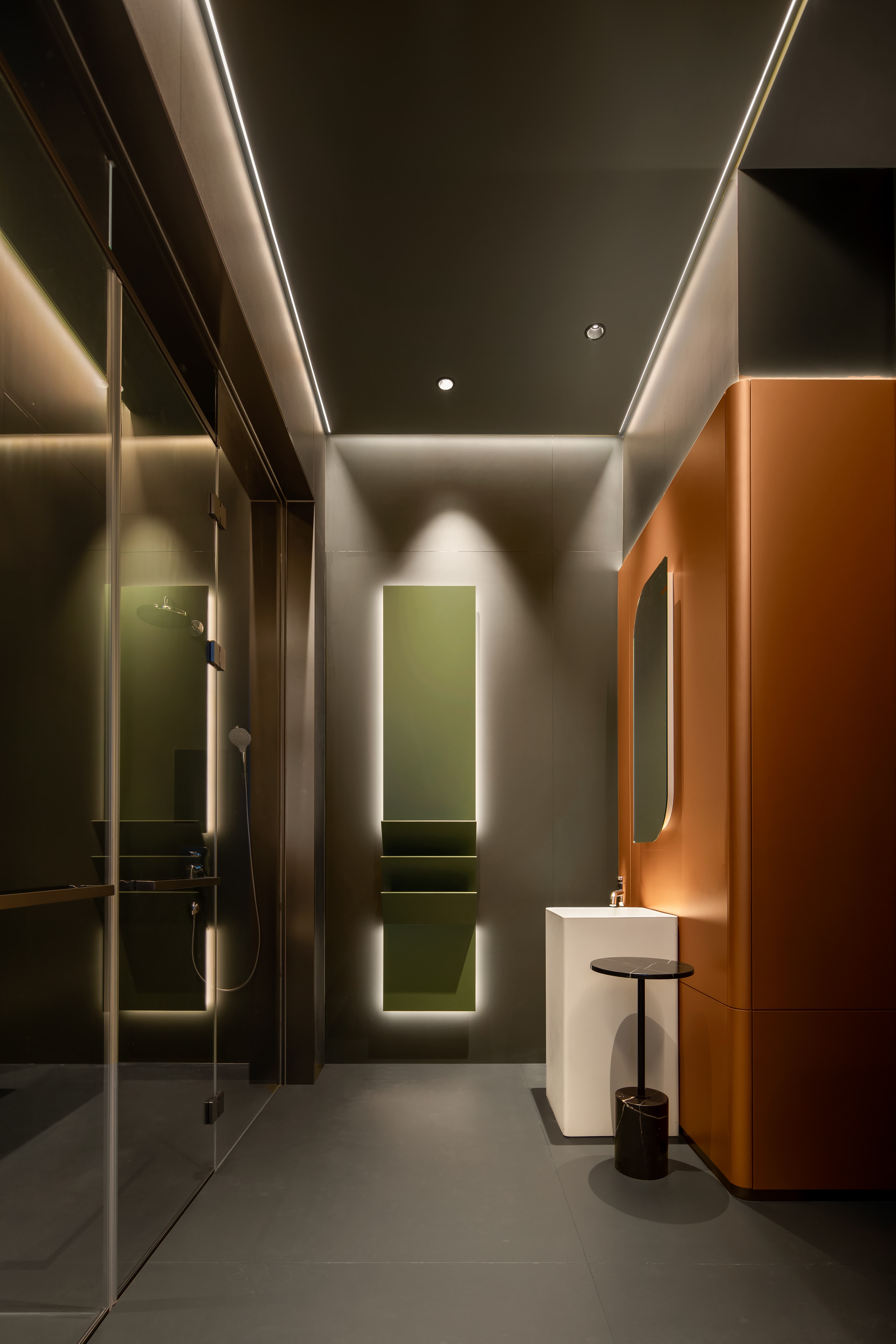 设计选材:颠覆了线条属性的刻板印象,强势的线性包围感,呈现了古典主义的生命力,完全表达了La passione式毫不吝啬的述事感。设计拿起哲学领域中诠释学的理念,便不再拘泥于风格的框制,越发有能力跳脱制约,材质和色彩相互作用,空间厚度和流动性协调合作的结果把视觉上升到全域,腔体力量全线打开--沉厚高贵、温润如玉。