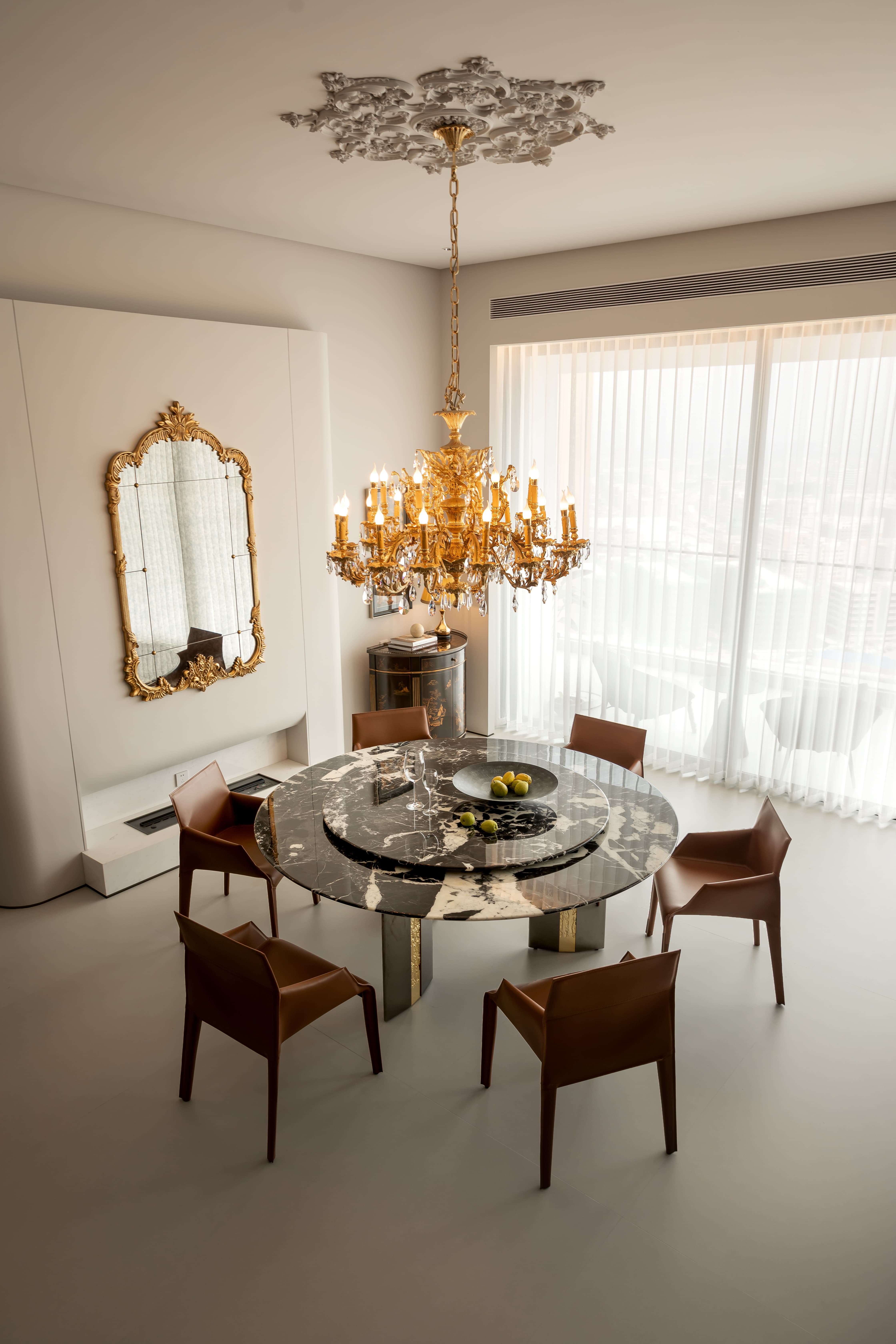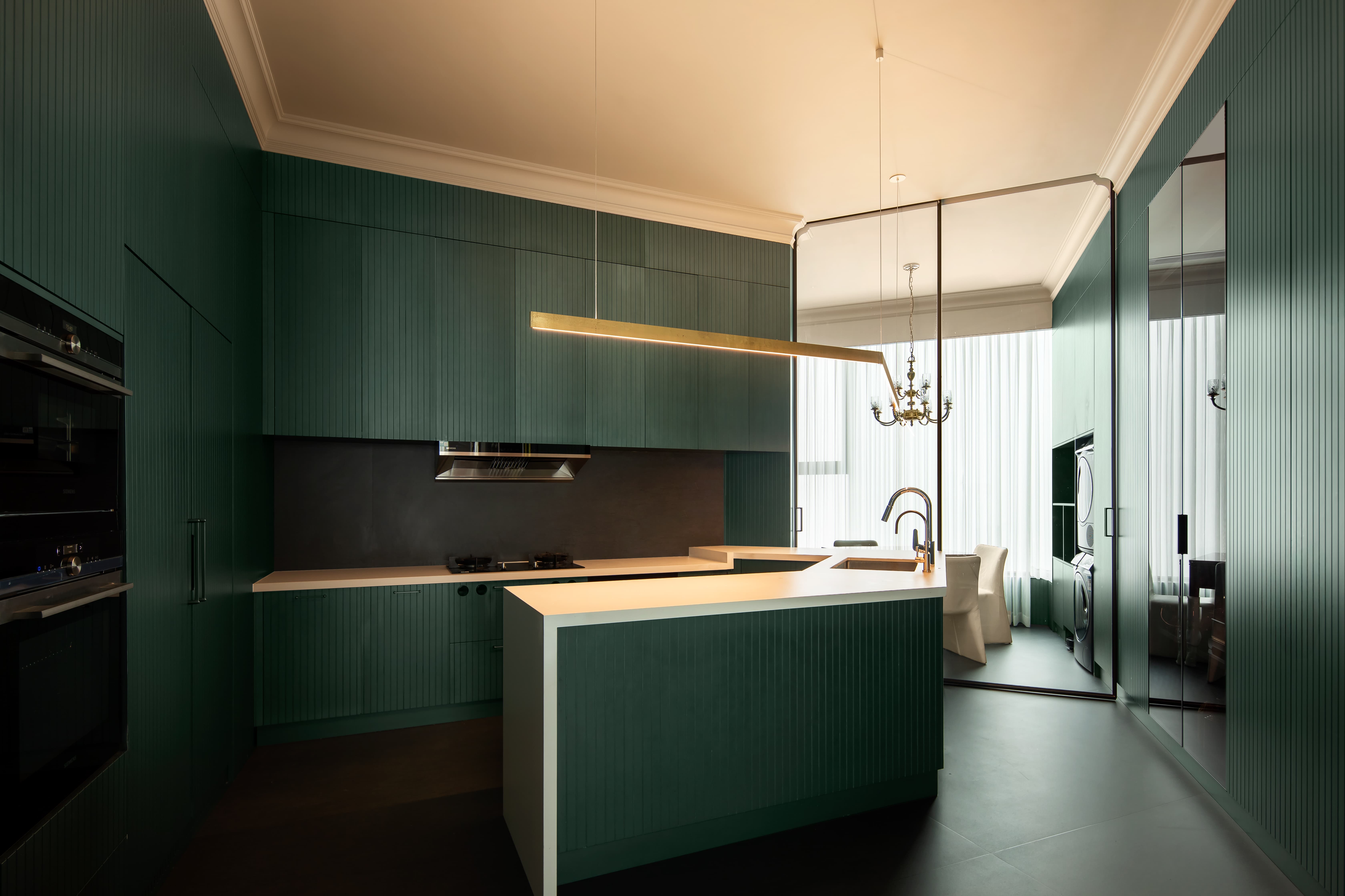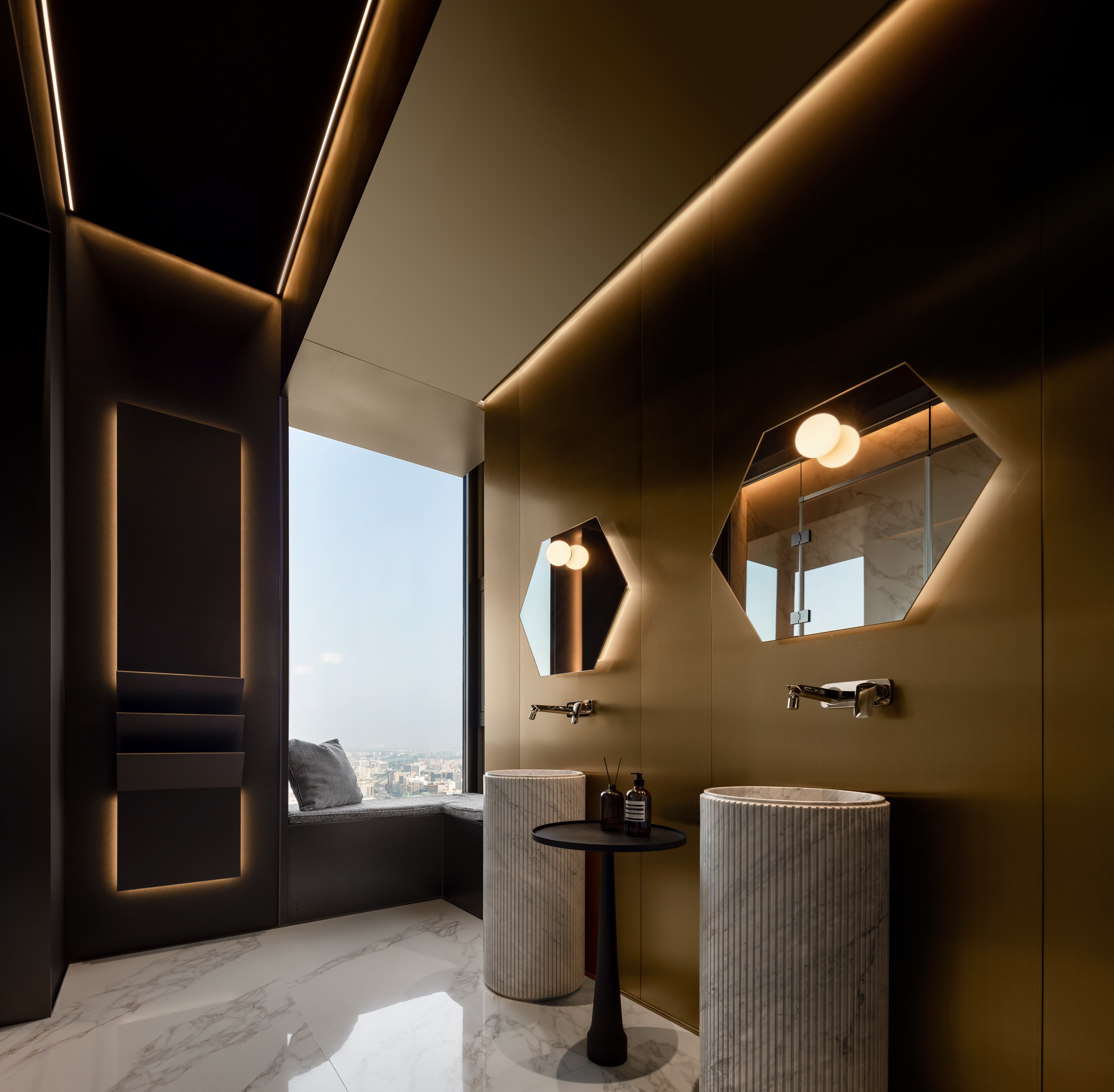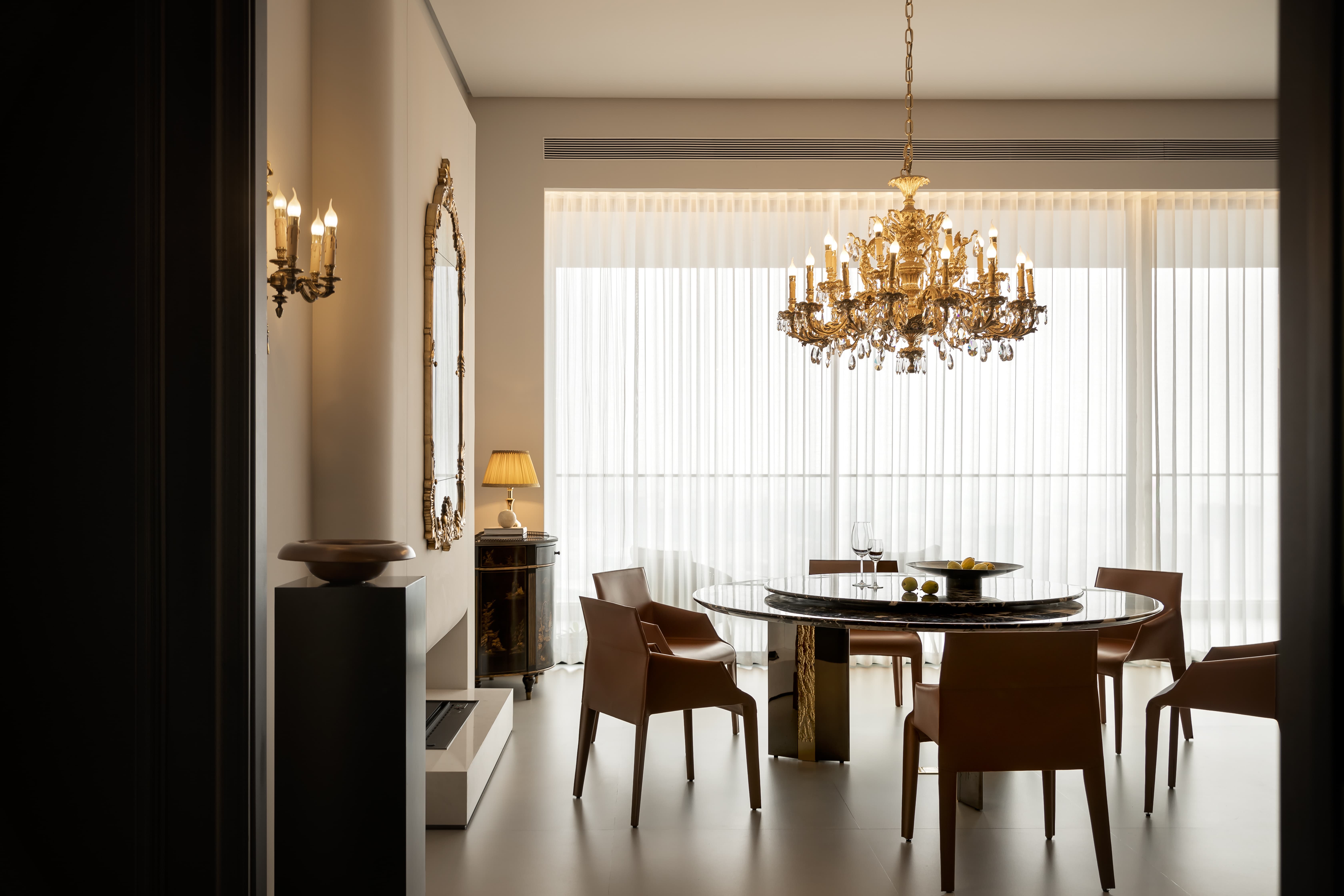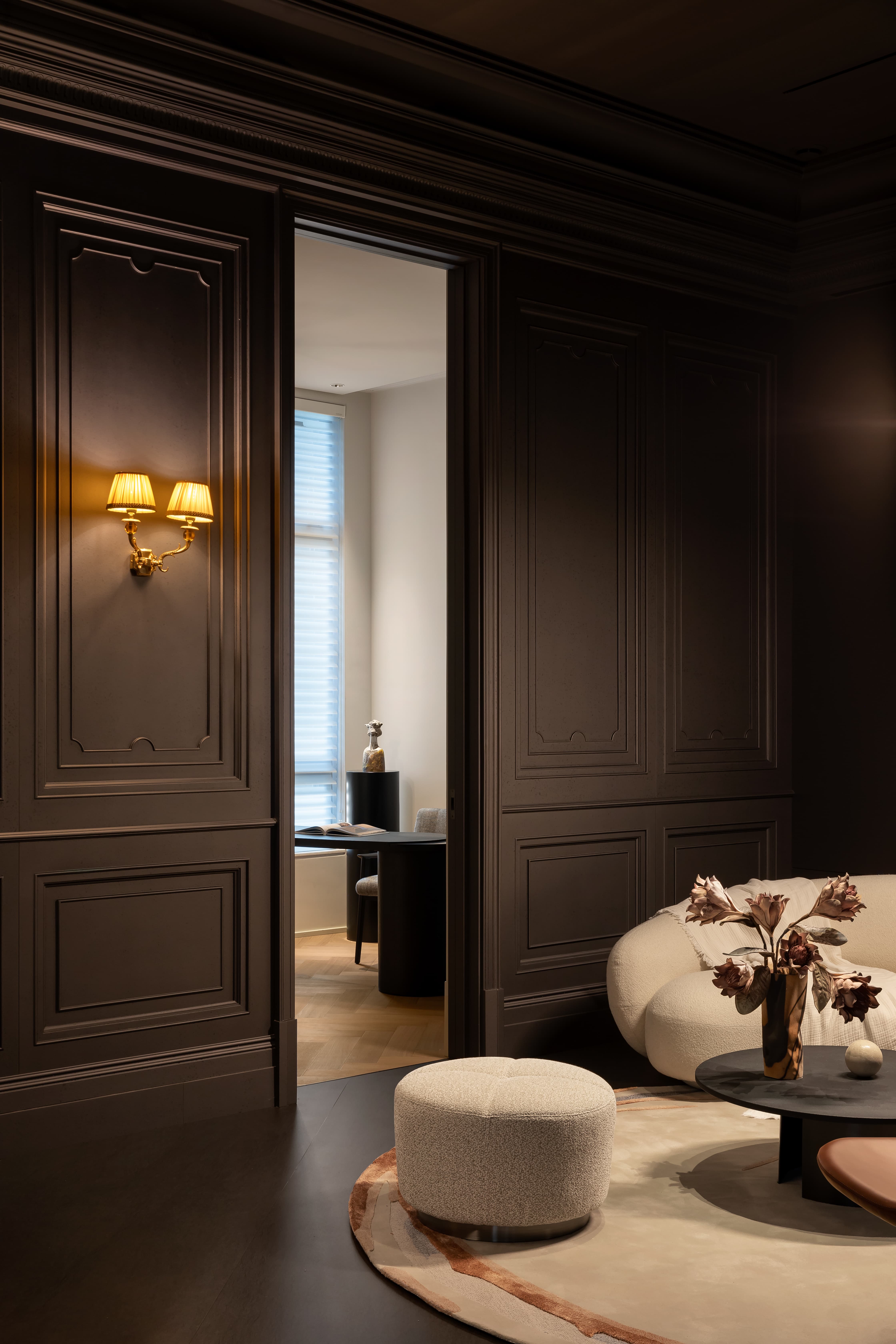 设计选材:颠覆了线条属性的刻板印象,强势的线性包围感,呈现了古典主义的生命力,完全表达了La passione式毫不吝啬的述事感。设计拿起哲学领域中诠释学的理念,便不再拘泥于风格的框制,越发有能力跳脱制约,材质和色彩相互作用,空间厚度和流动性协调合作的结果把视觉上升到全域,腔体力量全线打开--沉厚高贵、温润如玉。