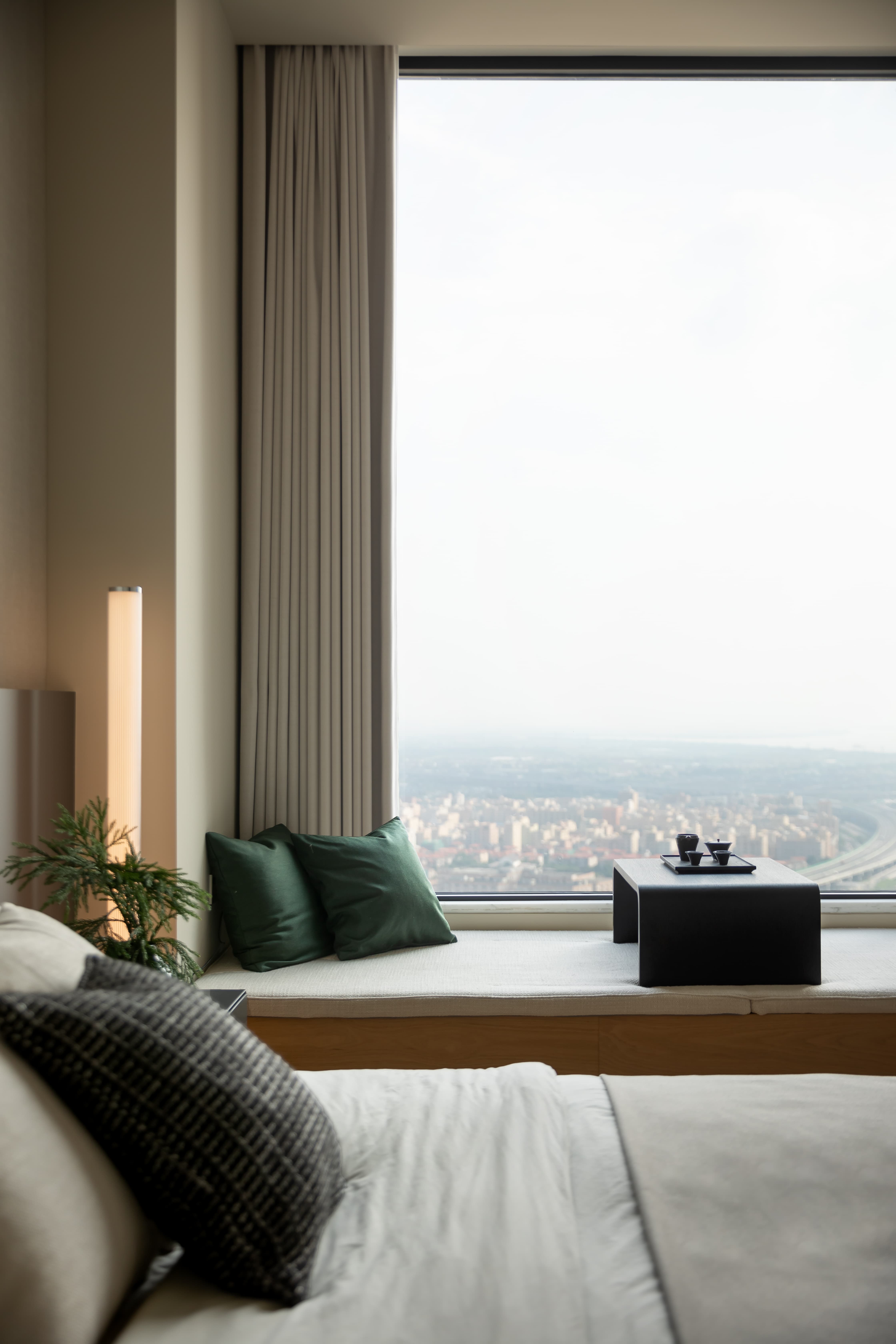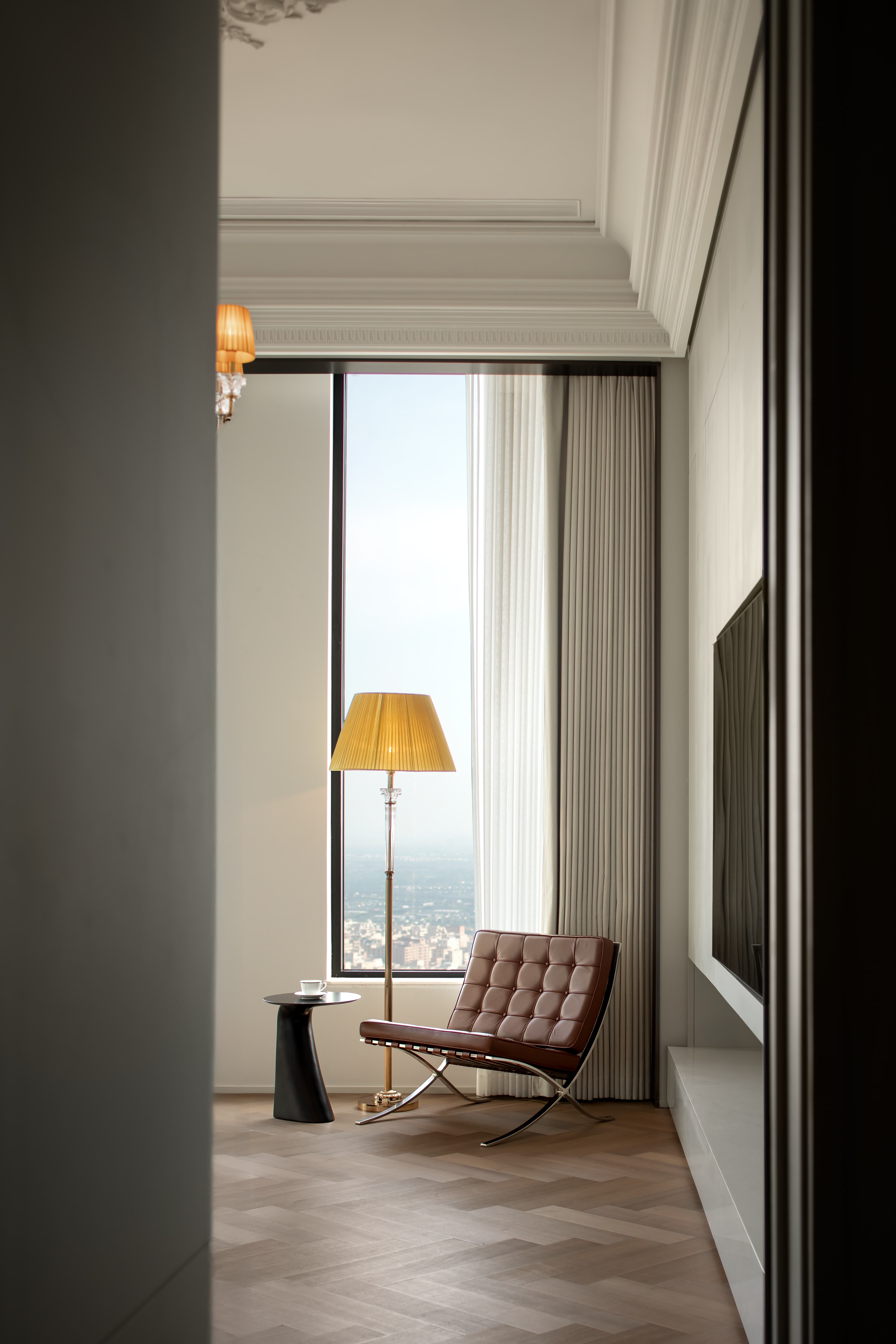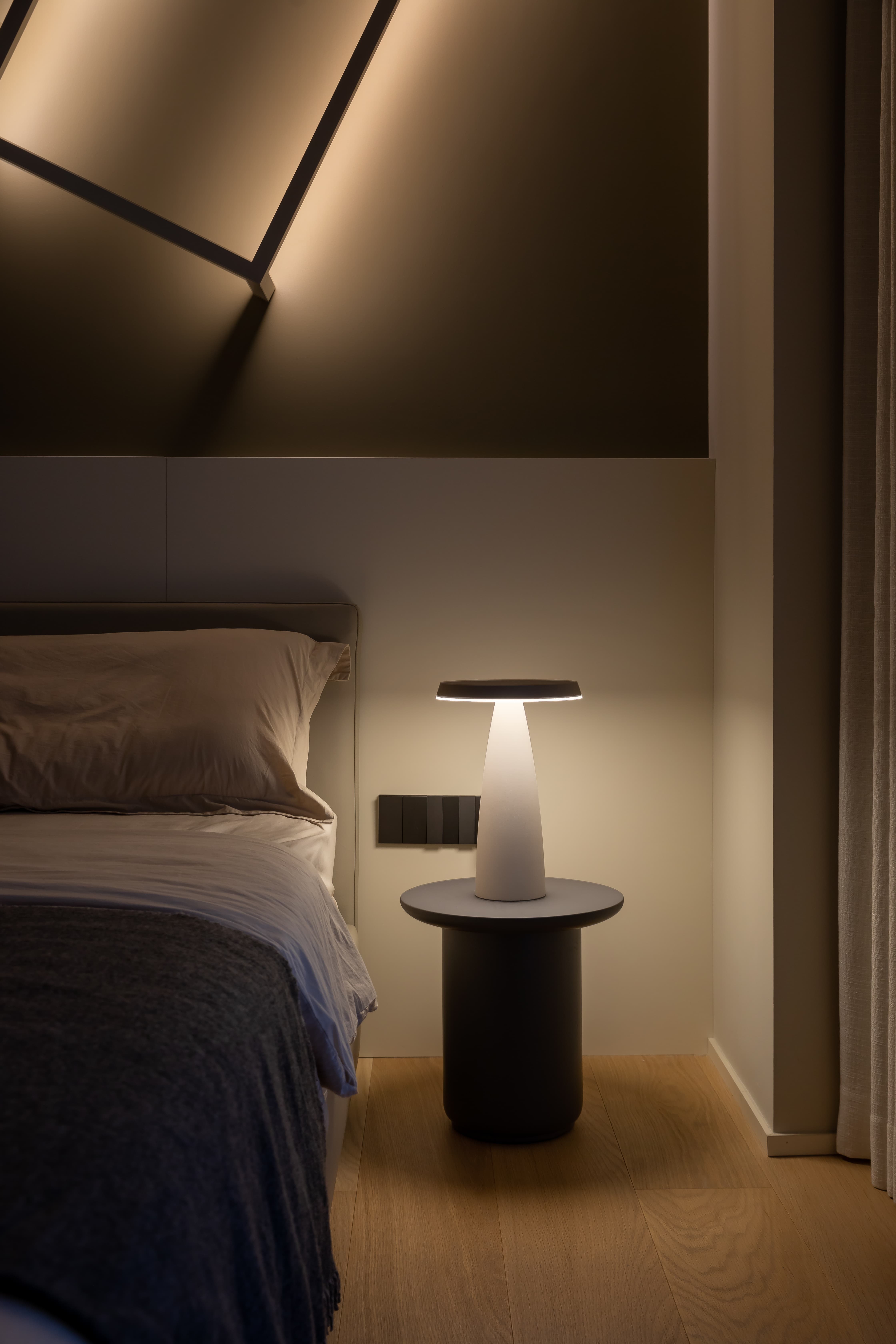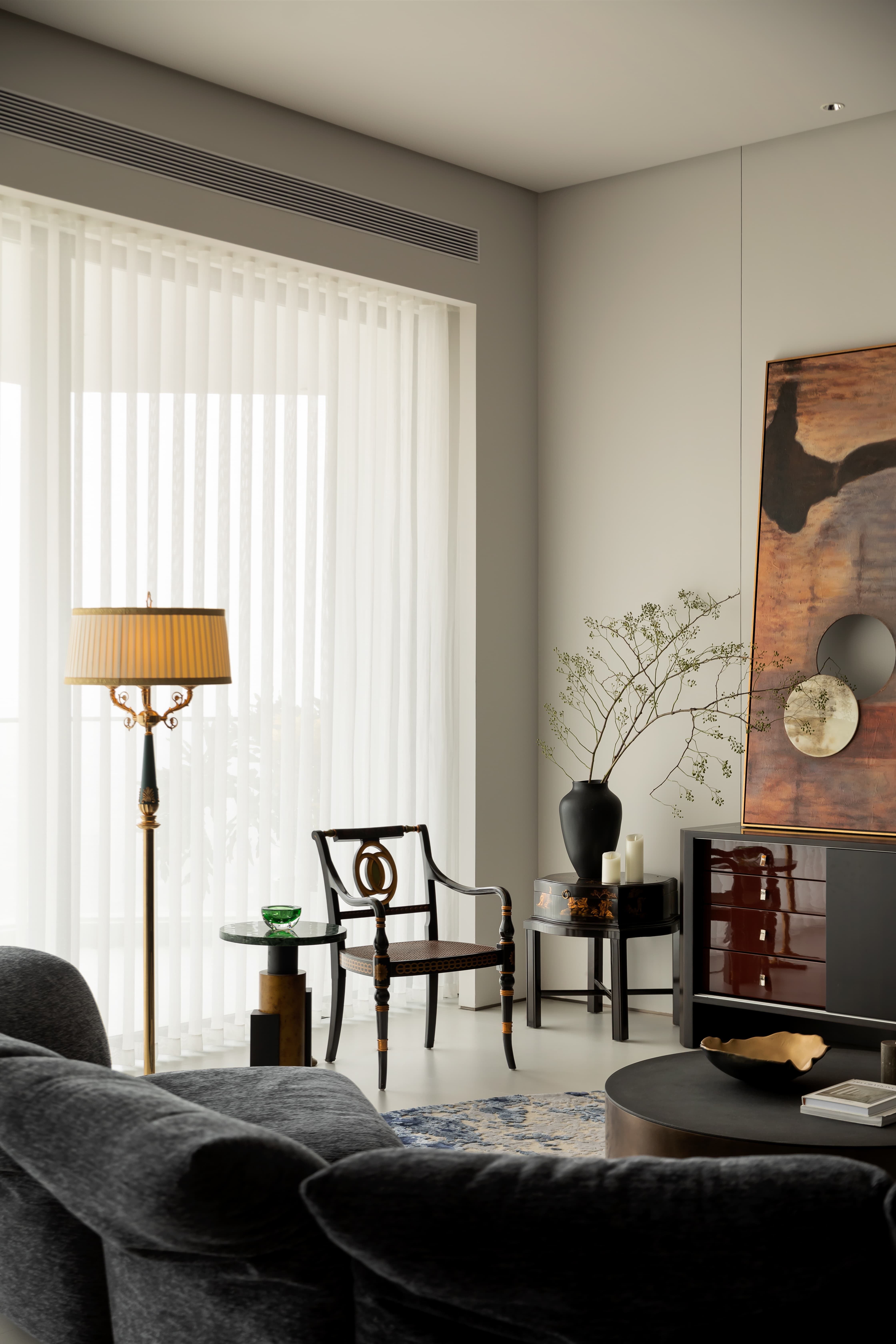 空间意境:线条的运用充满了顽皮的情趣,可控多变又活泼。但需要足够想象力与控场力的并驱,才能使线条可控之余,不陷入杂乱或单调的两级。设计呈现了一个容易捕捉到线条存在感的空间。纹理与层次感非常鲜明,营造出静谧而动态的平衡。手法的运用,在呈现背后,是一套复杂的解读和操控。甚至元素的反复堆叠,在热情中透露出冷静、克制,不失温情的效果。这种效果投射在空间里,将内敛、稳定演经得鲜明又极具哲学意味--抵消矛盾边界,融合建立在此完成。空间的退让与叠套,大量运用了电影镜头中长镜式衔接,线条转换成雕塑量感贯穿其中,渗入细节,将线条的运镜作用拉满。