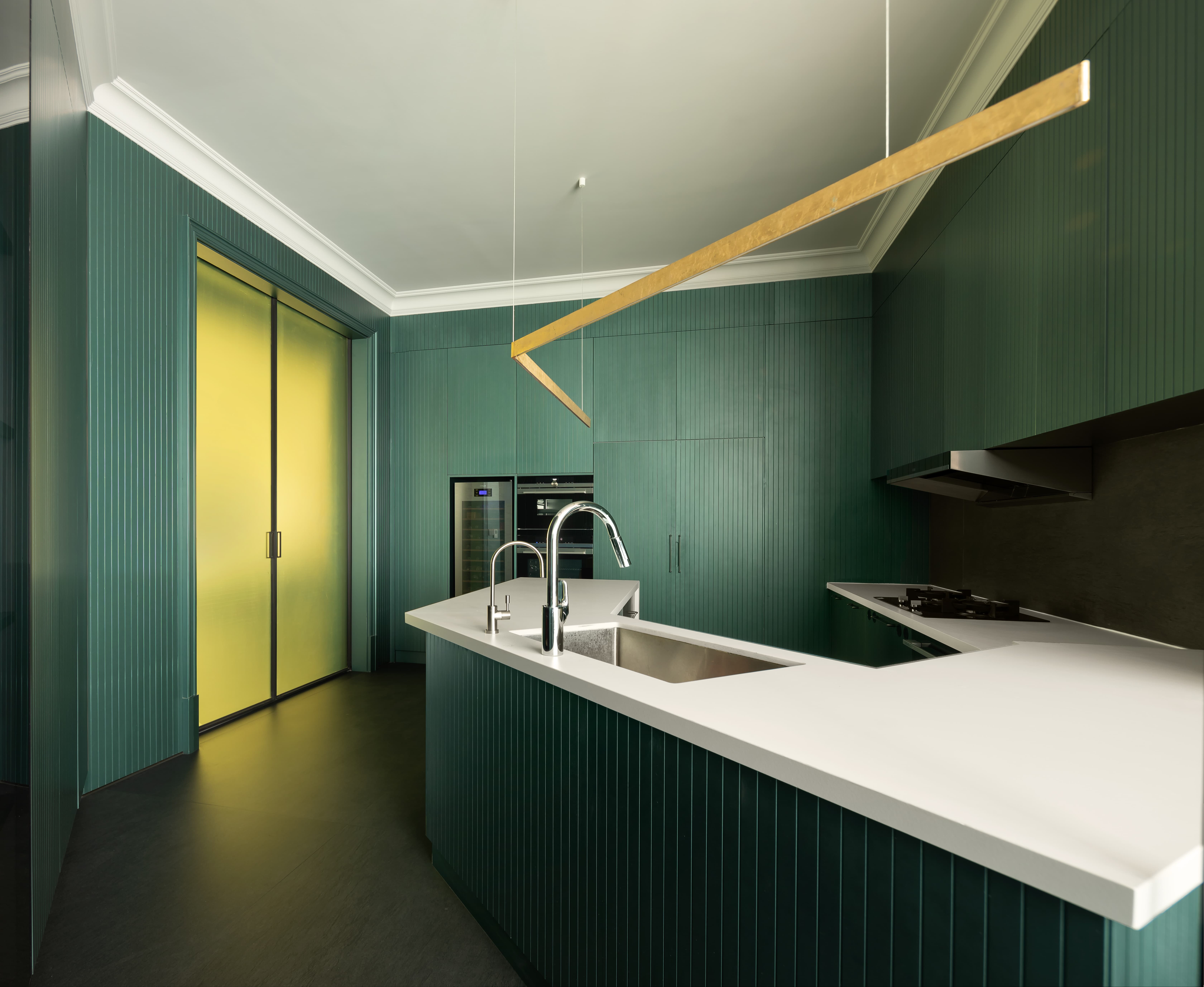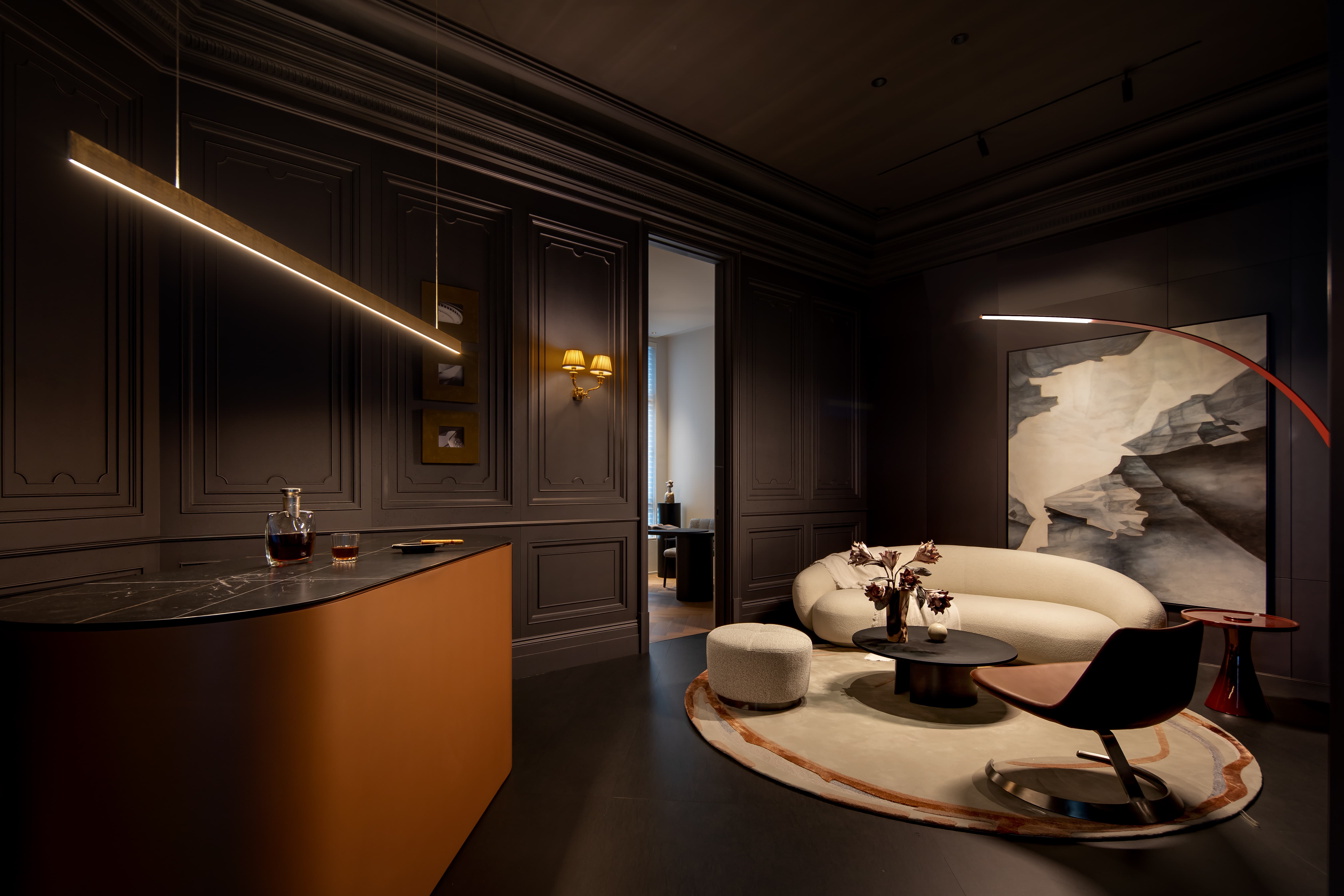 您将看到一个典型的设计手法显现:线条进入、风格撤后,最后完成风格闭环的图像式空间成果。 -