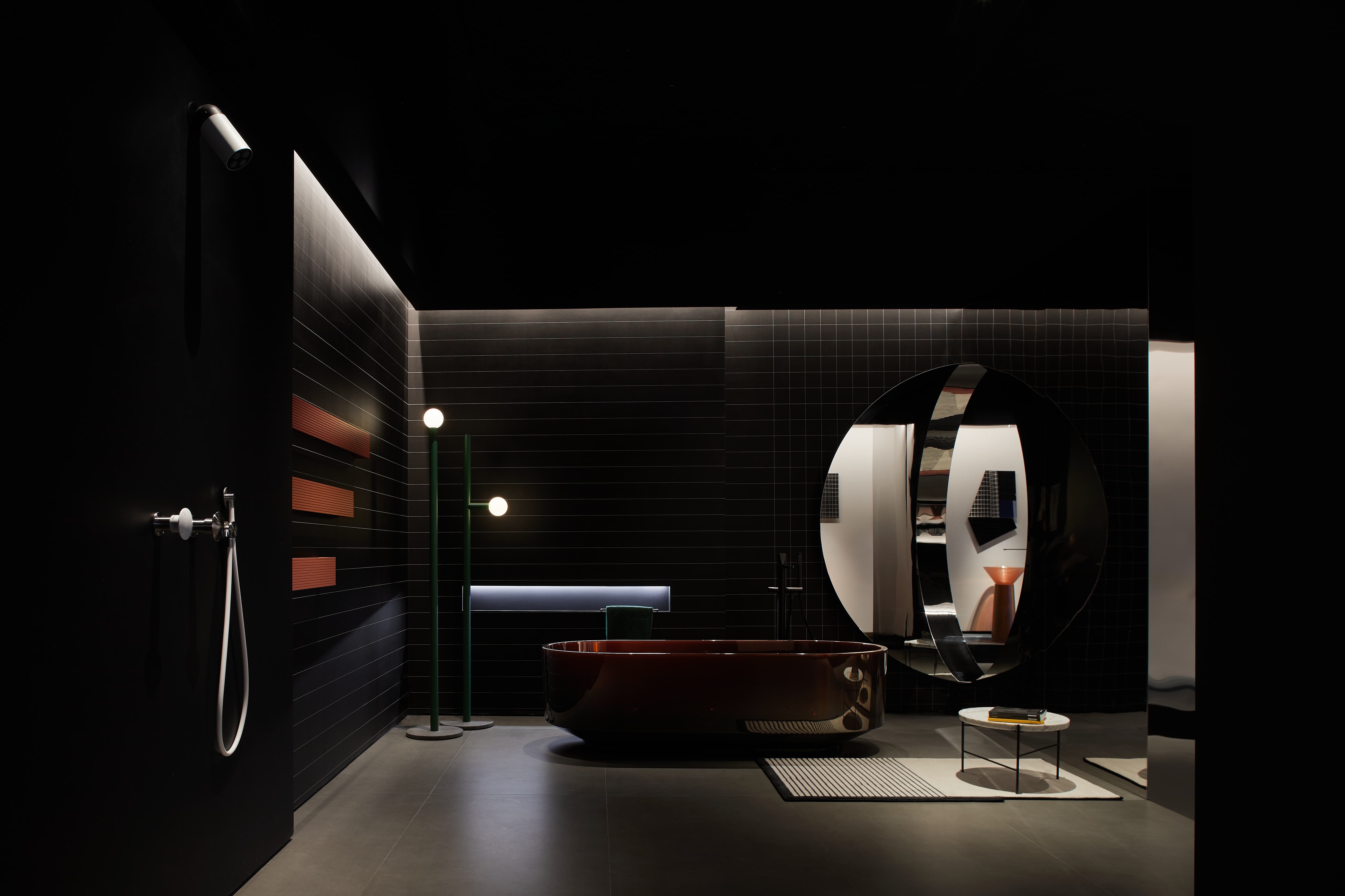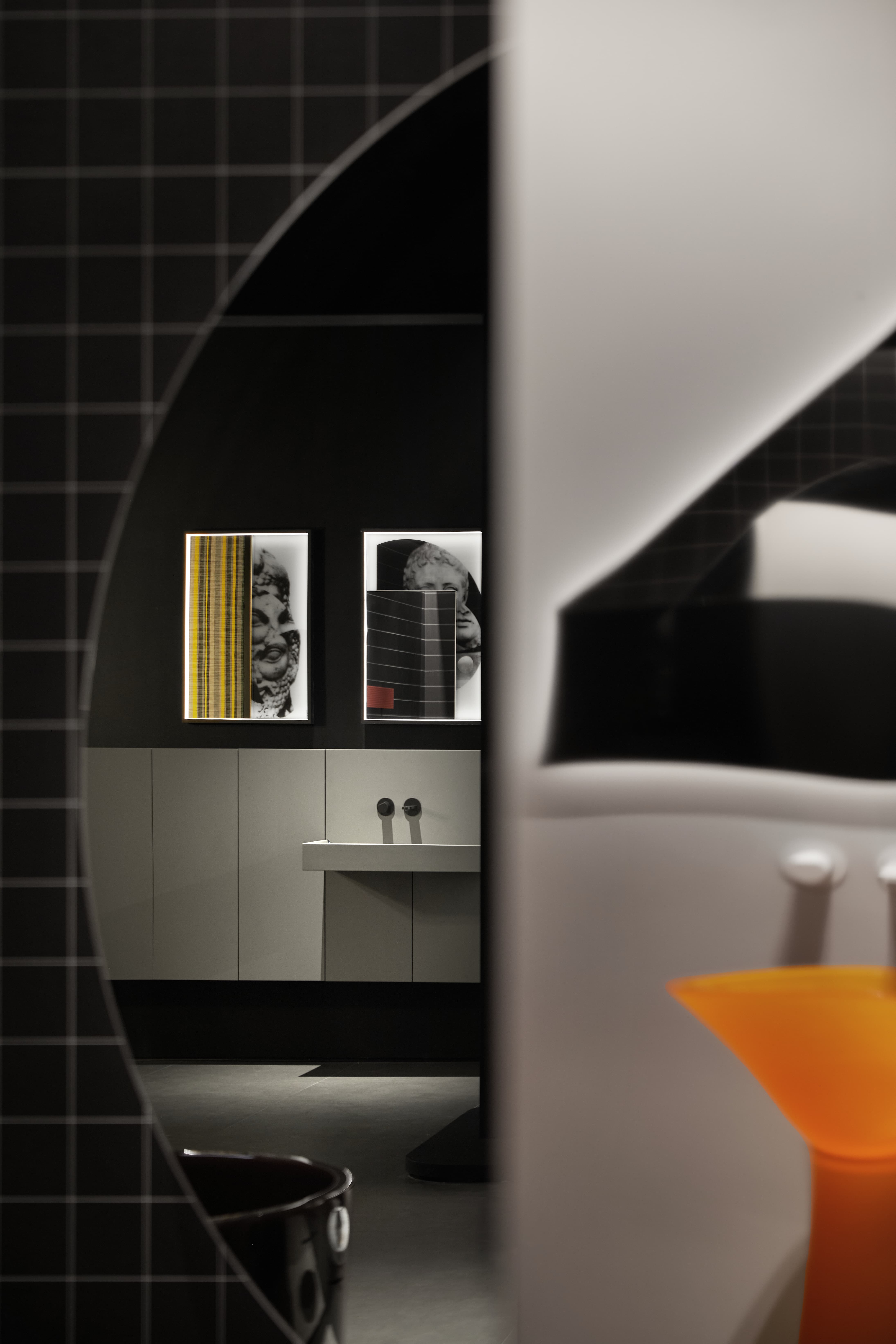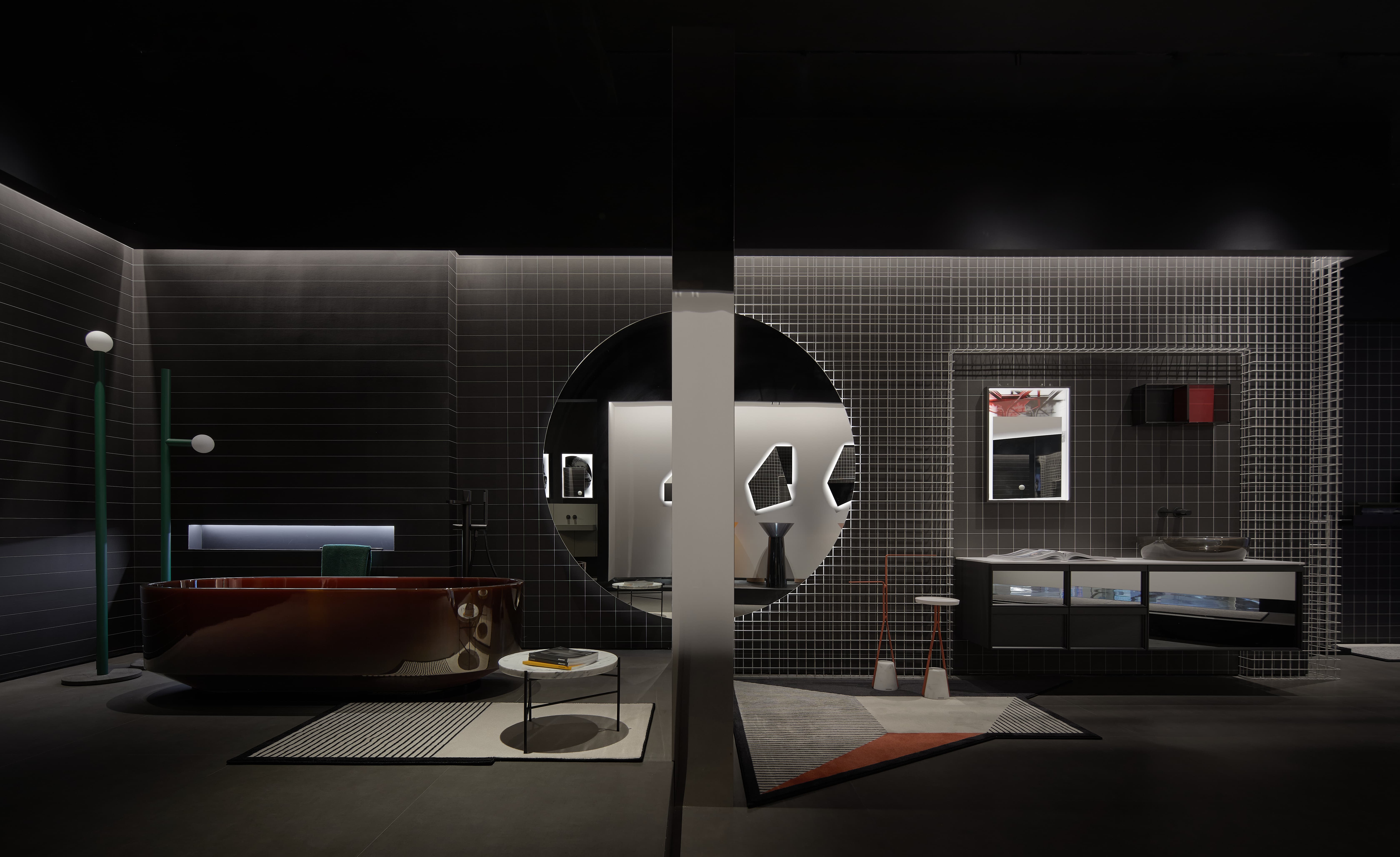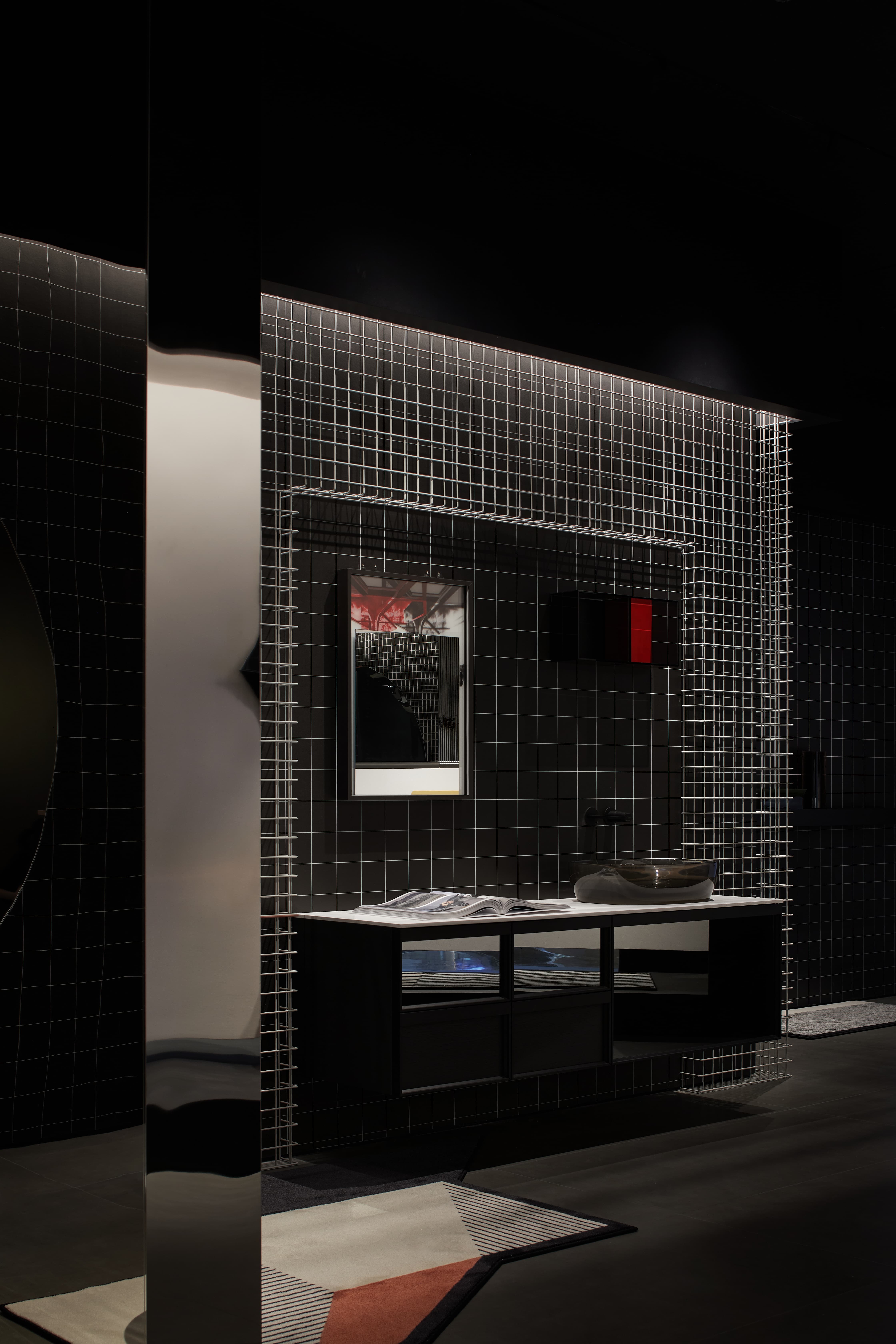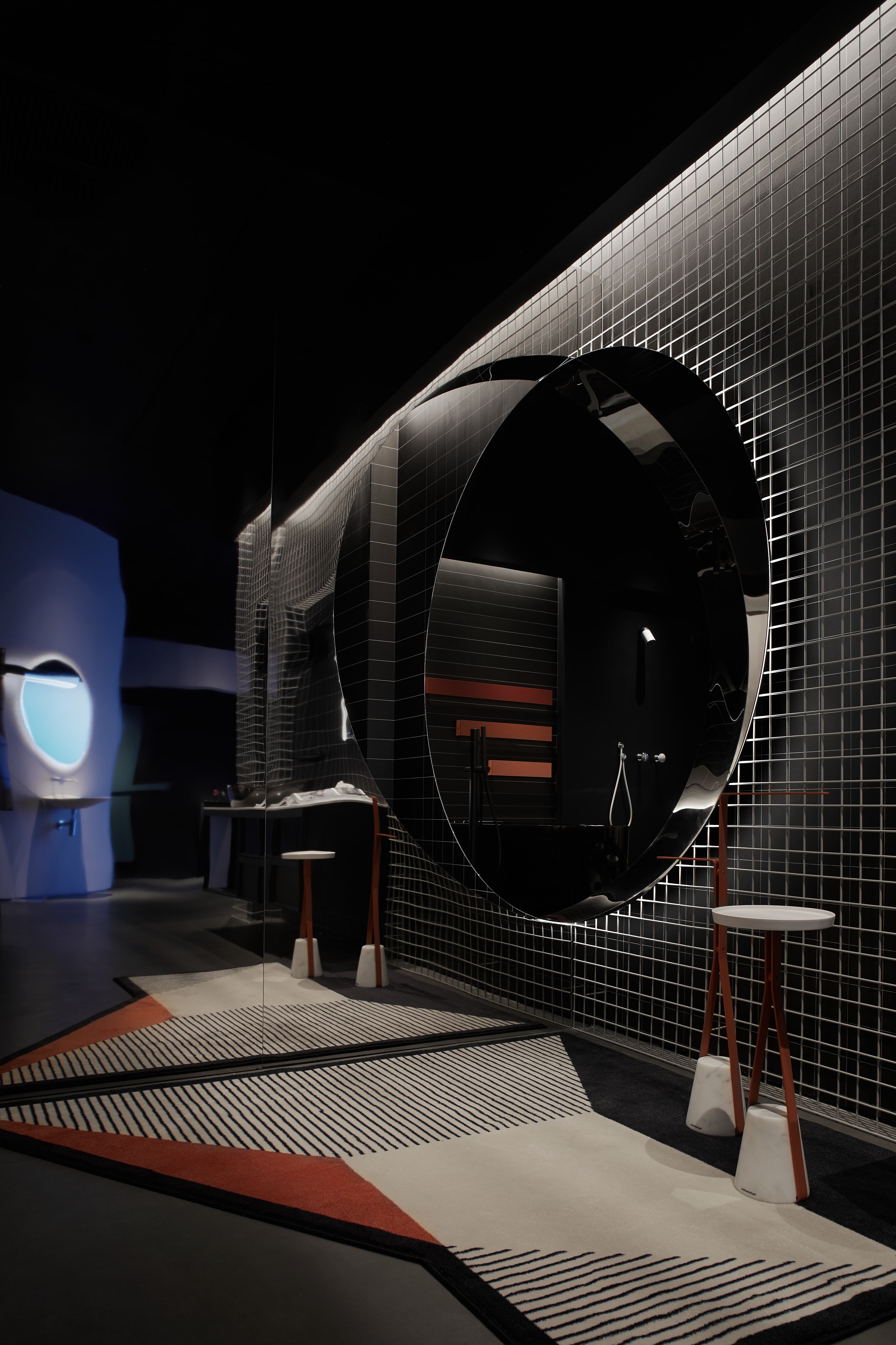 空间意境:构成主义的原旨可导向空间强烈的权重感。在展厅中,产品的摆态呈现,即是独立的元素,亦不脱离与空间交相辉映暗示着物质世界和艺术领域热烈的幻想,设计质感的犀利,跃然而出。色彩模块的运用,是构成主义浓墨重彩的一笔,颜色或许比设计更重要,是一种解放”,是Antoniolupi的又一名言。