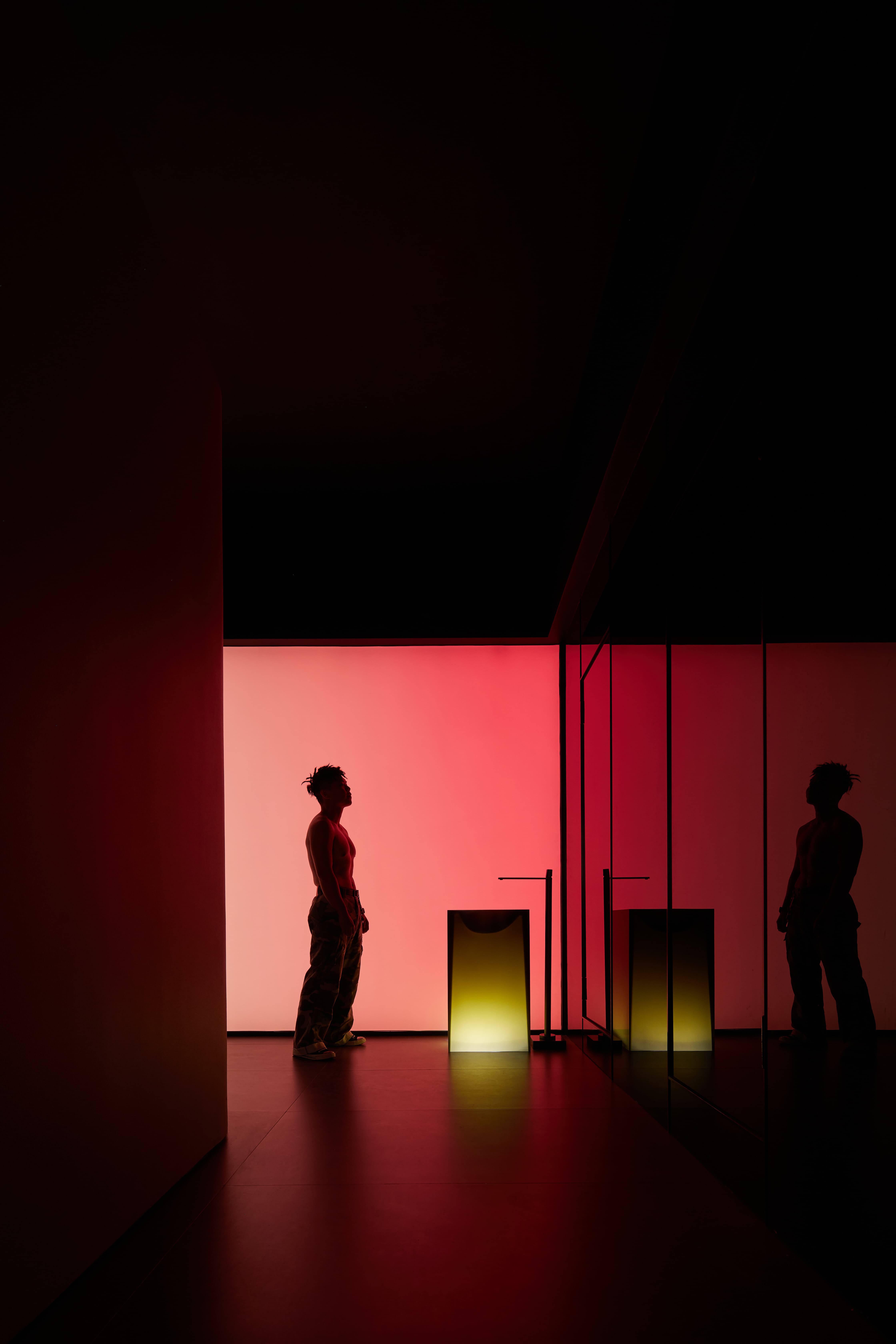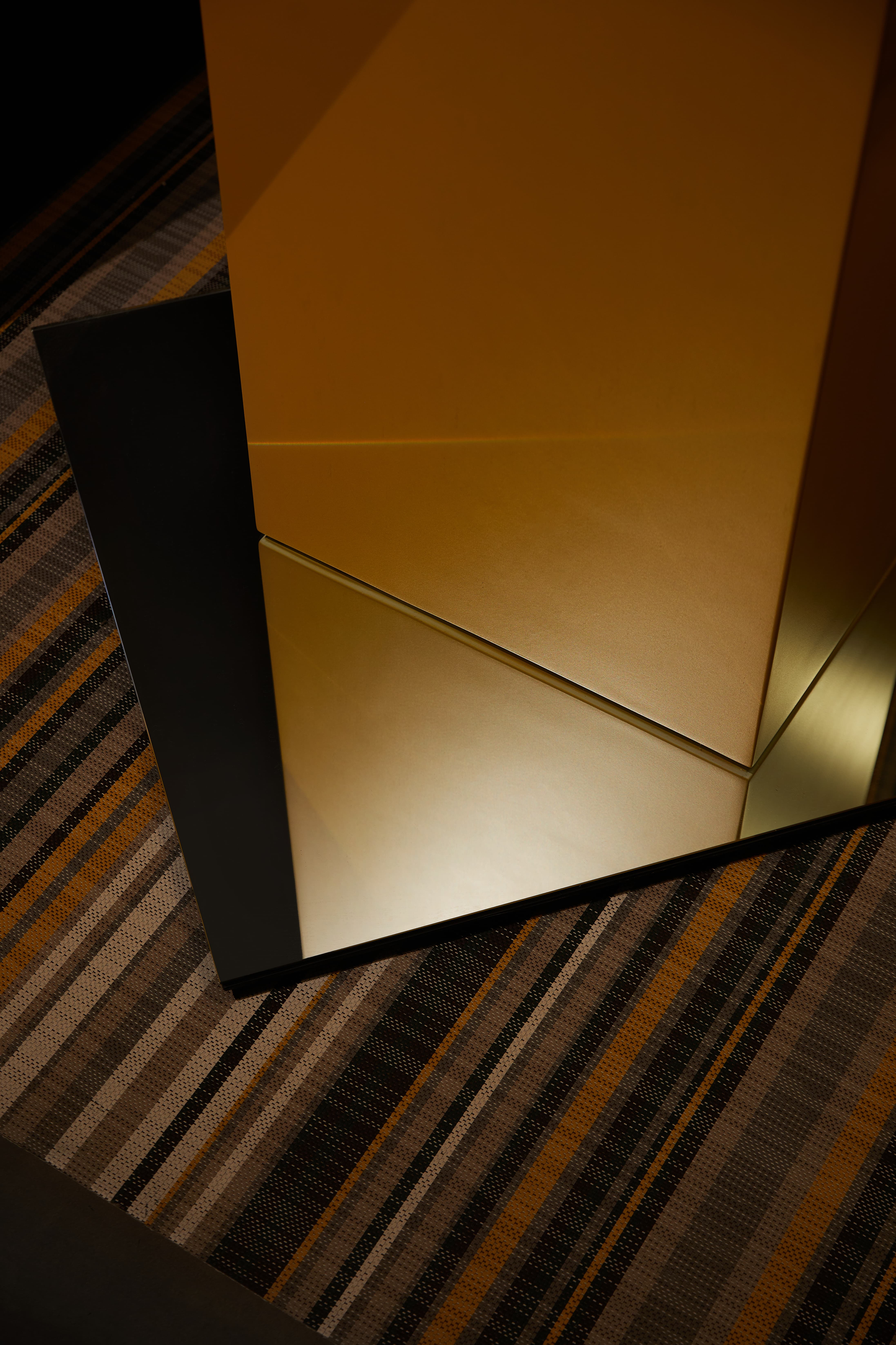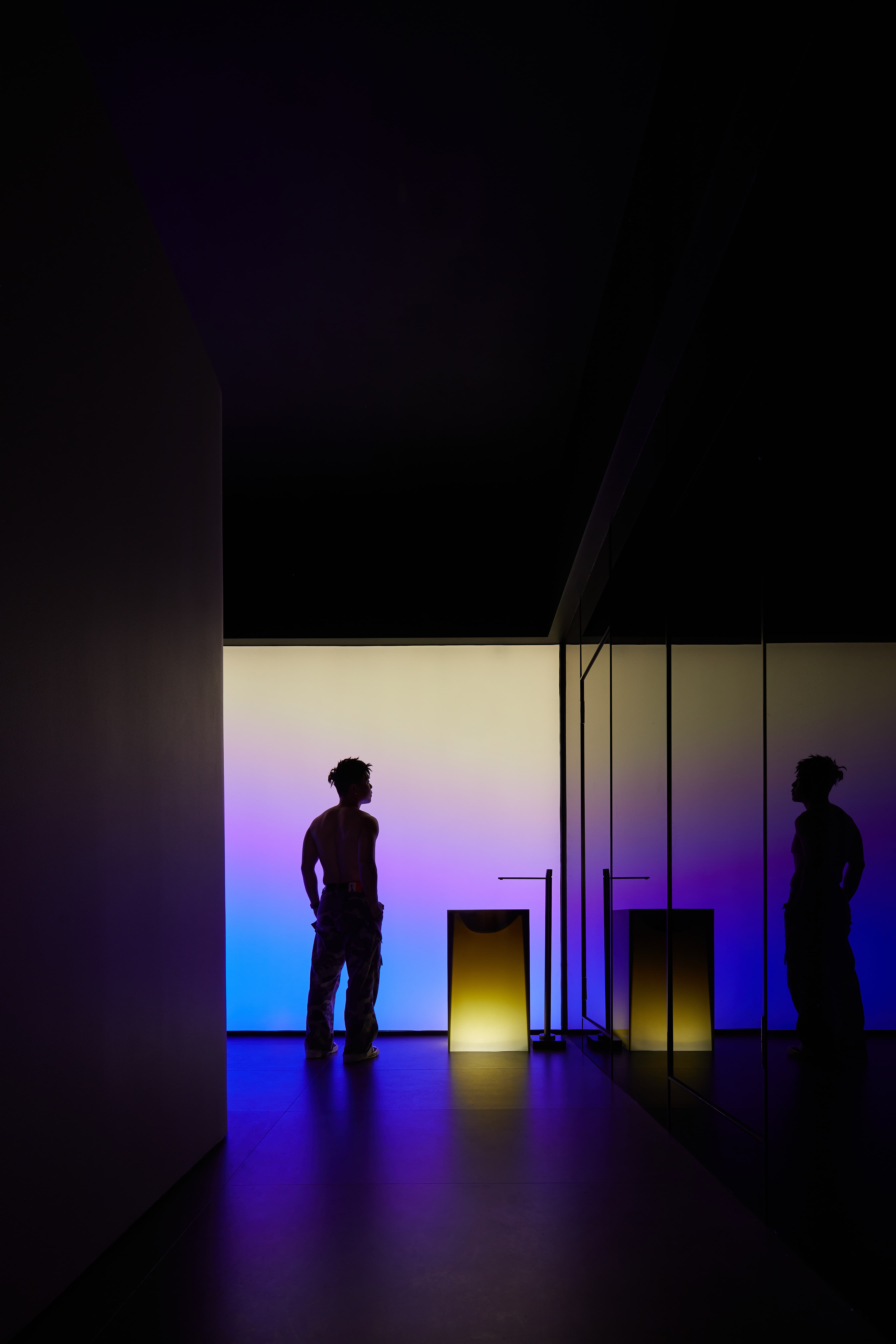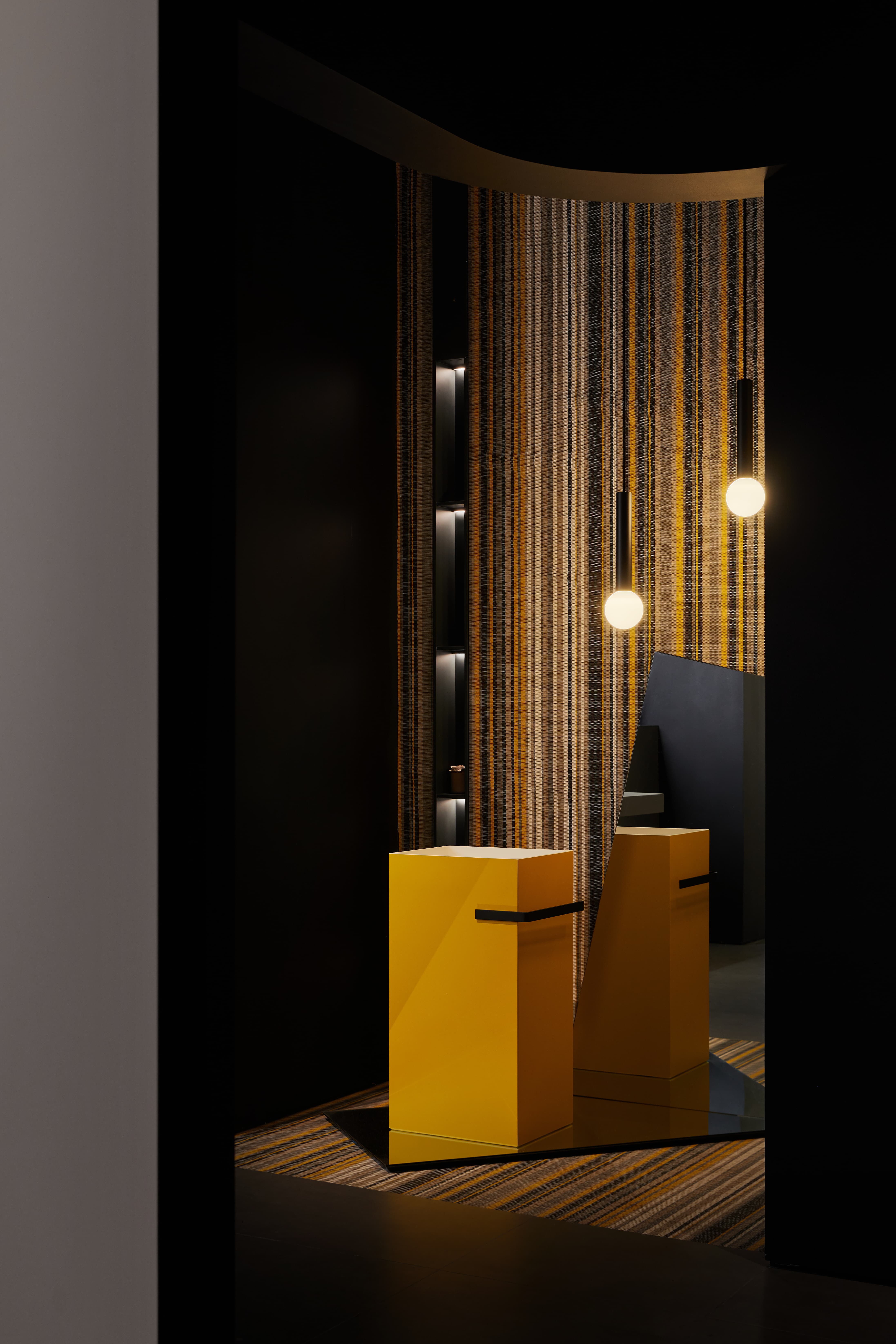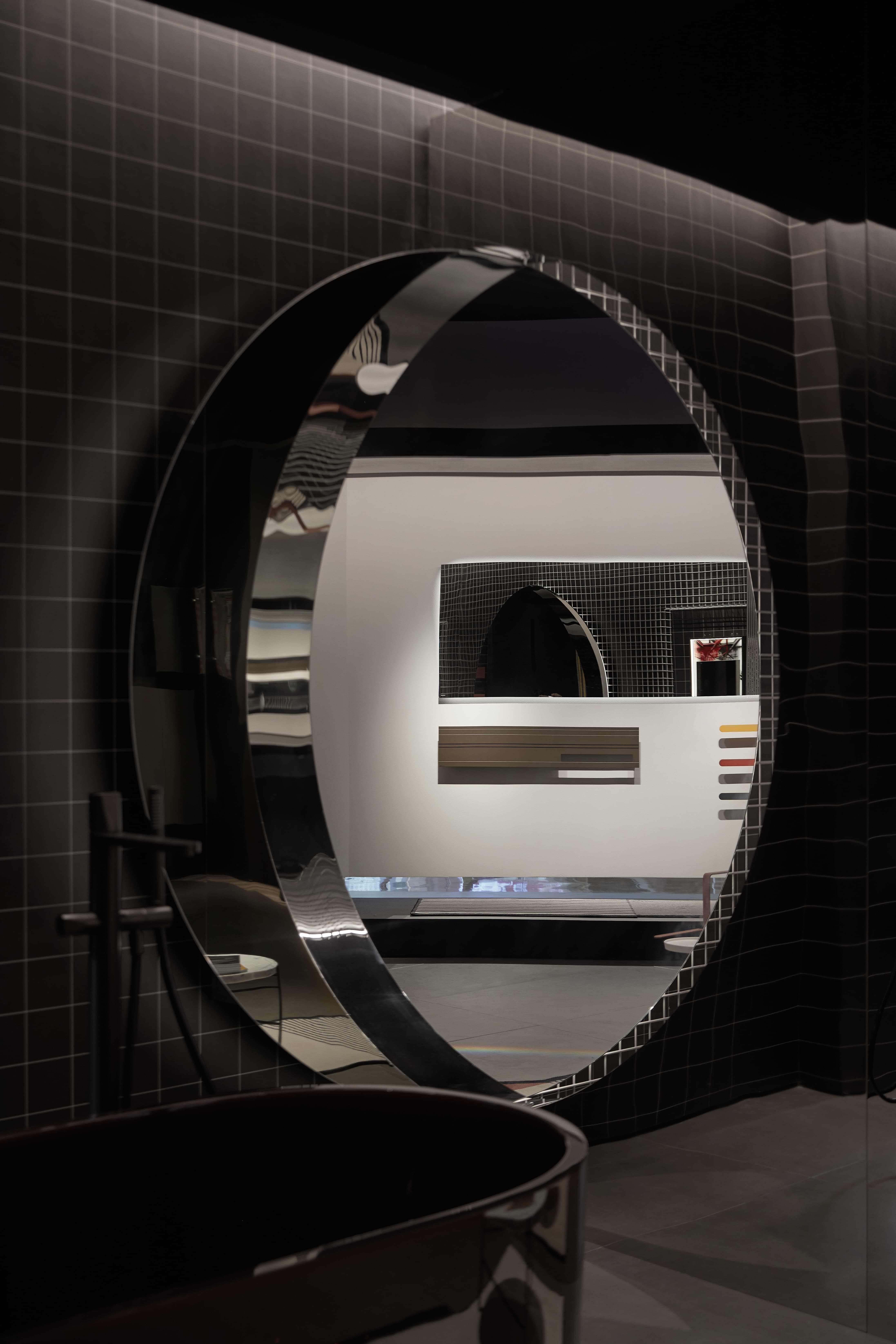 从柏拉图的“理型”理论获得启发,设计手法企图使An-toniolupi的色彩表达抽离出来,在空间内留下痕迹,将受众的视觉触点在感官经验深处引爆。这种引爆悄无声息,又震耳发聩。Antoniolupi极致丰富的色感,从产品本身独立出来,与空间重新构建出清晰的品牌意味,将品牌希望表达的精神在空间艺术中承载更多情境。整体展厅设计能过精密的色块运用,强势的构成线条,多种几何复杂叠套,形成具有强烈品牌印记的空间语言,成功探索空间设计为品牌呈现相互交汇的全新设计语境。 -