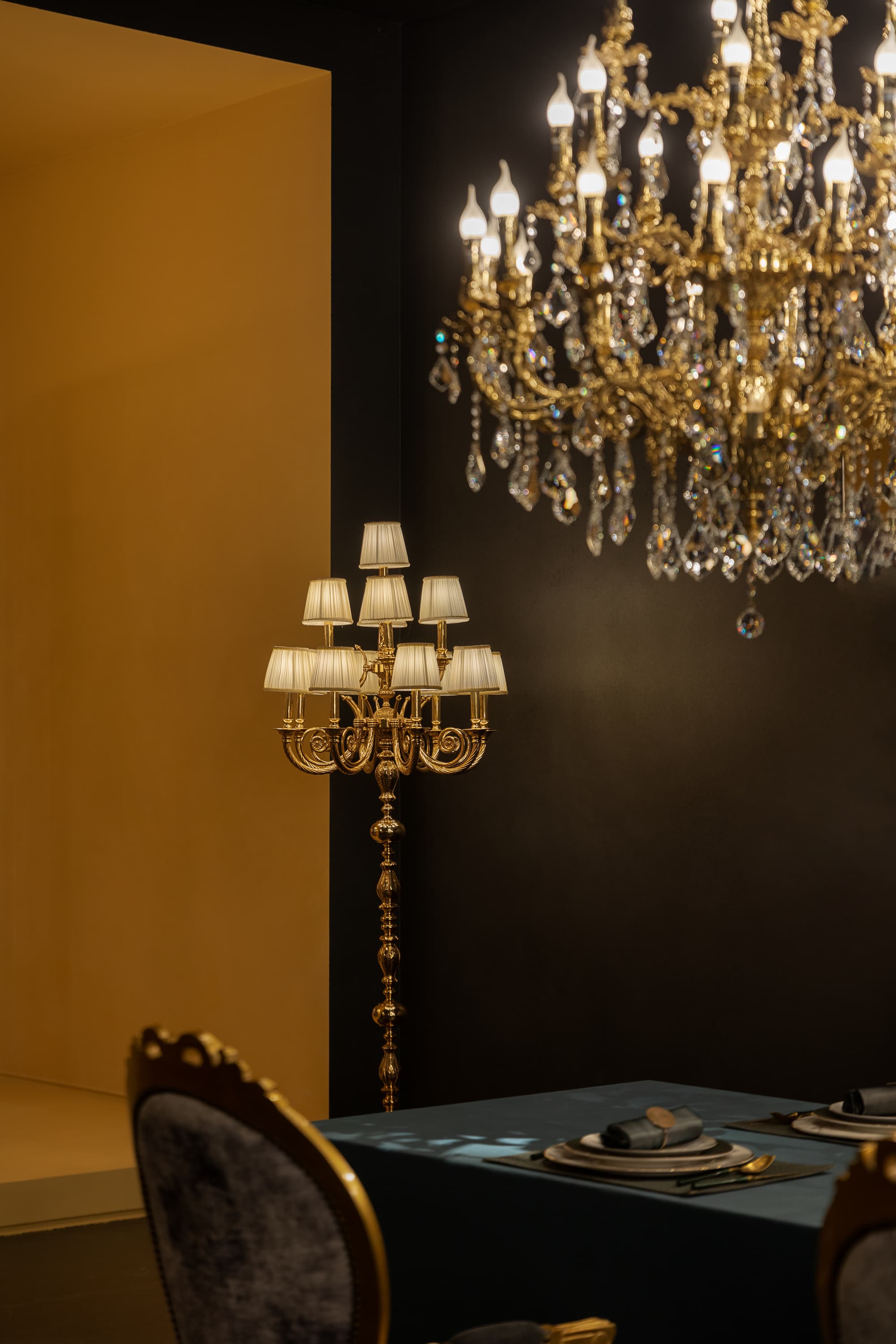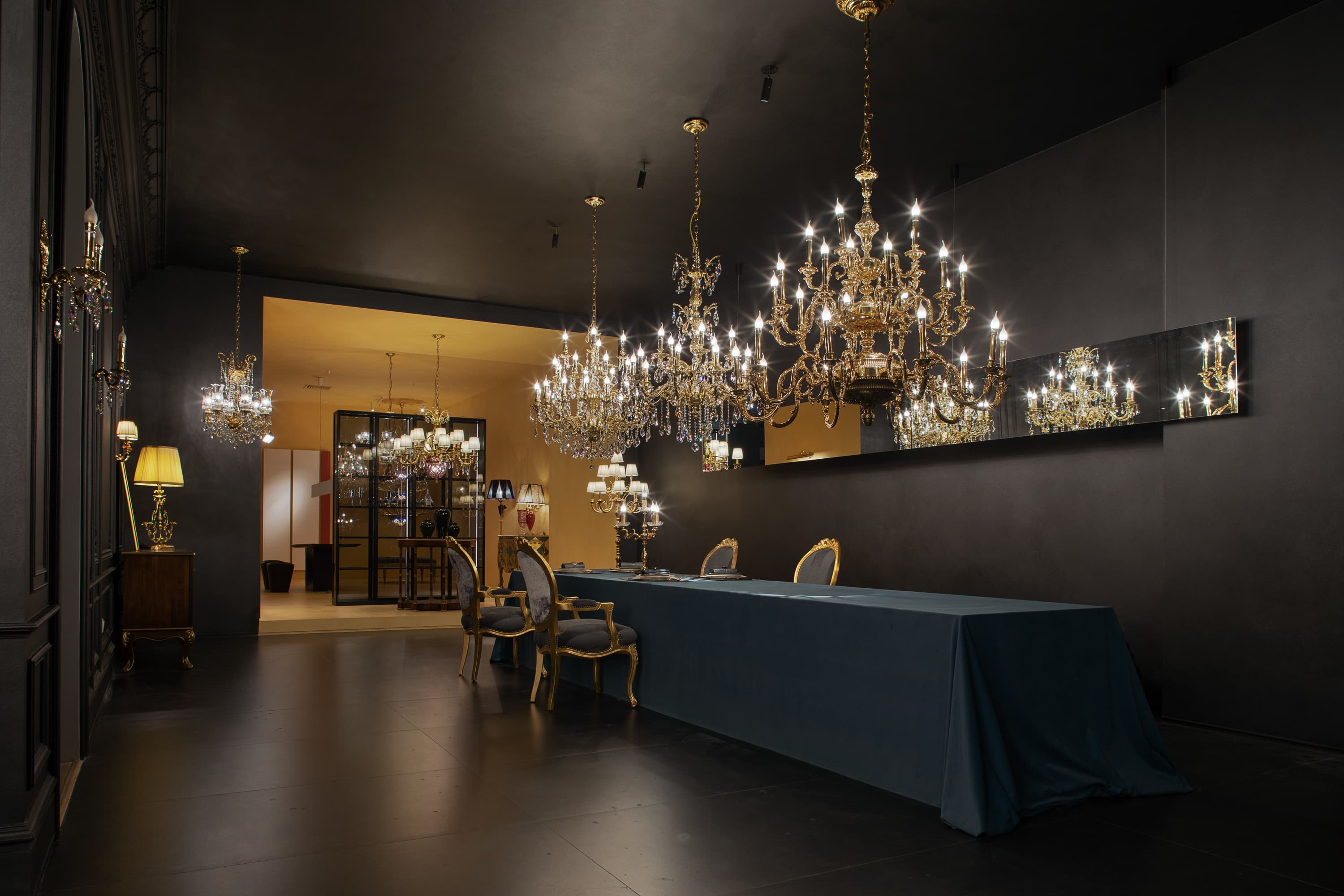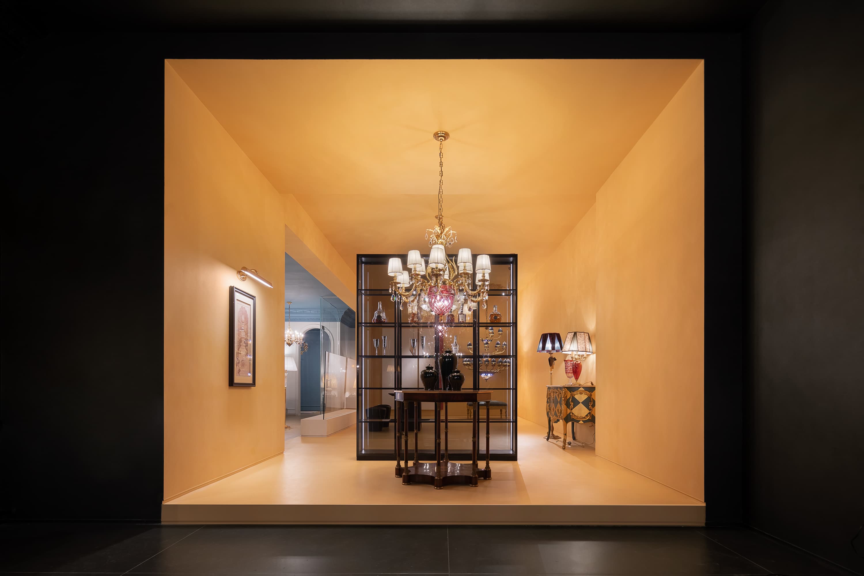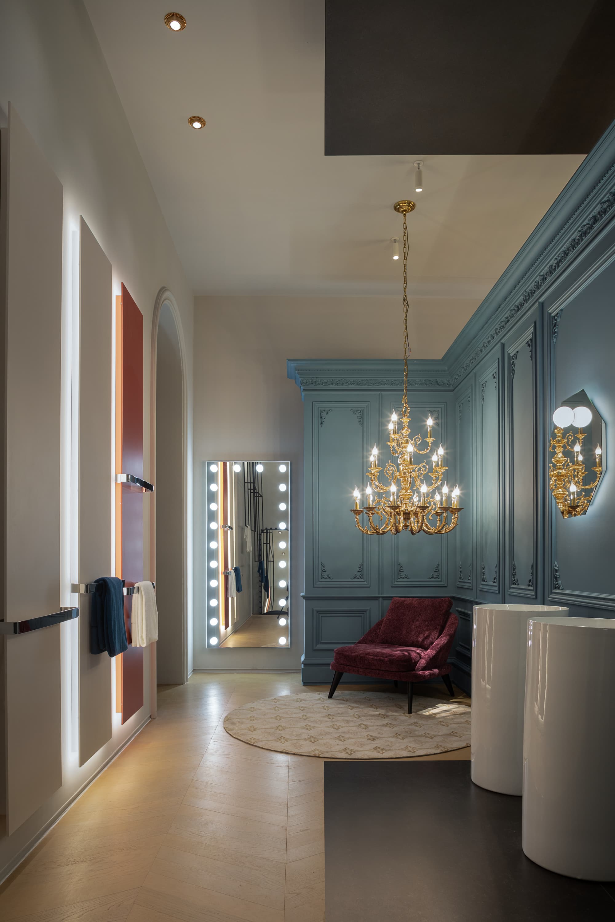 设计选材:特种蓝灰是我们寻找了很久的颜色。代表着展厅以及品牌的某种意志--阳光映衬下的天空、海洋的远眺感,也代表着“设计的星丛”从传统的风格中找到积极向上的想法。设计语言所讲述的逻辑是:传统的灯饰与年轻化时代的存在和共生是完全可行的。