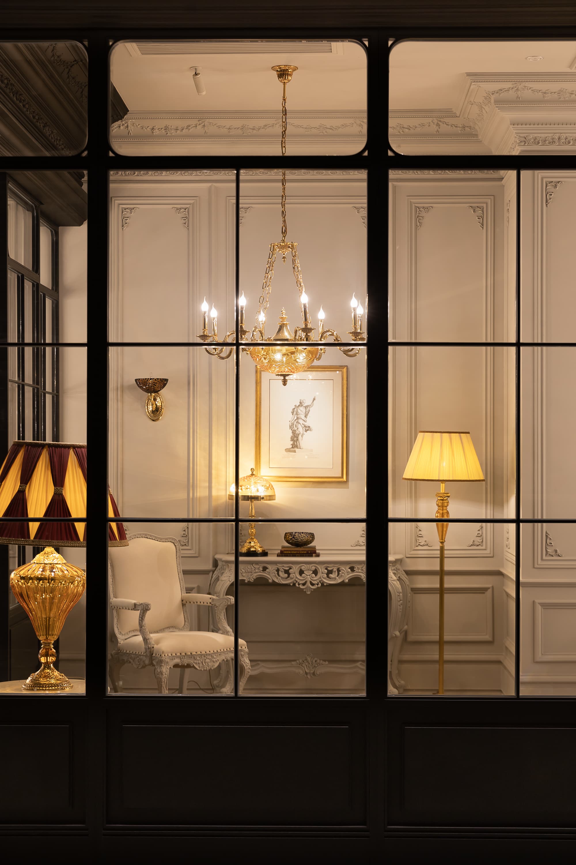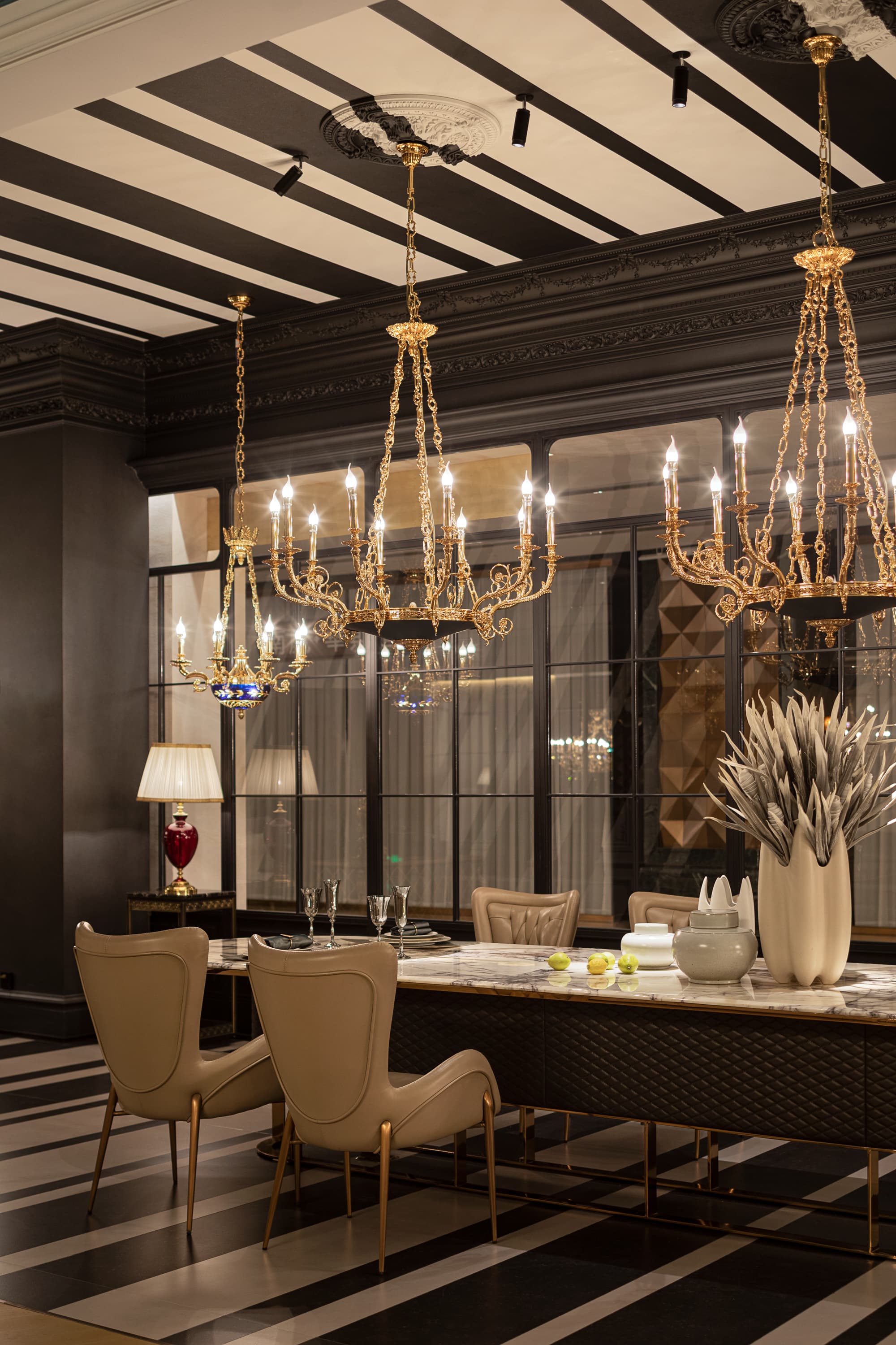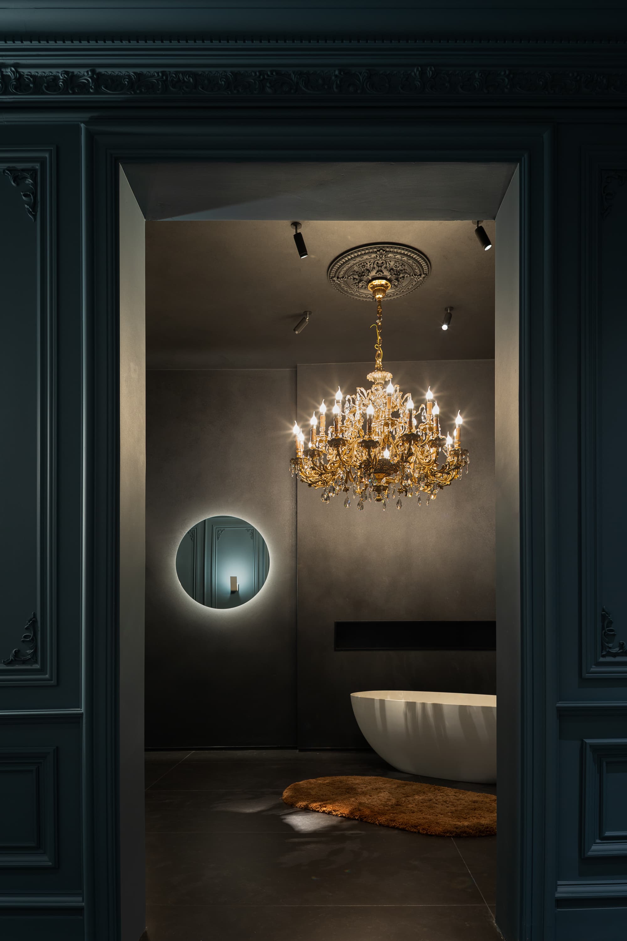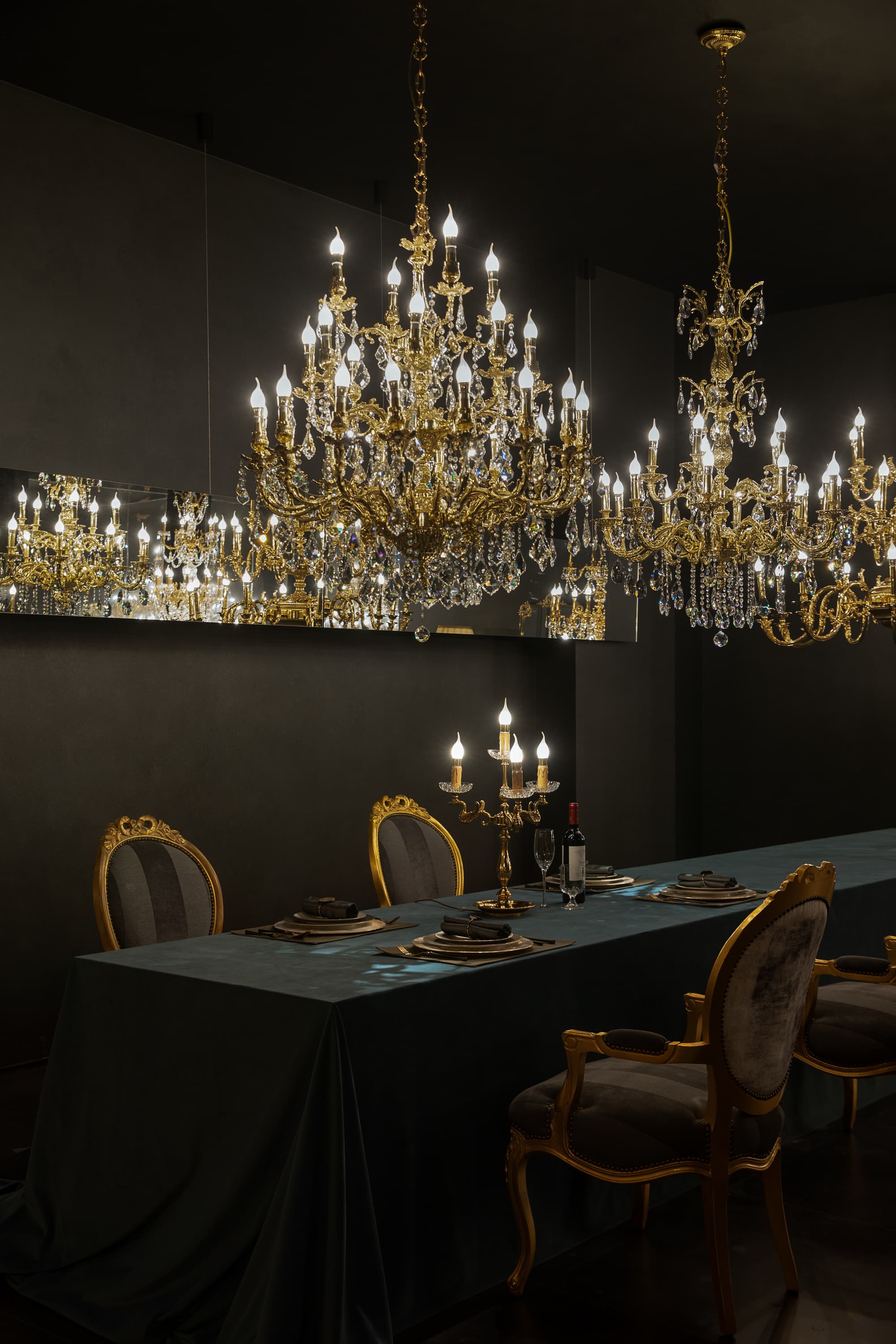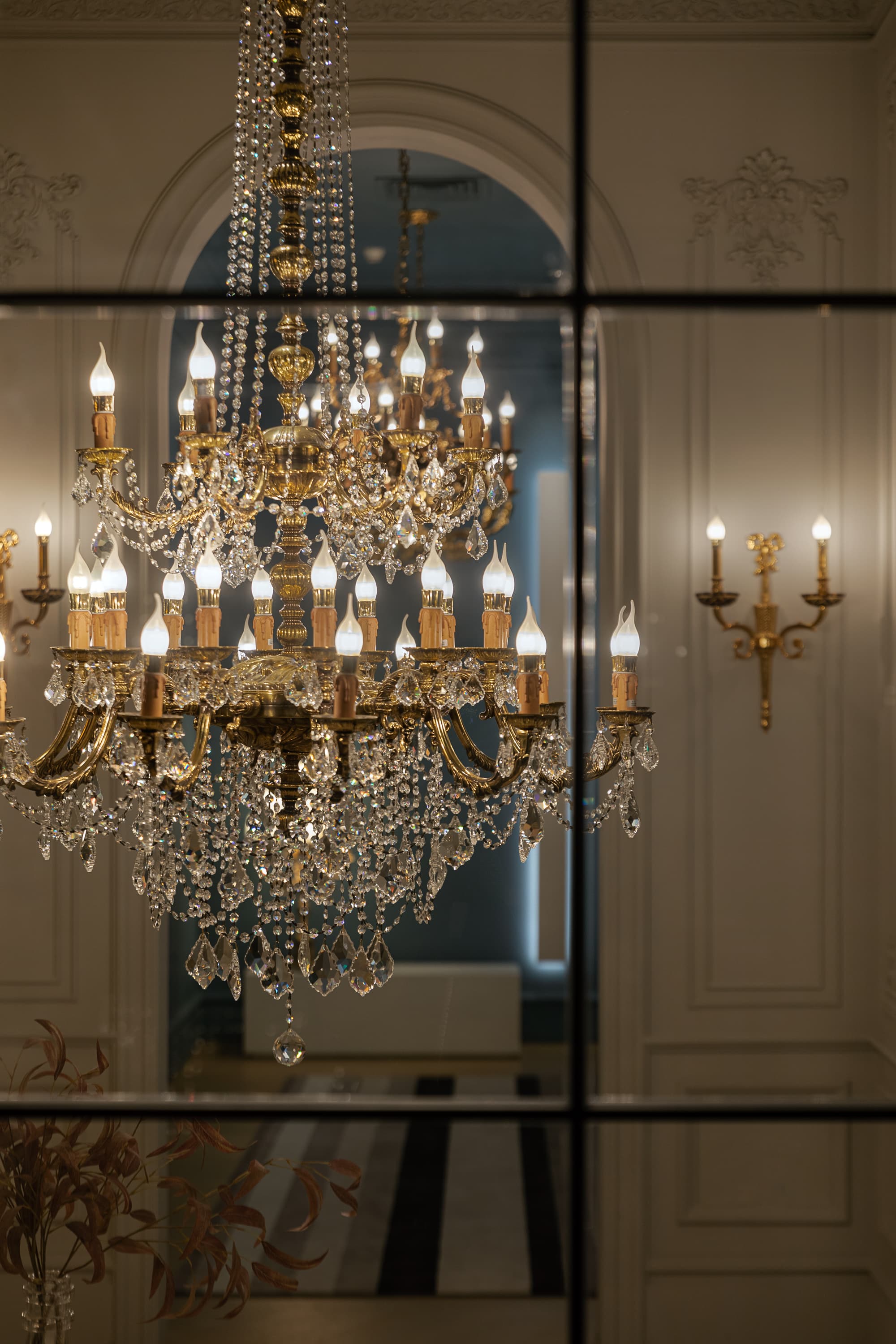 设计选材:特种蓝灰是我们寻找了很久的颜色。代表着展厅以及品牌的某种意志--阳光映衬下的天空、海洋的远眺感,也代表着“设计的星丛”从传统的风格中找到积极向上的想法。设计语言所讲述的逻辑是:传统的灯饰与年轻化时代的存在和共生是完全可行的。
