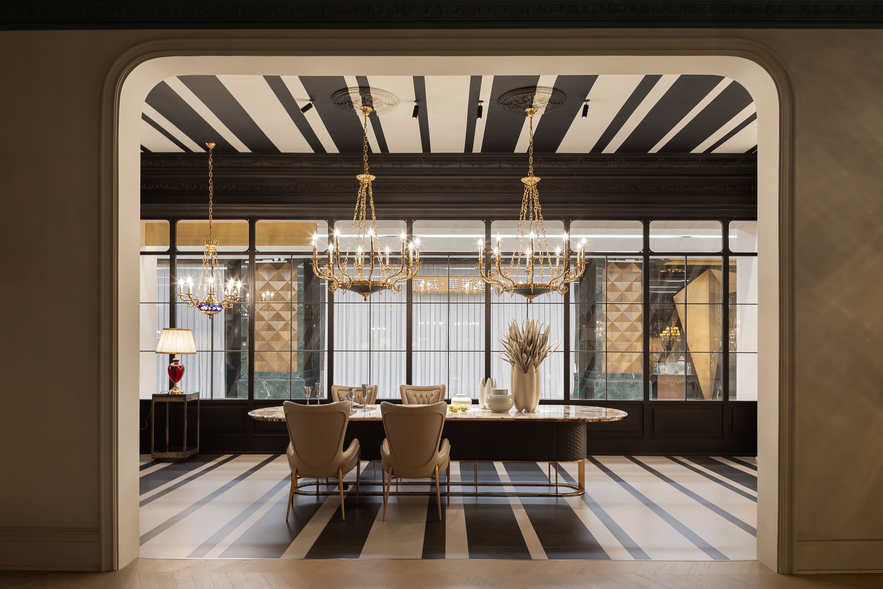 空间布局:张力的想象力,如同星丛,连接设计与空间,人和空间建立壁垒,参与创建其中的交互关系;设计也并不定意、孤立、拘泥风格,而是使其更具有延展性。