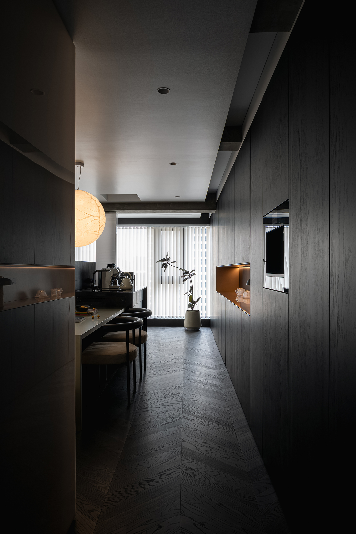 空间意境:用列开放的、充满光线的空间定义,借助“板块”的垂体结构,加以演变和重组,以视觉的错层关系和空间的“收”“放”,去适度剖析此空间真正的咬合
