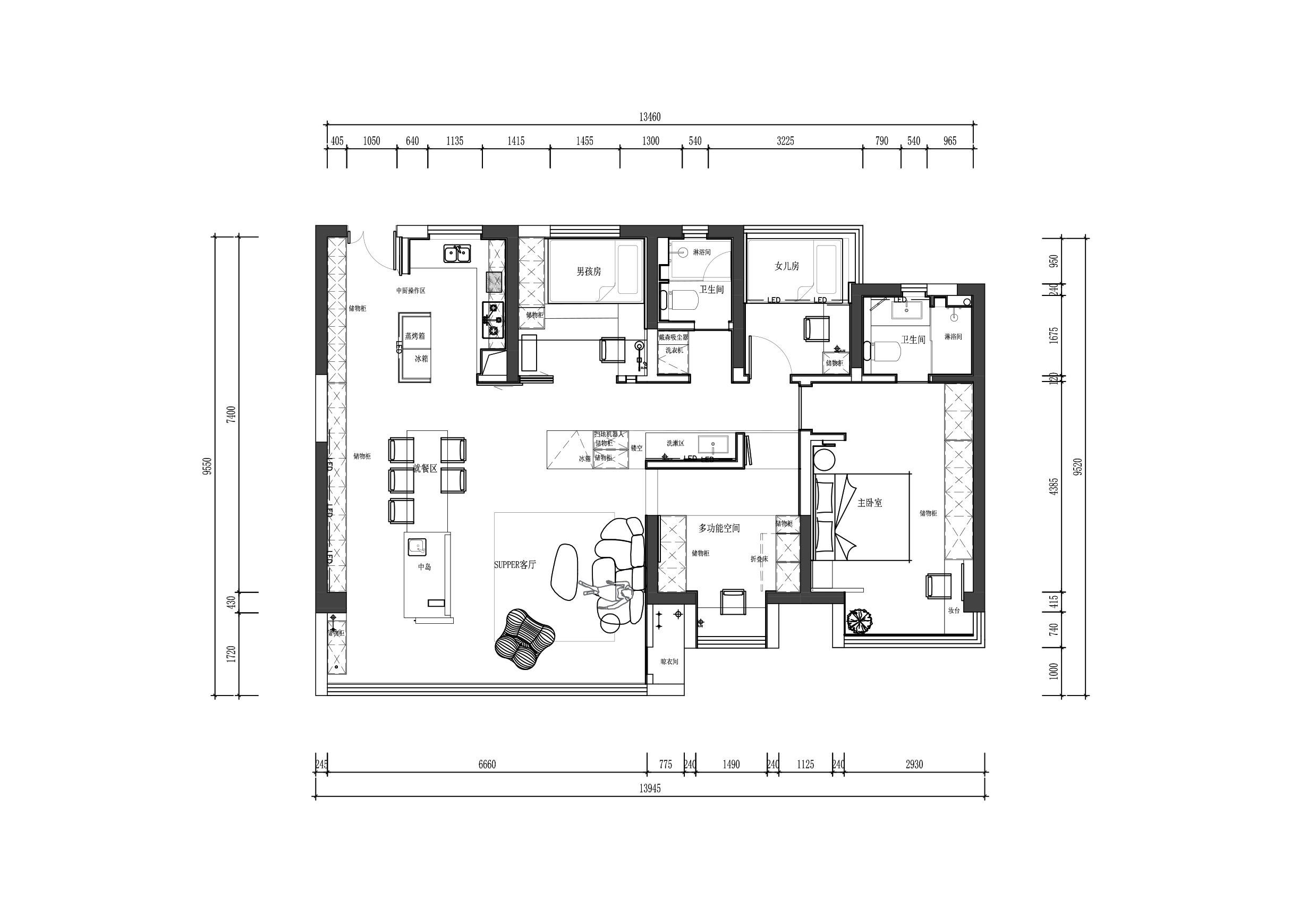 设计选材:本装修方案以 “低碳适配 + 经济长效” 为核心创新,材料选型兼顾环保与实用:低 VOC 乳胶漆、水性艺术漆从源头控污,回收级不锈钢、F4 星木作实现资源循环,薄型化瓷砖与石材减少全链路能耗;搭配 “功能分区用料” 策略,高频区域用耐磨瓷砖、不锈钢控成本,装饰区域用木饰面、艺术漆提质感,同时通过预制工艺缩短工期,耐用材质降低后期维护支出,真正实现 “低碳不溢价、经济不降级” 的装修价值。