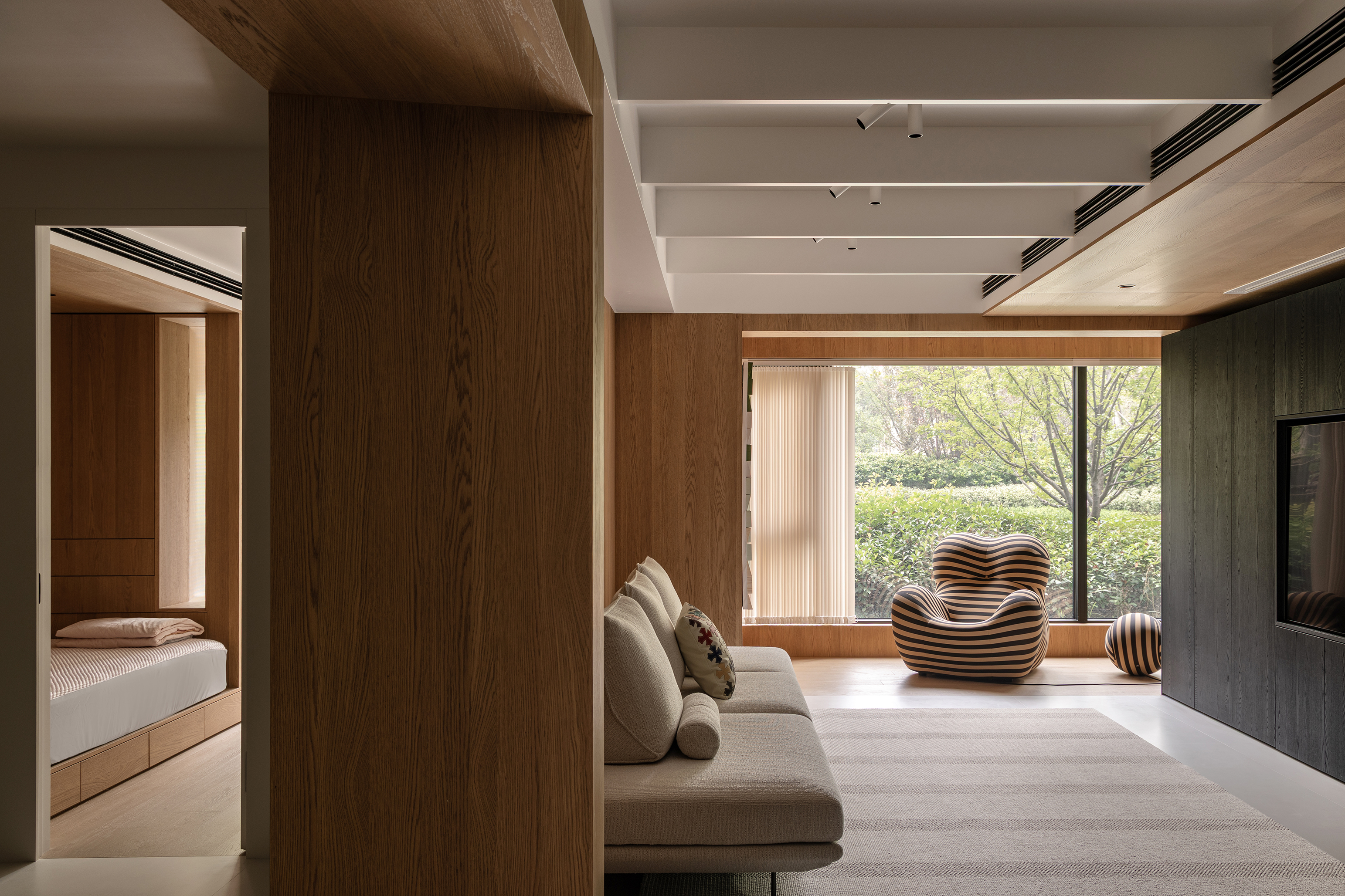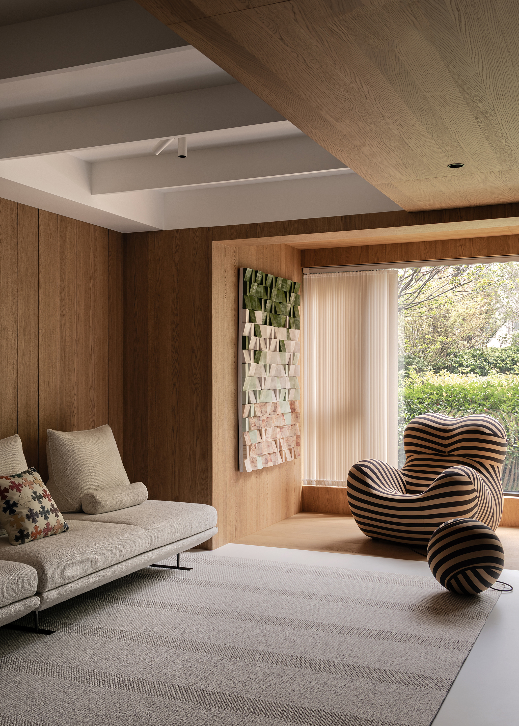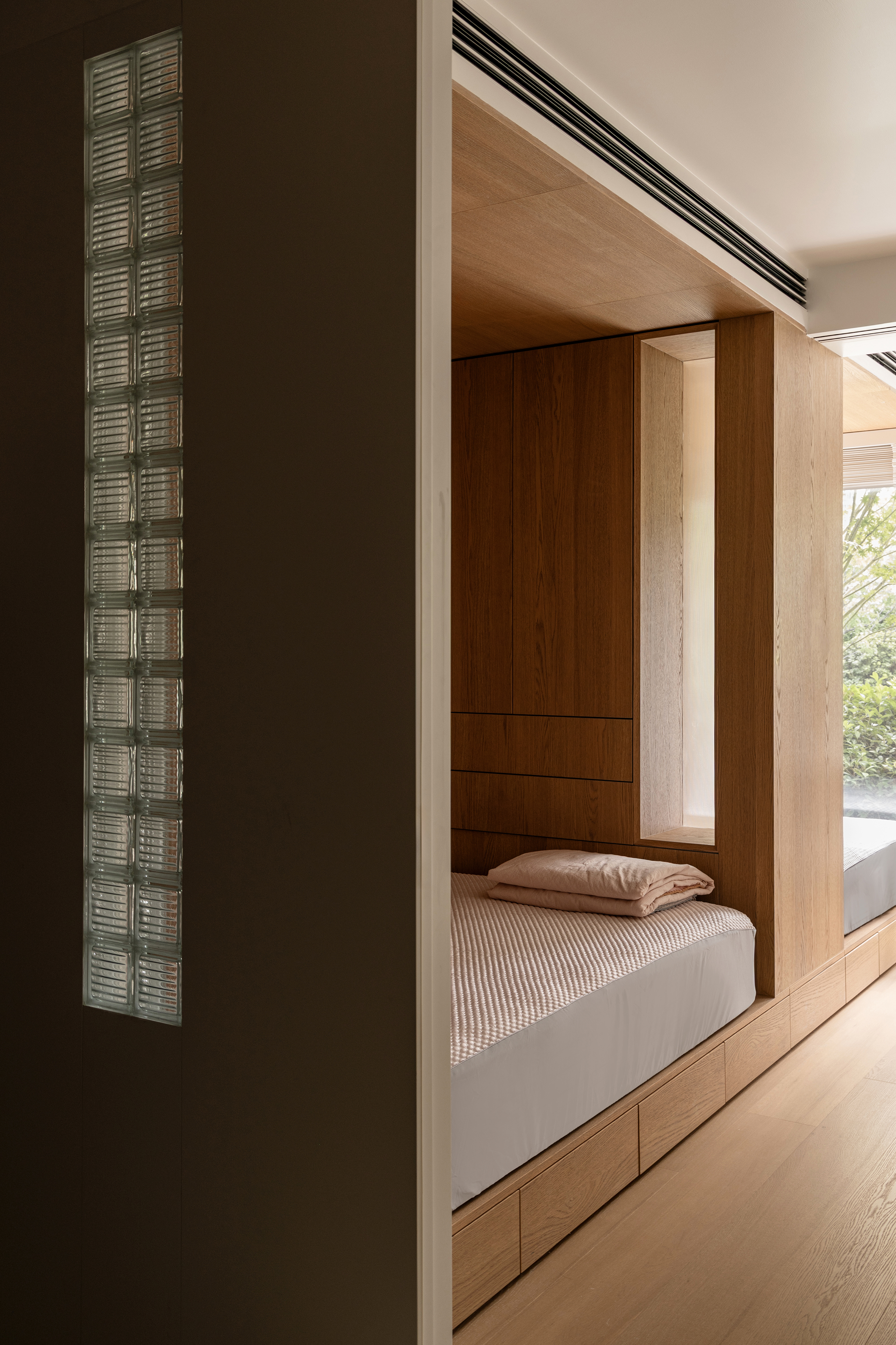 空间形式,与人有关,与光有关,也更与自然的状态有关。步入式的探索,希望日常是会随着居住者入住之后可以每天发现的新感受,它会因为天气变化、光线明暗等等附加给到不同的每天。灵活的场景,固定的人物,本来就是不在一个平行线上的两者,交错的某一刹那,便是我和这个空间所产生的新的交流。 -