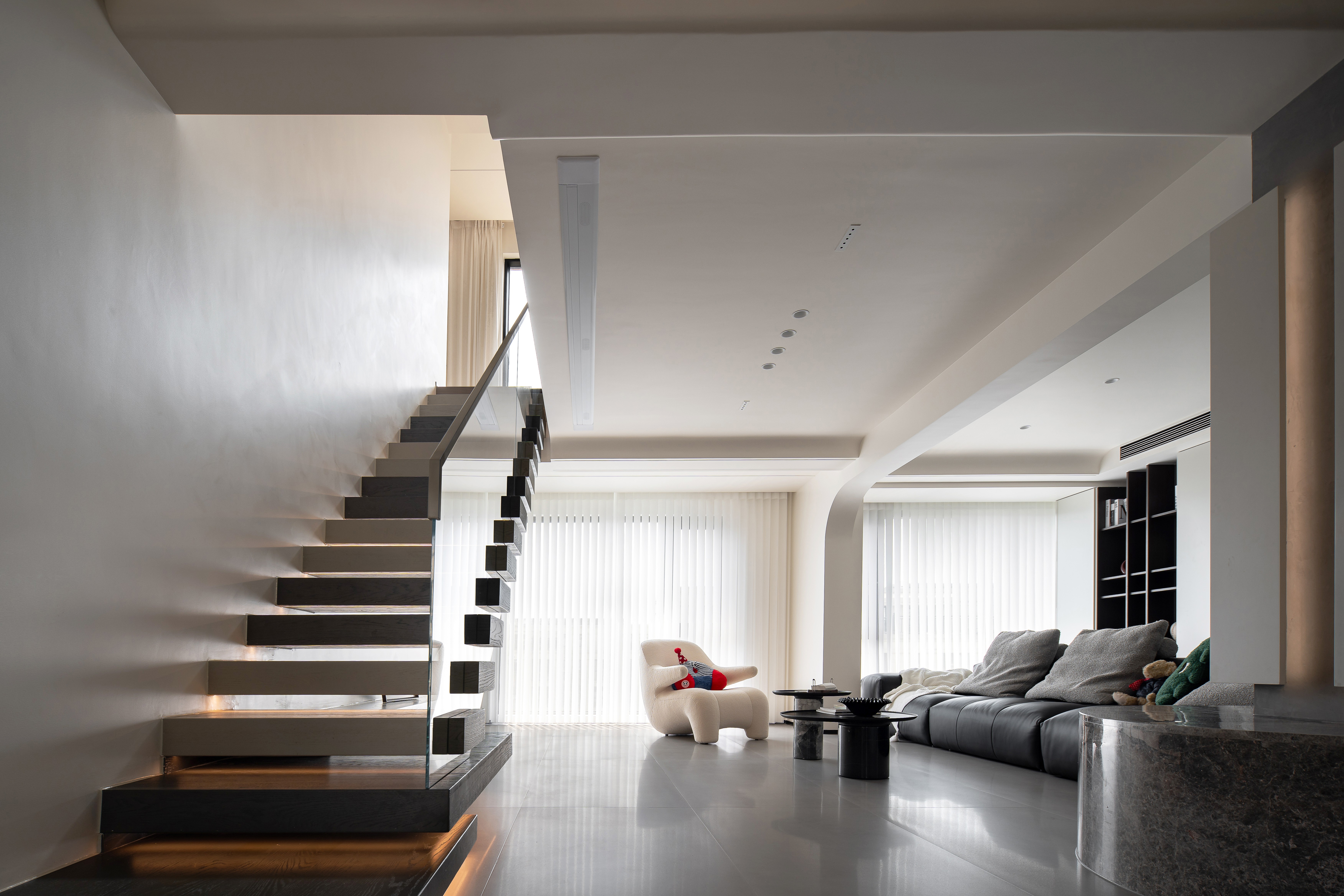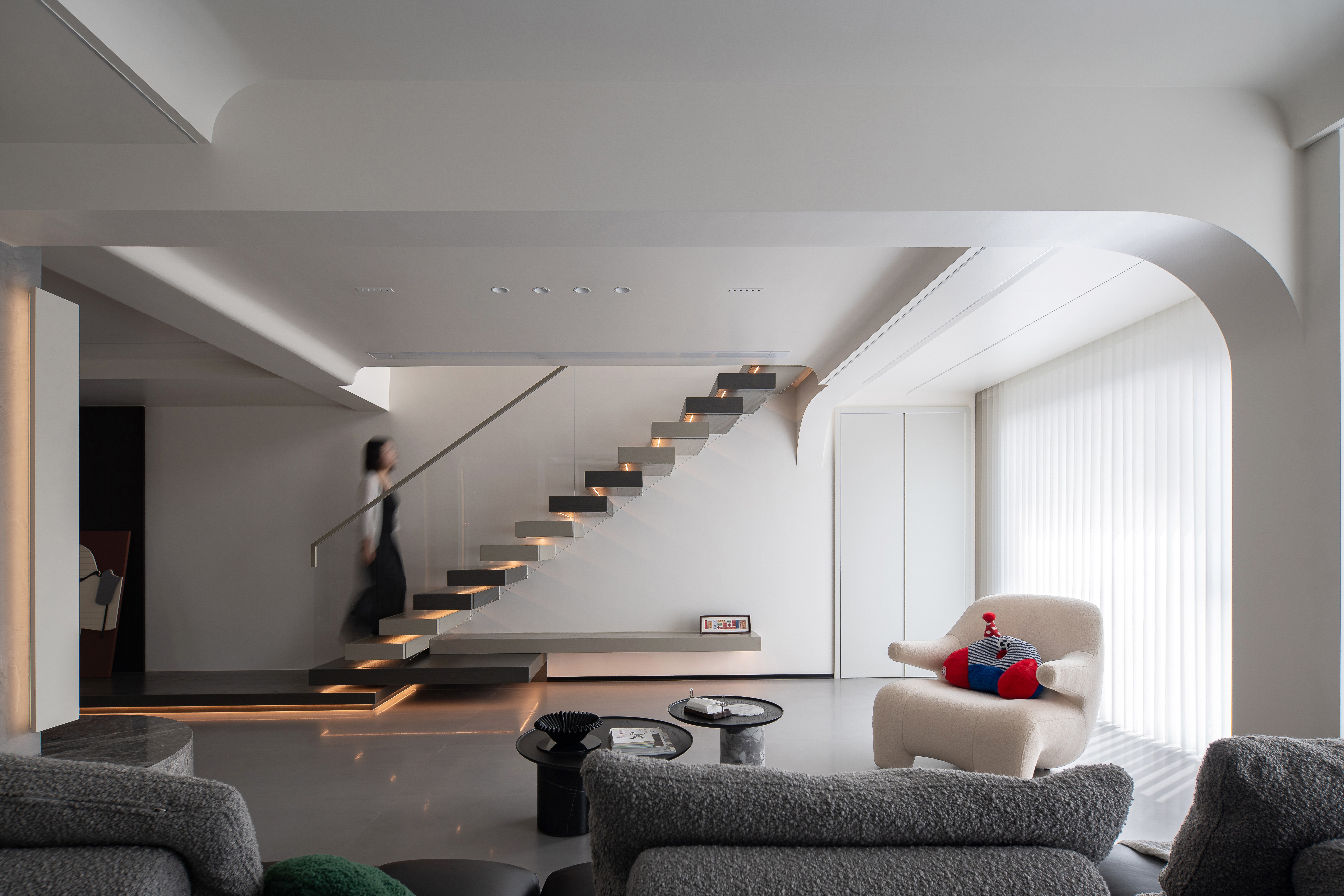 空间布局:针对原结构缺陷,调整楼梯位置、优化动线,科学划分公共与私密区域,遵循实用高效的客观规律;融入情感诉求,用开放布局促进亲情交融,以独立分区尊重个性,让悬浮楼梯成为兼具功能与美感的焦点。