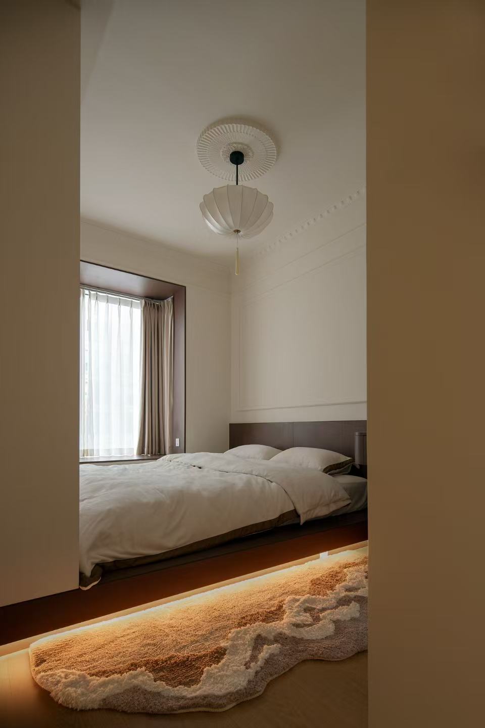 色彩适配:以“简白色调”为基础,搭配轻法式风格的柔和色彩,主卧融入欧洲元素的优雅色调,整体色彩明亮温馨,既符合轻法式的风格定位,又能营造舒适治愈的居住氛围,避免鲜艳色彩带来的视觉压力。
