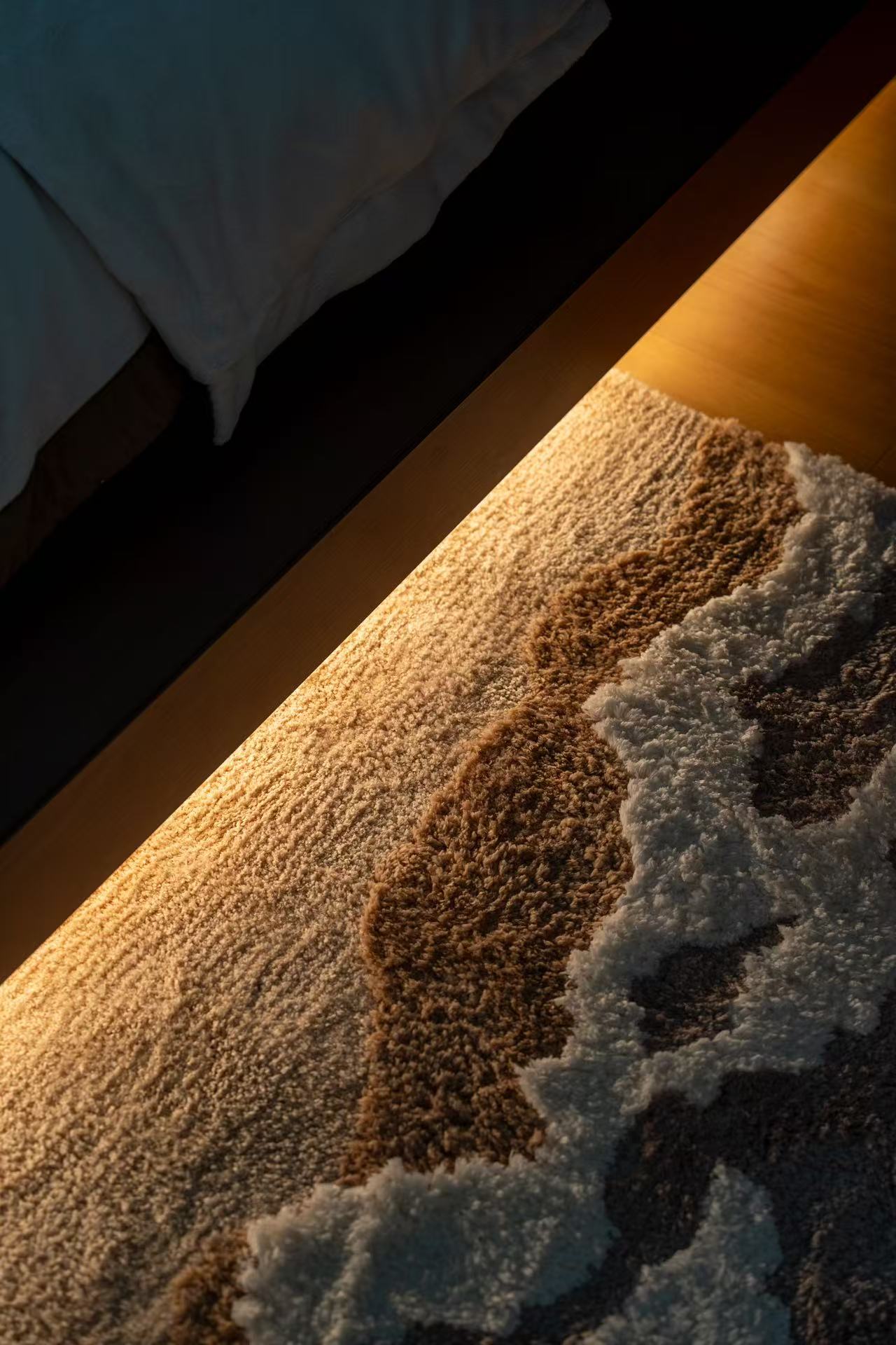 空间意境:空间场景设计以日常生活场景为蓝本,打造多样化且富有层次感的空间体验。客厅作为家庭活动与社交的核心区域,通过开放式布局,搭配舒适的沙发、可灵活调节的茶几以及大尺寸的电视背景墙,满足业主观影、聚会、休闲娱乐等需求。同时,利用落地窗帘、柔软的地毯和温暖的灯光,营造出温馨惬意的氛围,让人一进入客厅就能感受到家的舒适与放松。