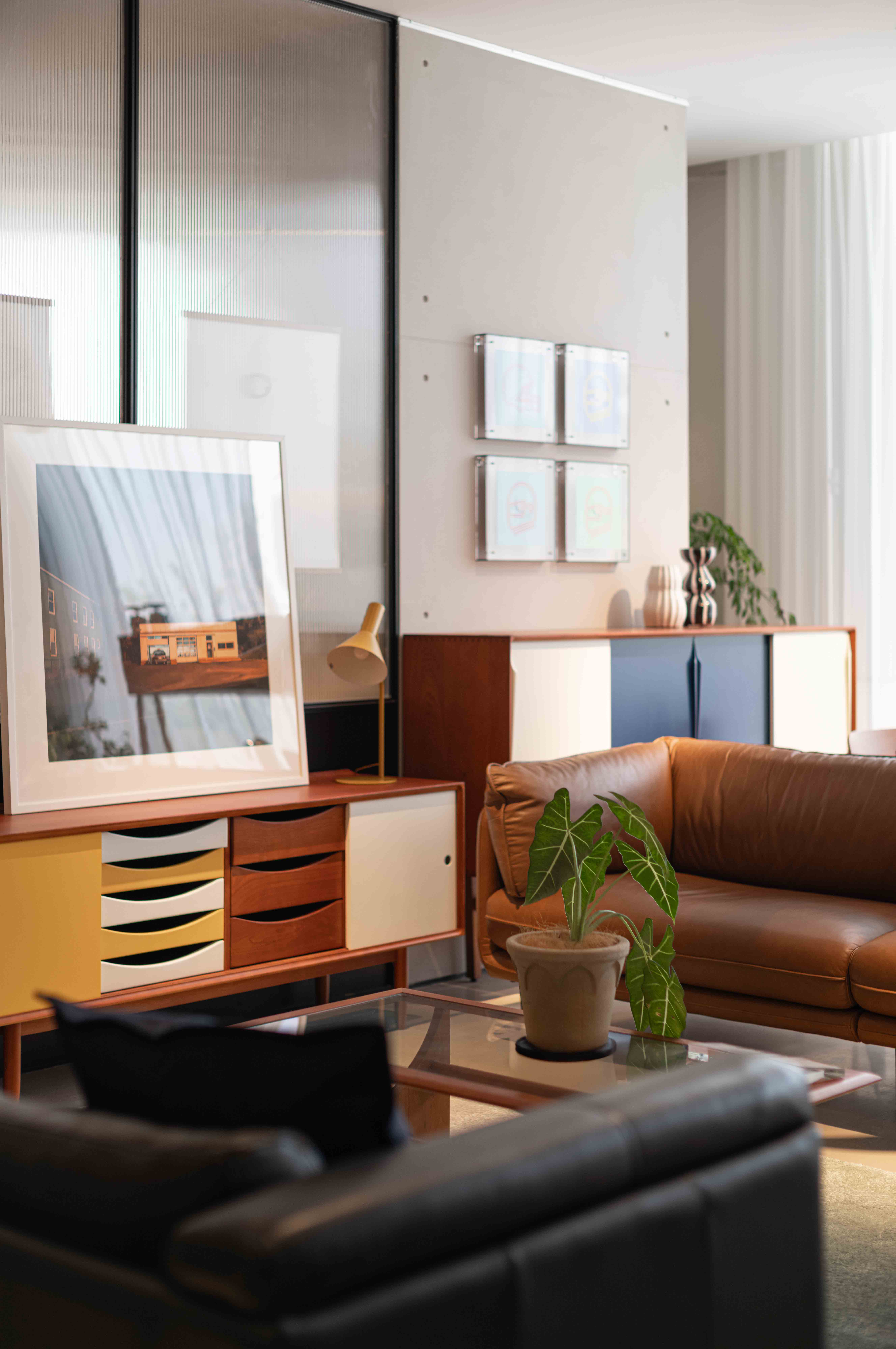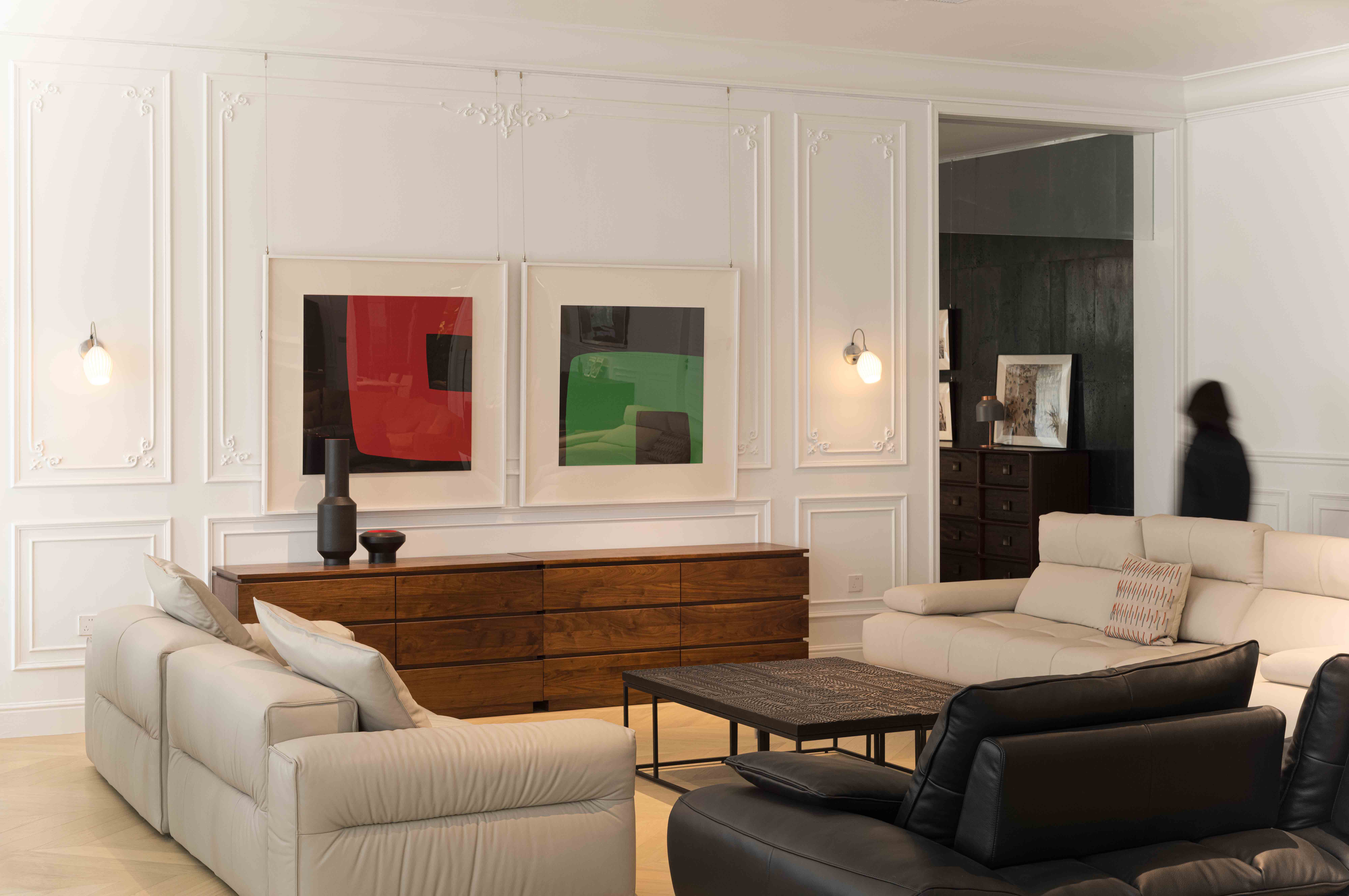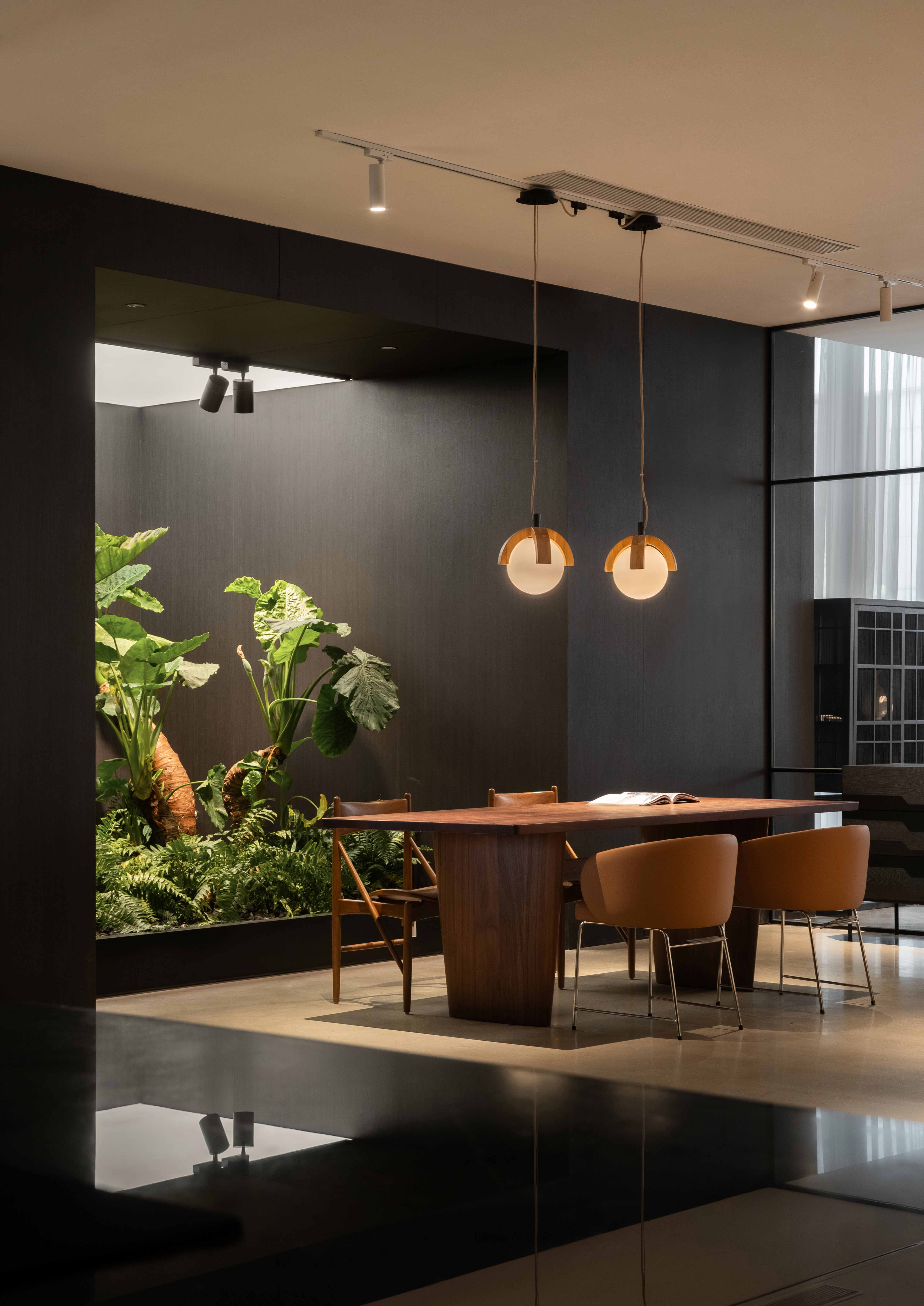 设计选材:材质与光影是空间叙事的深层语言。斑驳的微水泥、粗犷的火山石、温润的实木、冷峻的金属与柔软的皮革并置对话,在对比中极致烘托出家具的质感与温度。照明上,精准的重点射灯与柔和的氛围光交织,自然光与人工光协作,共同勾勒出空间的形体与层次,赋予其戏剧性的叙事深度。