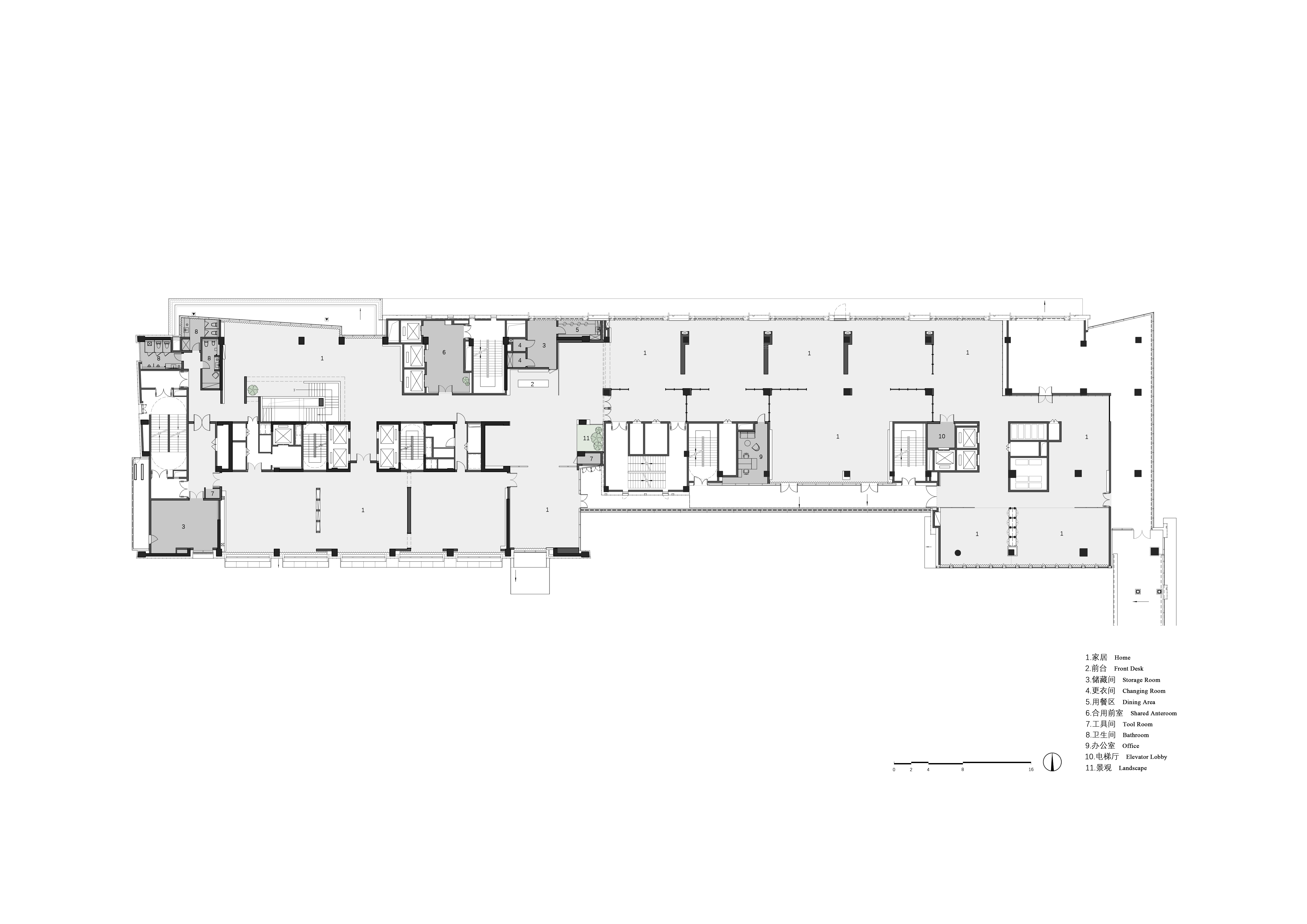 • 转 • 游观: 针对二层狭长走道,设计巧妙化劣势为特色。通过串联多个“生活场景盒子”,并运用框景、透景等手法,将通道变为一条充满发现乐趣的探索路径,彻底消解了长距离的单调感。