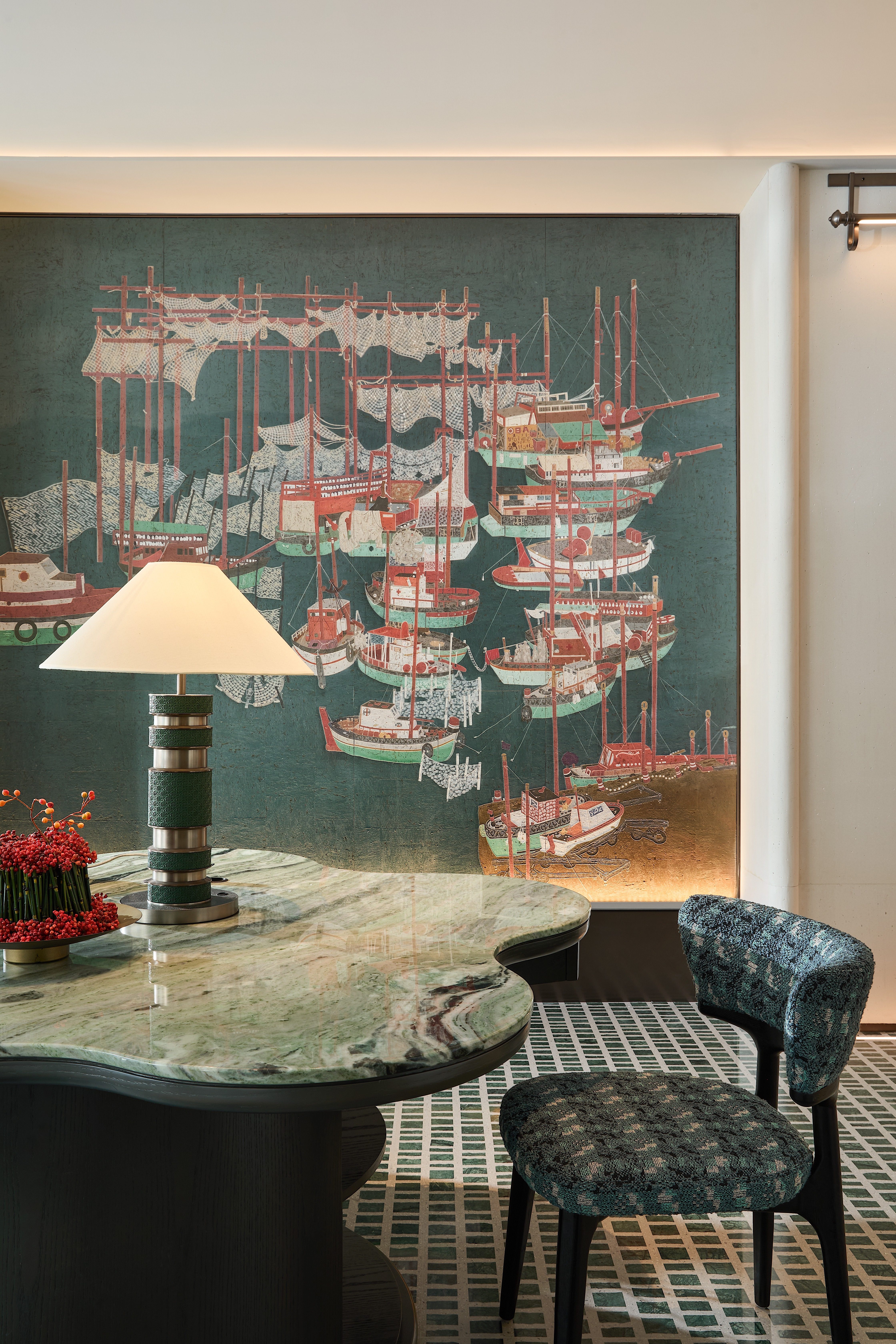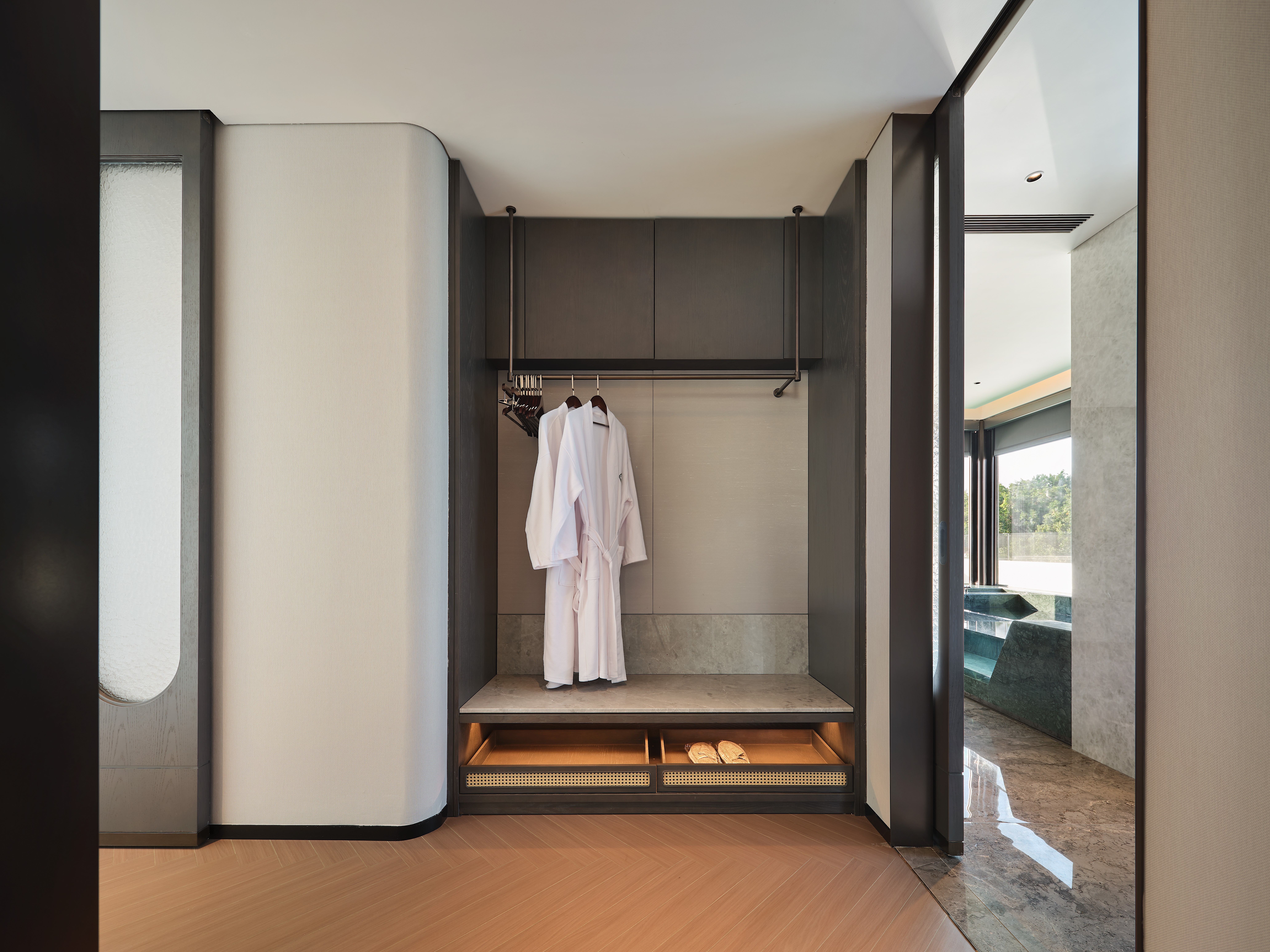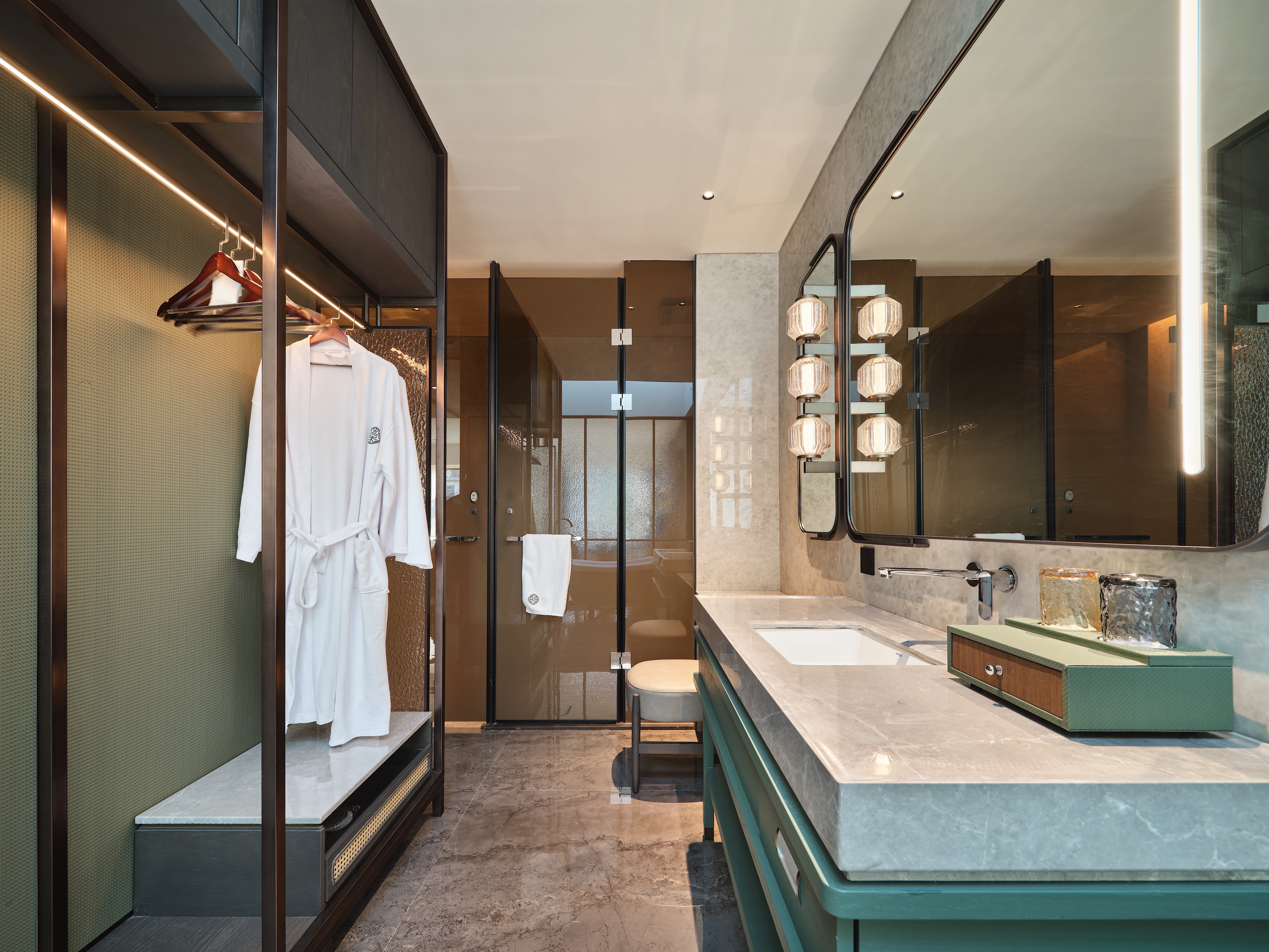 超越传统酒店的装饰思维,我们构建了一套完整的空间叙事体系。从“千帆归港”的初遇,到“红船港口”的对话,再到“光之中庭”的升华,最终抵达“茶船古道”的烟火气,宾客的入住动线即是一次完整的侨乡文化探索之旅,实现了从“居住”到“体验”的维度升级。