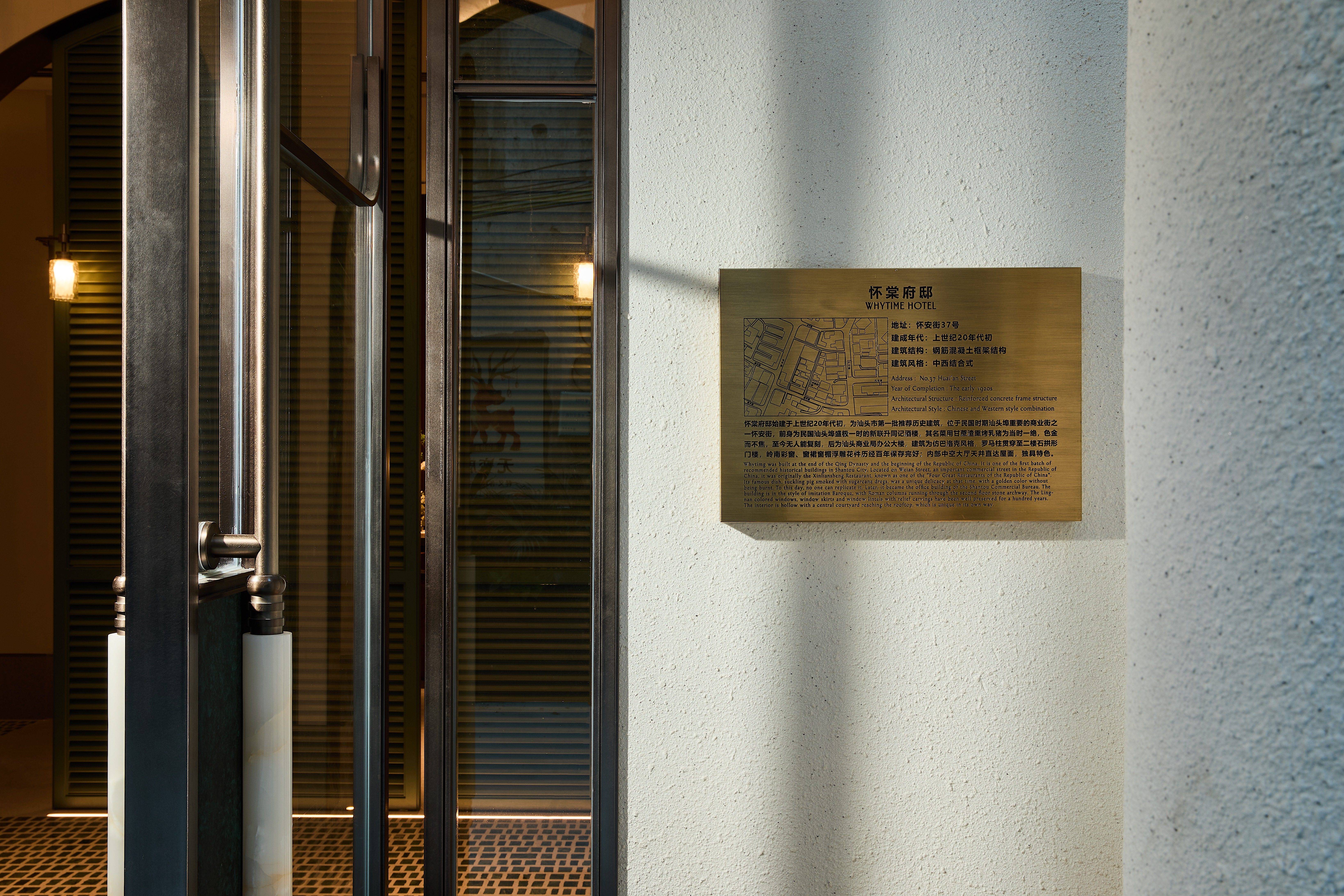 项目定位:本案位于汕头市的历史风貌区——小公园,这里是汕头市最早的发源地,历经百年,是汕头第一批历史推荐建筑。项目本身是一次对百年住宅的改造再生,设计师在尊重历史的前提下,保留原建筑外立面、柱体、墙面与框架结构,延续其建筑肌理与历史质感。特别将原有的户外彩色玻璃,以蒙德里安拼花逻辑重新演绎,植入拱形落地窗之中,成为外立面的视觉亮点,塑造出属于百年住宅的独特记忆点。