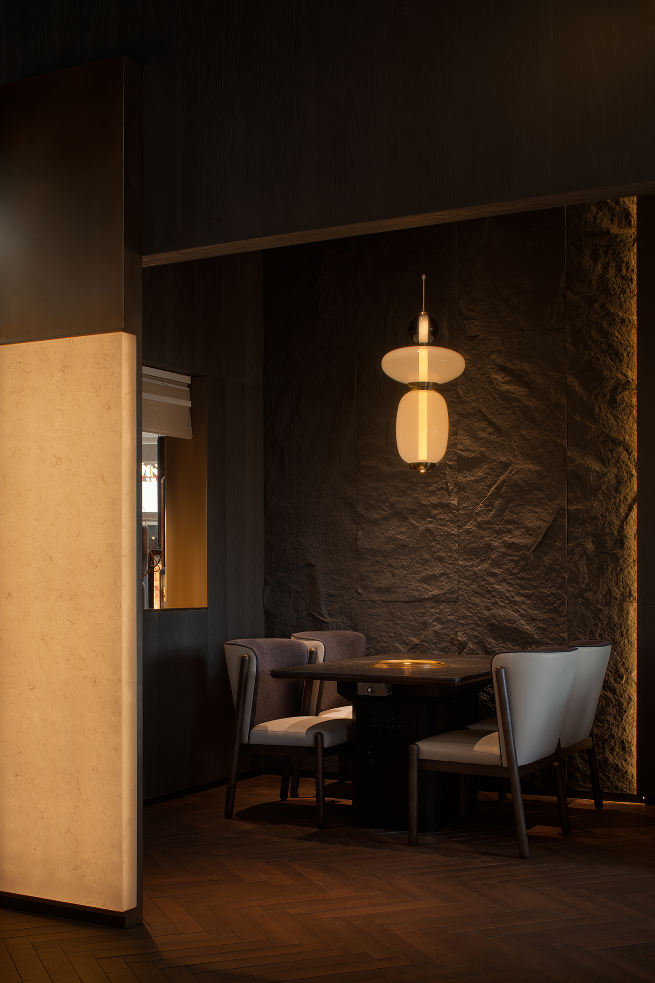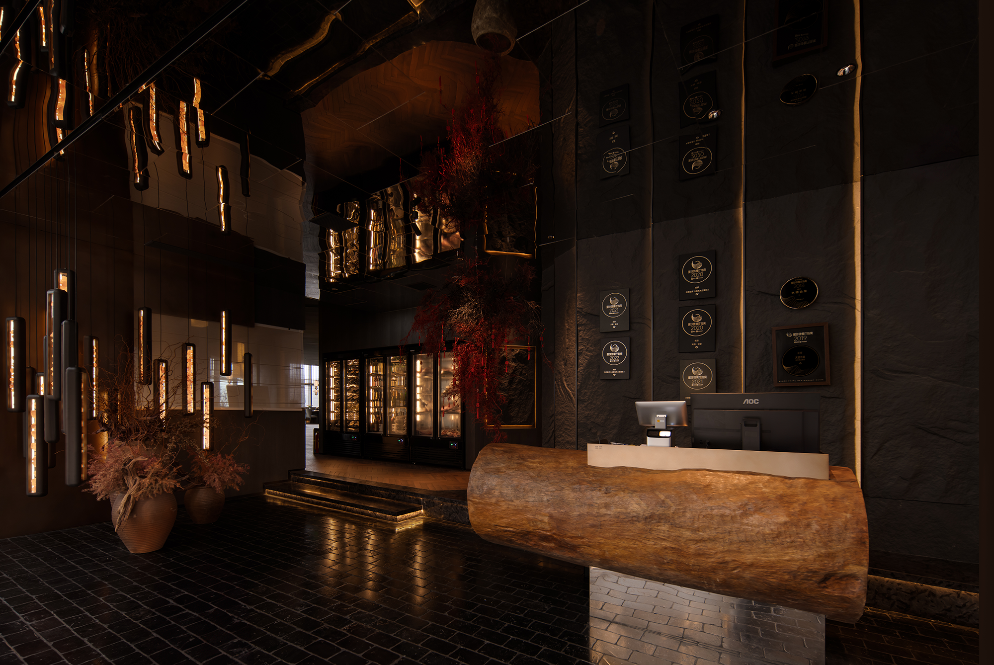 本案项目「大德烧肉」作为华东首店,强调食材本味,希望为食客带来高品红肉烧肉料理的臻享体验。设计将品牌理念融入场景化的表达中,通过具像化的空间形制展现精研奢味,熏染一场场相聚的暖意,溯源这座城市的烟火气与生命力。