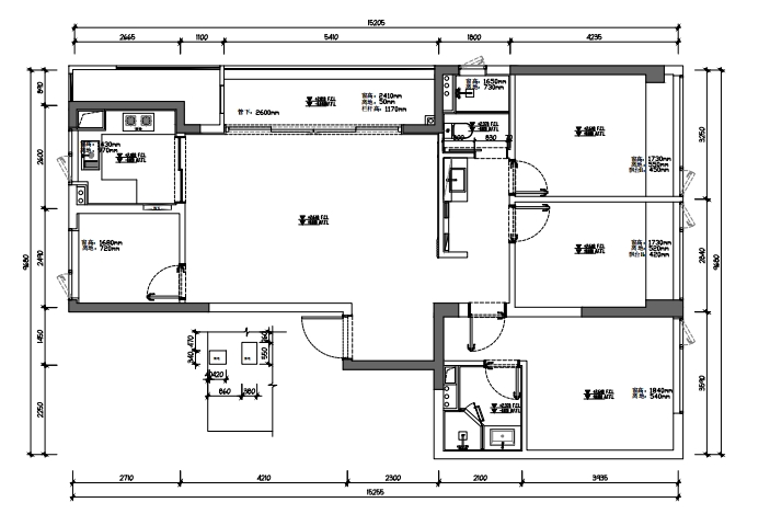 平面设计图 1. 延长玄关墙体集端景、储物、动线引导于一体。 2. 公区开放融合:打通原始厨房与朝北小书房,以餐岛一体为核心,结合四联动移门,实现场景在“亲密烹饪”与“开放社交”间的自由切换。 3. “移动过道”高效挖掘潜在面积,实现零浪费改造,将过道整体上移,把释放出的低效面积巧妙融入主卧,一举解决主卫干湿分离痛点并增设梳妆区与大量储物。 4. 私区灵活联动:飘窗改造为儿童书桌,极致利用每一寸空间;儿童房与多功能房通过推拉门实现可开可合,拓展了游戏、学习与陪伴的多样化场景。