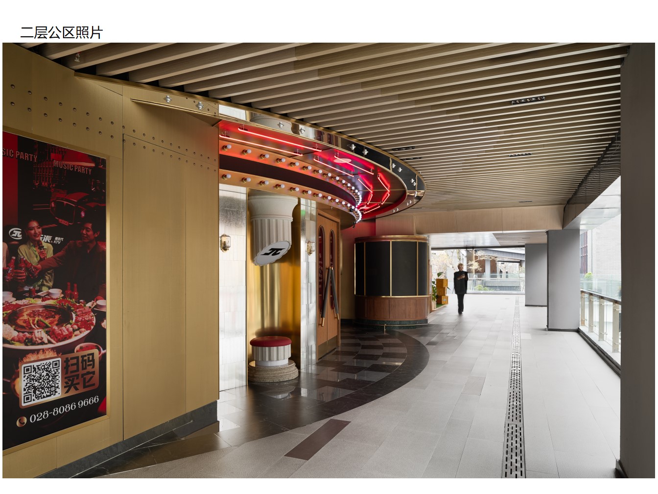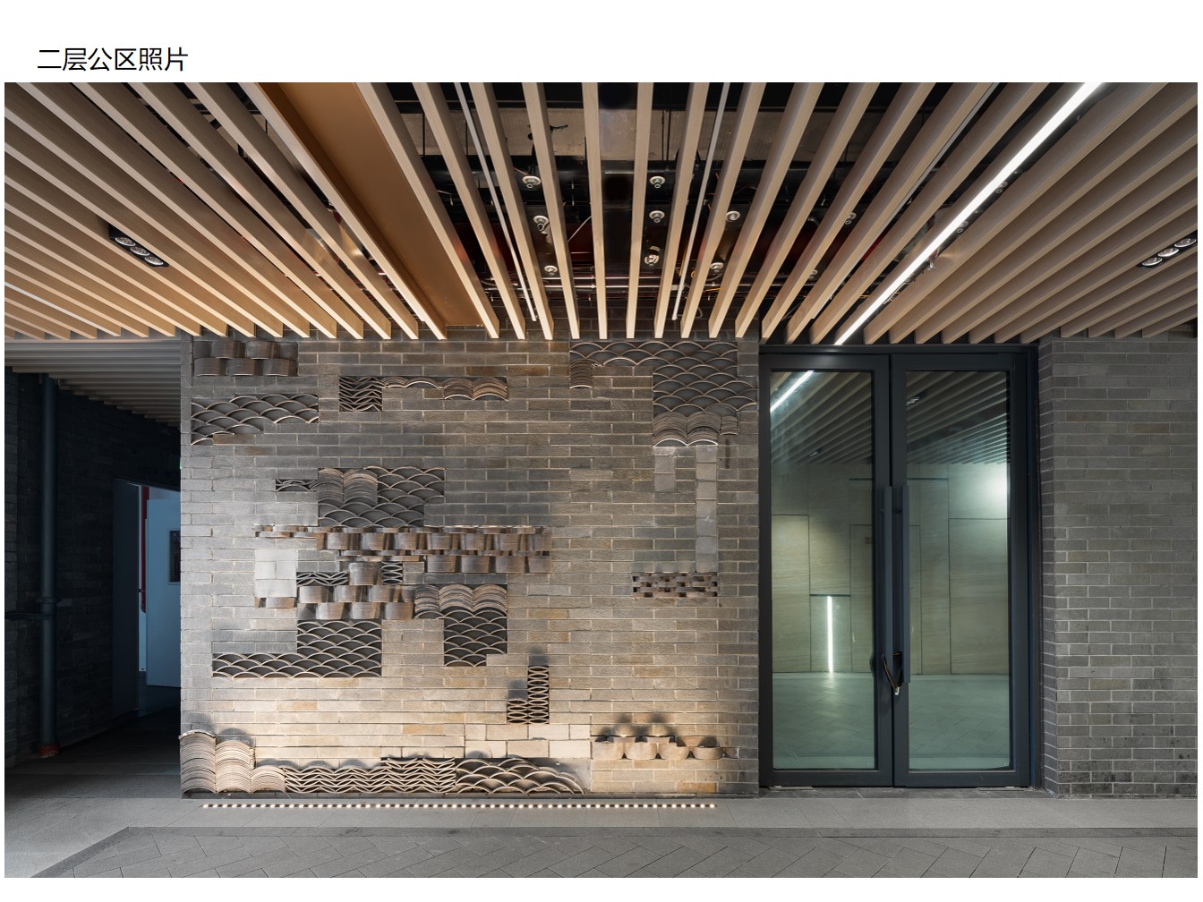 空间意境:设计注重成都地域特征,同时融入国际化审美。通过丰镇黑石材、青瓦、白墙等本地材料的现代化应用,打造低调且有品质的空间氛围,体现 "国际性 INHERIT" 理念。针对不同楼栋定位进行差异化设计:1 号楼聚焦 "时尚、名品",强化入口廊道与扶梯区域的高端感(如锻铜地面、琉璃装饰);2 号楼定位 "休闲、运动",通过玻璃砖、檐椽等元素营造开放氛围;7 号楼作为 "大型餐饮" 空间,融入地域浮雕与垂花柱等文化符号。