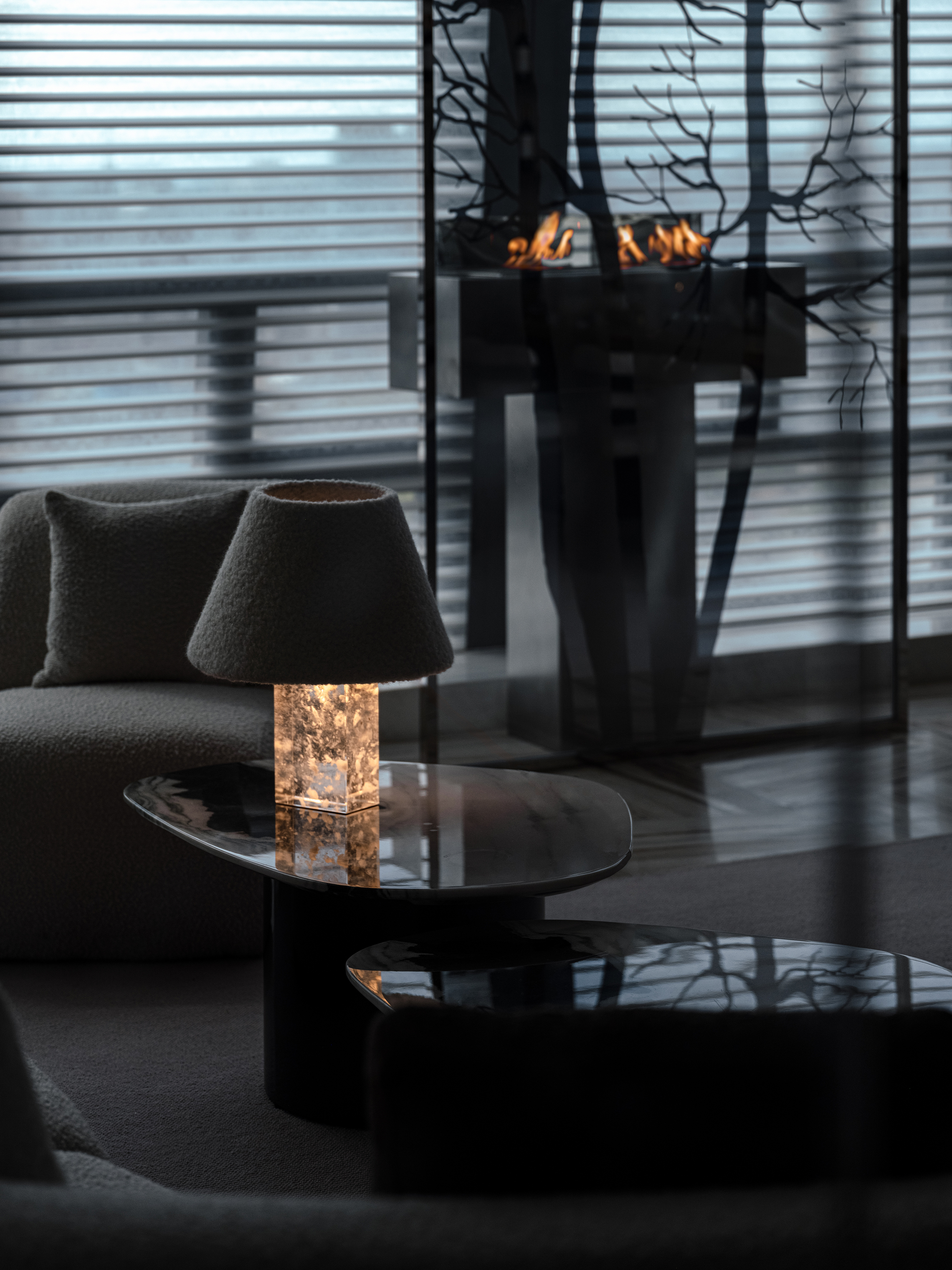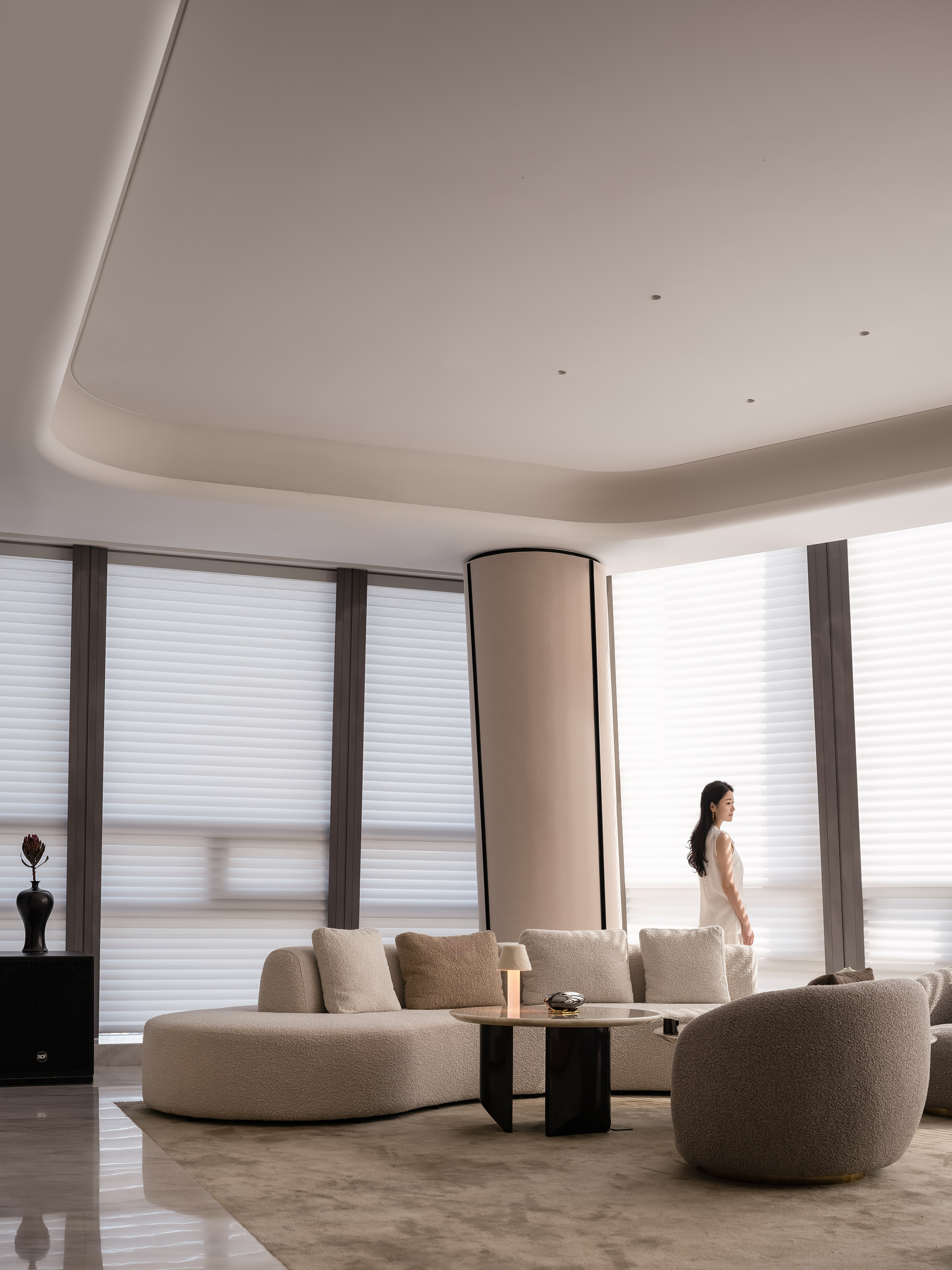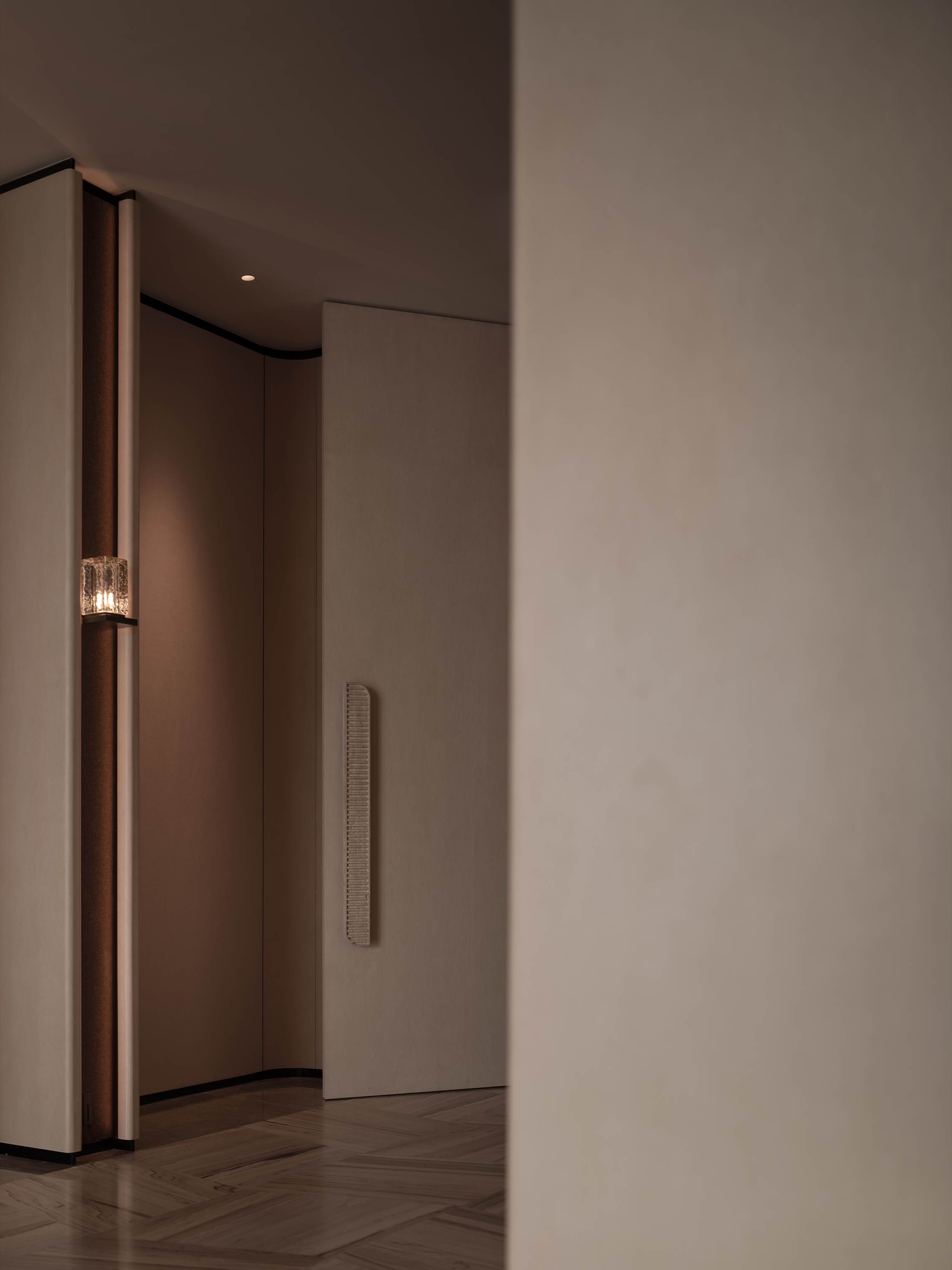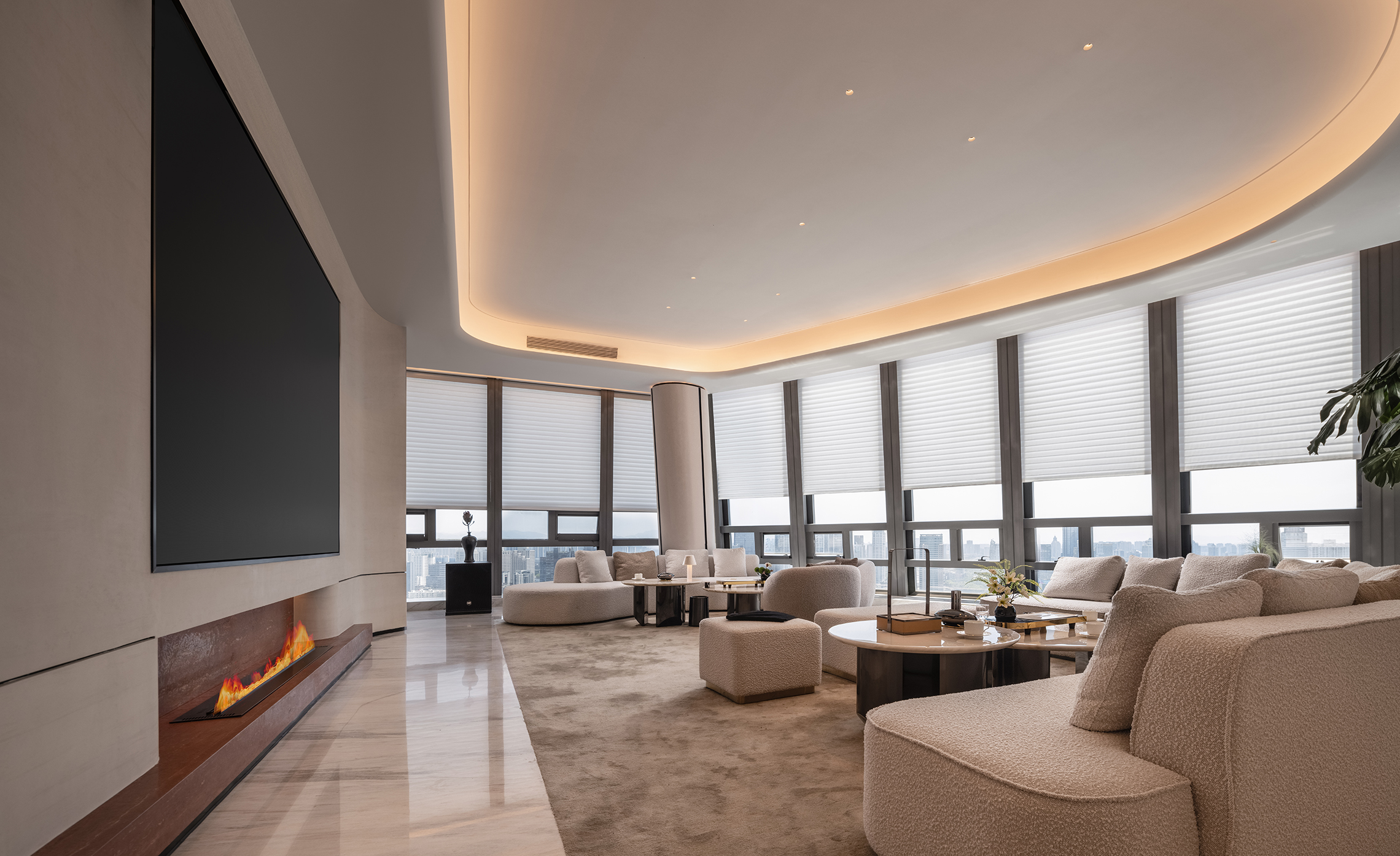 设计选材:摩根全屋智能是空间的隐形管家,灯光场景随宴请节奏切换,电动开窗机引入自然风时,双空气系统同步净化,让每一次呼吸都成为享受。声学场景精准拿捏氛围,品鉴雪茄时的静谧、派对时刻的动感旋律,皆由摩根声学定制。更有生命之树艺术装置、云纹铜板等细节,以触感、视觉、嗅觉的协同,构建超越物理空间的五维体验场。空间里,雀眼木、影木等自然木作传递温润触感,羊羔绒沙发的柔软与原木餐桌的质朴,消解“高端”的距离感。玻璃砖的清透、云纹铜板的细腻纹理,在灯光下交织成诗,嵌入式酒精壁炉的火焰跃动,让科技与自然、冷硬与柔软碰撞出独特美学——这是私宴的升级,更是“家宴质感”在云端的重构。