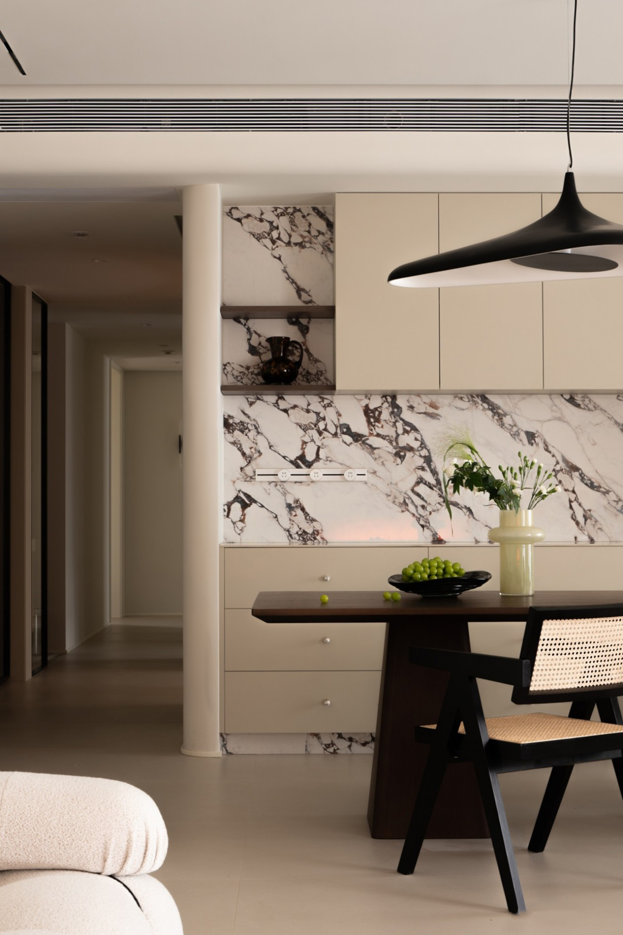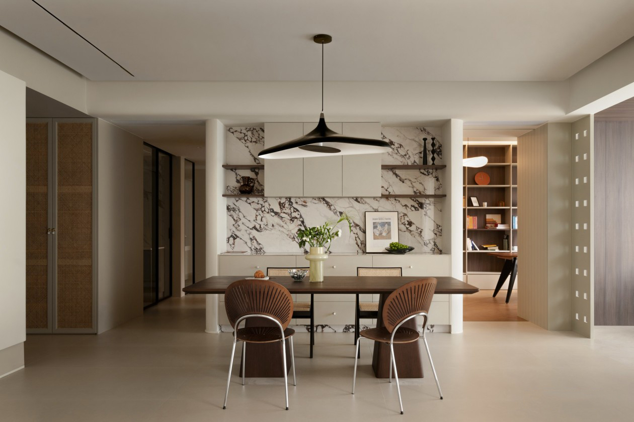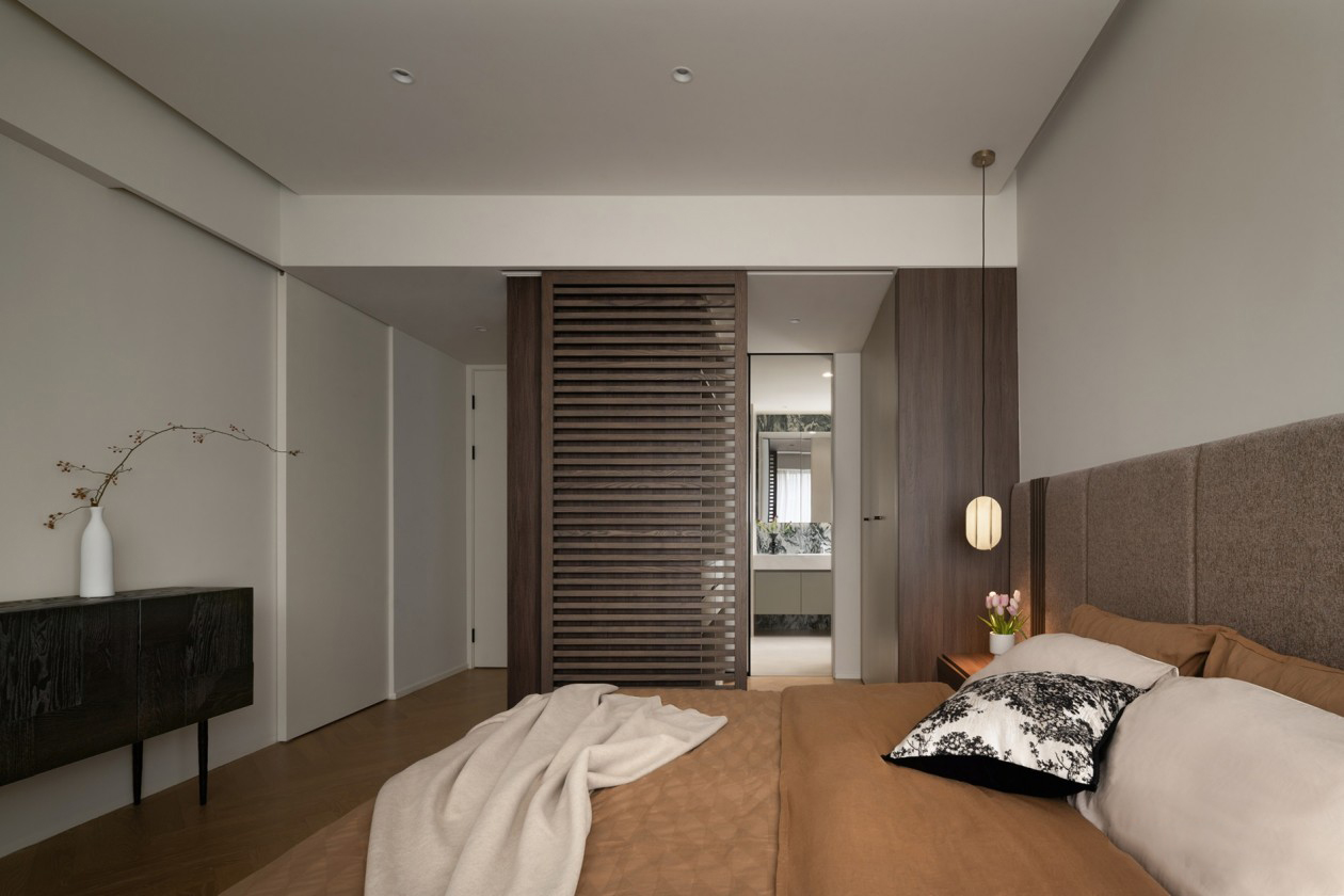 延续外部沙色为空间基调,融合温暖丰富的中性棕色、胡桃木色,渲染出柔和雅致的氛围气场,于无形中散发出独特的格调。