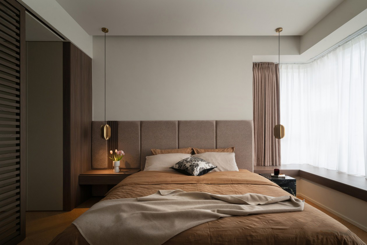 本身配备的主卧面积过大,重新规划后,在满足独立衣帽间、睡眠区、卫生间后,另行释放部分面积新建一间次卧,充当亲友小憩的客房使用。