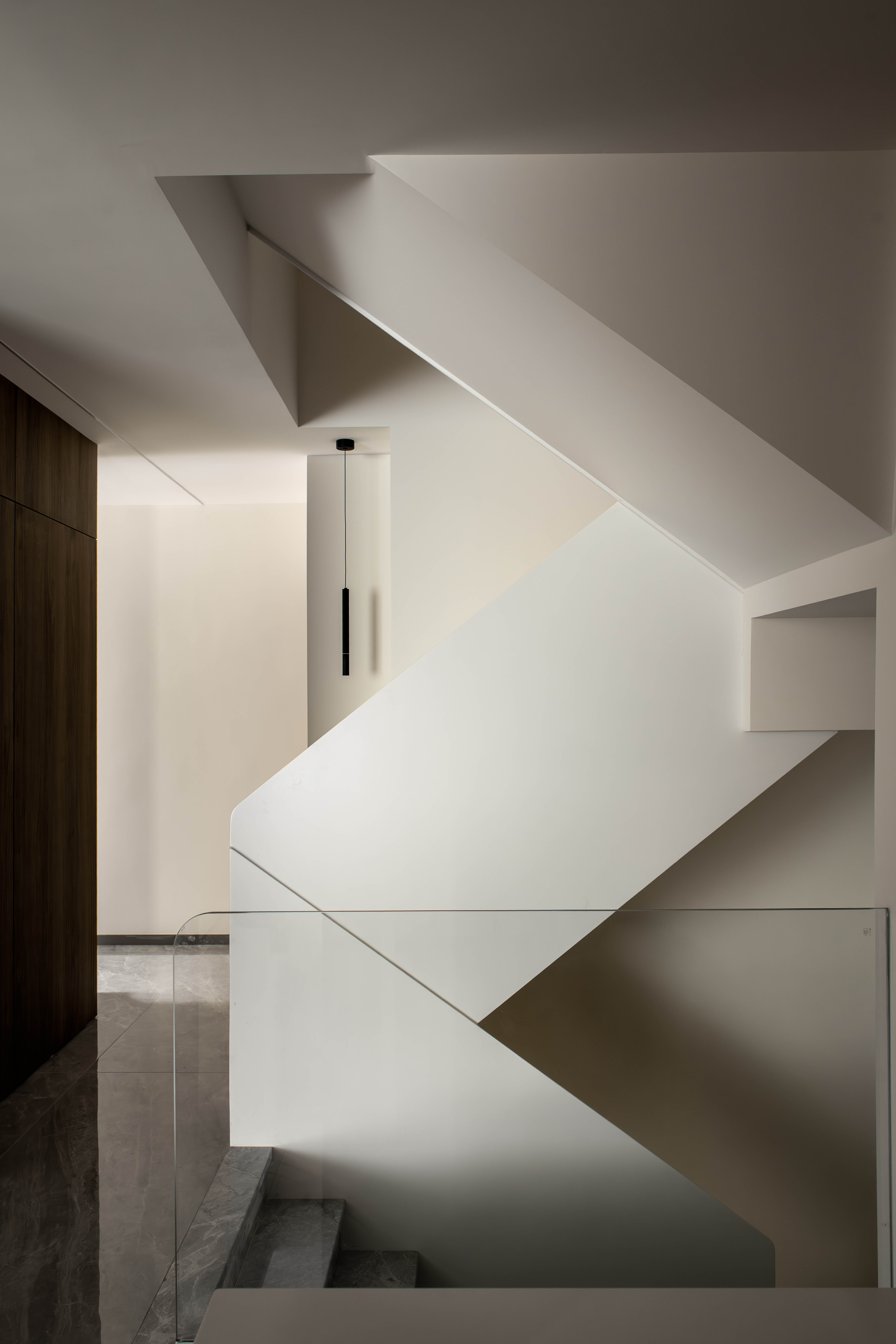 项目定位:本案旨在打破地下室压抑、闭塞的刻板印象,以现代极简主设计哲学为核心,将地下室转化为一个明亮且与自然相连的空间。我们摒弃一切多余的装饰,通过纯粹的空间形态,以及流畅的空气流动,打造一个功能与美学高度统一的“地下室生活空间”。设计的核心策略是“向光而生,因风而活”,巧妙利用空间设计出“双“采光井!辅以新风系统,从根本上解决地下层的先天不足,实现与地上无异的舒适体验。