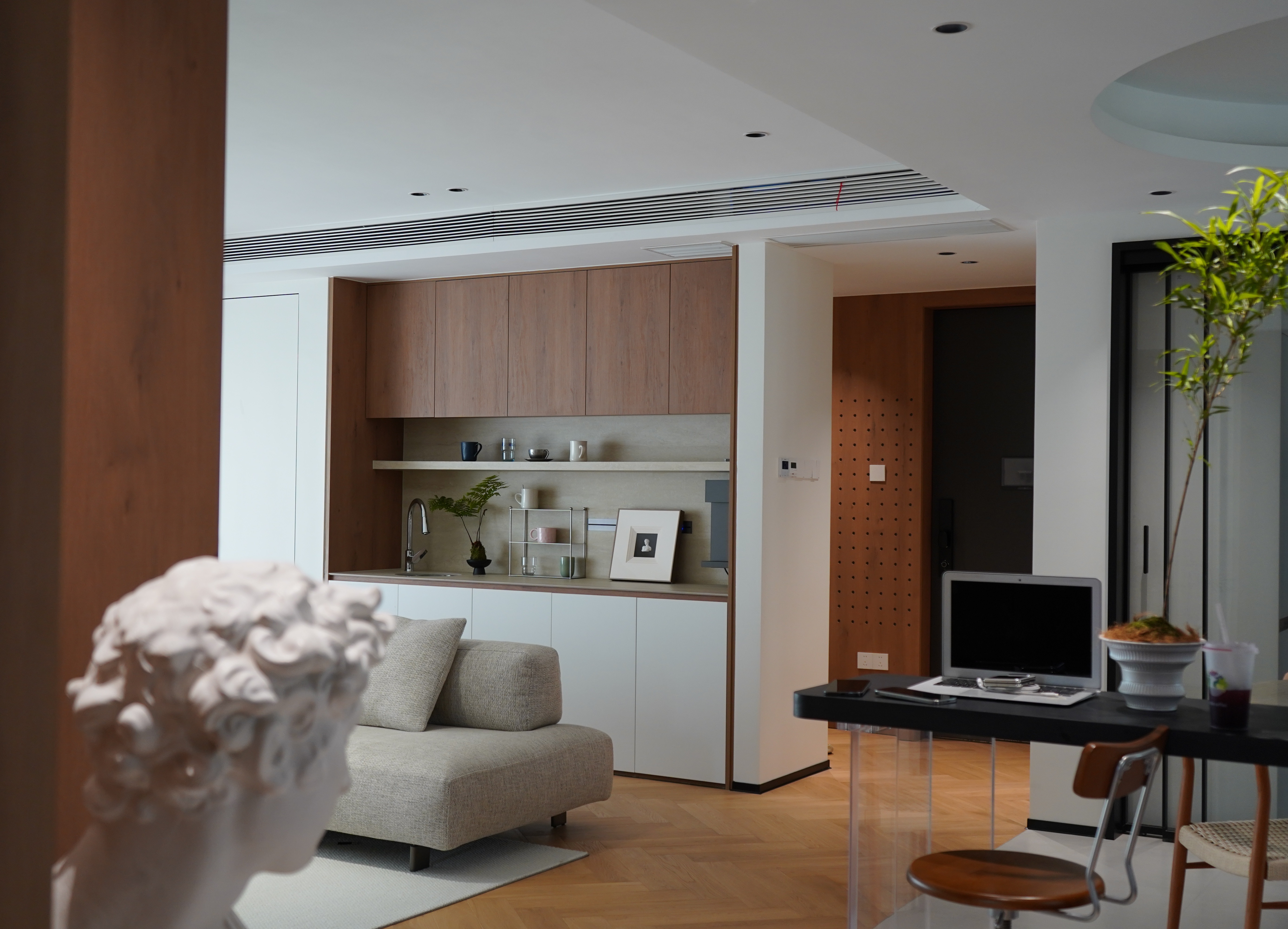 项目定位:用最质朴的材质,让家变成“会呼吸”的空间,不需要复杂的装饰,简单的留白+木色,就能治愈疲惫感。