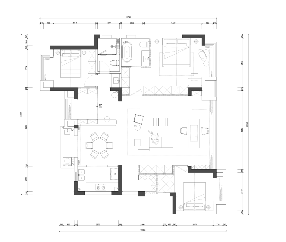空间布局:空间整体以业主的需求为主,尽量的开阔通透,将自然感与现代美学完美融合,并采用隐藏式收纳:全屋定制顶天立地柜体,木色柜门搭配无拉手设计,杂物通通隐身,空间瞬间放大两倍。