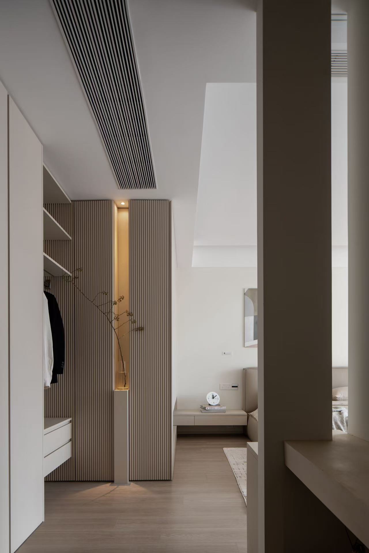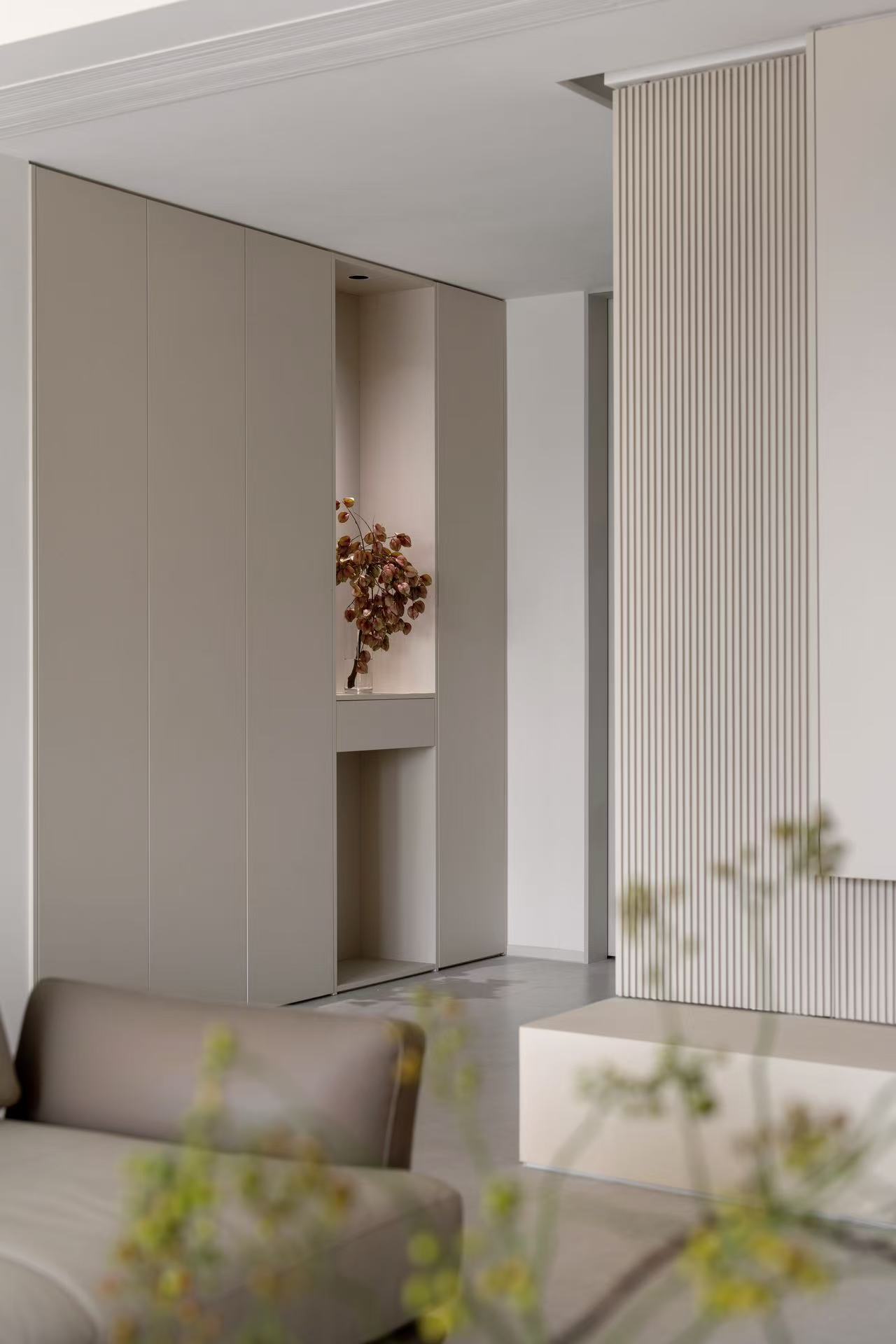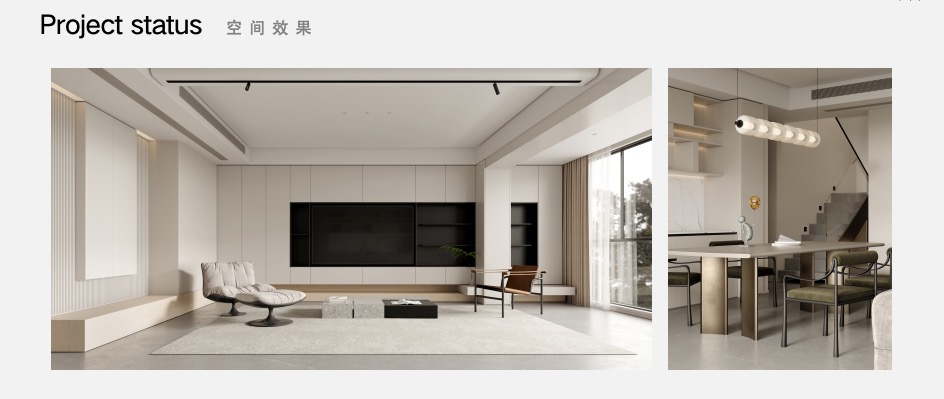 项目定位:本套设计作品以“除去浮沉,心归于简”为核心定位,针对追求“温暖静谧、自在自然”居住体验的业主,以“融尺度、温度、气度于简素空间”为策划思路。设计摒弃繁杂装饰,通过素雅色调、克制笔触与细节质感,描摹生活本真,既满足业主“向内悦纳自我、向外生长个性”的精神需求,又打造兼具艺术张力与日常舒适度的跃层空间,让家成为卸下工作疲惫、感受温柔氛围的栖居地。