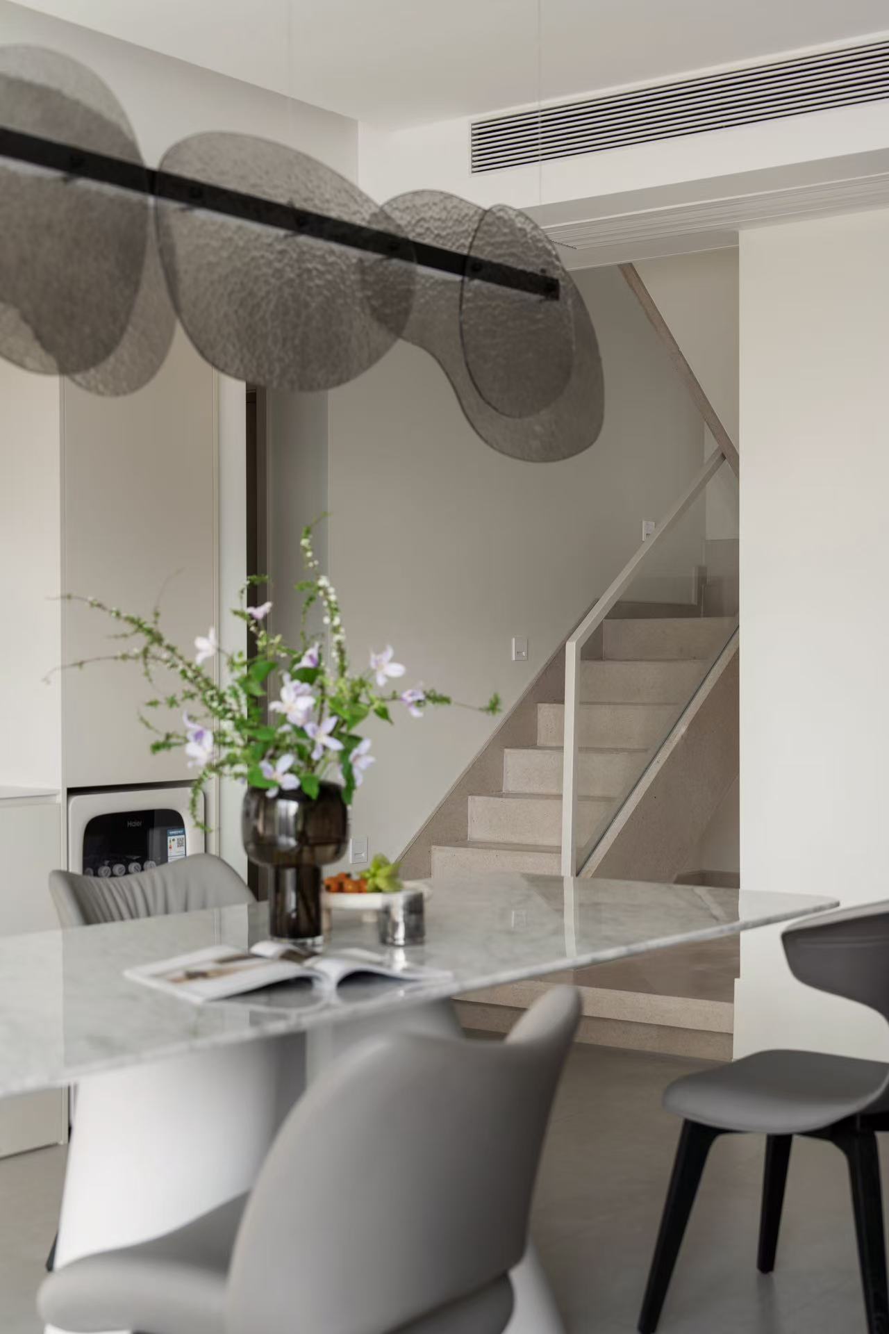 打破“跃层设计重华丽轻实用”的误区,在场景中平衡“艺术质感”与“日常自在”,如公共区域虽有艺术品点缀,但整体氛围平淡自然,避免过度设计带来的束缚感。
