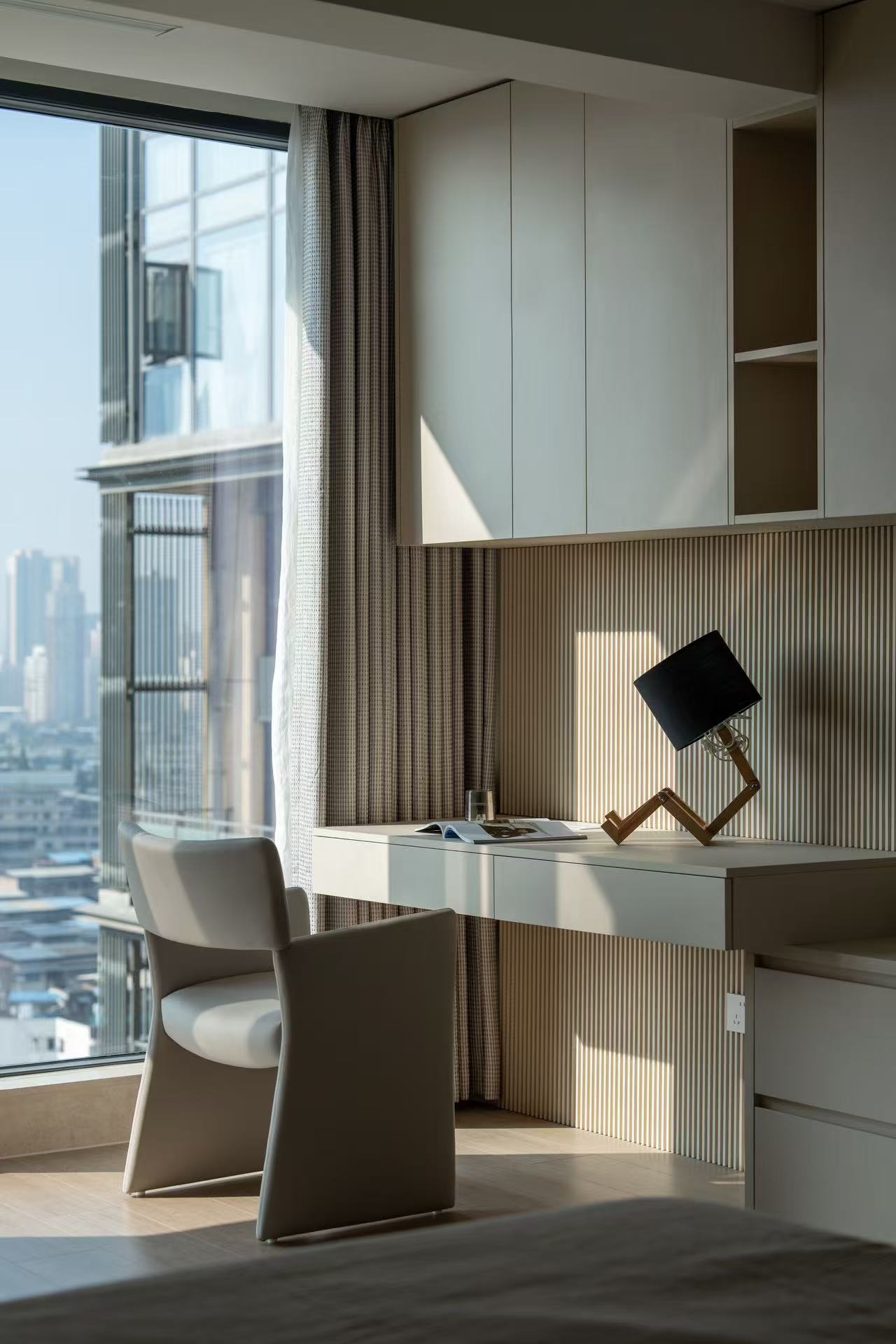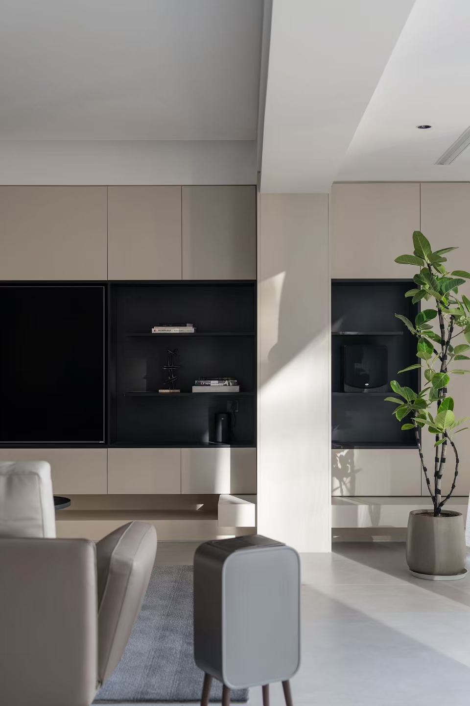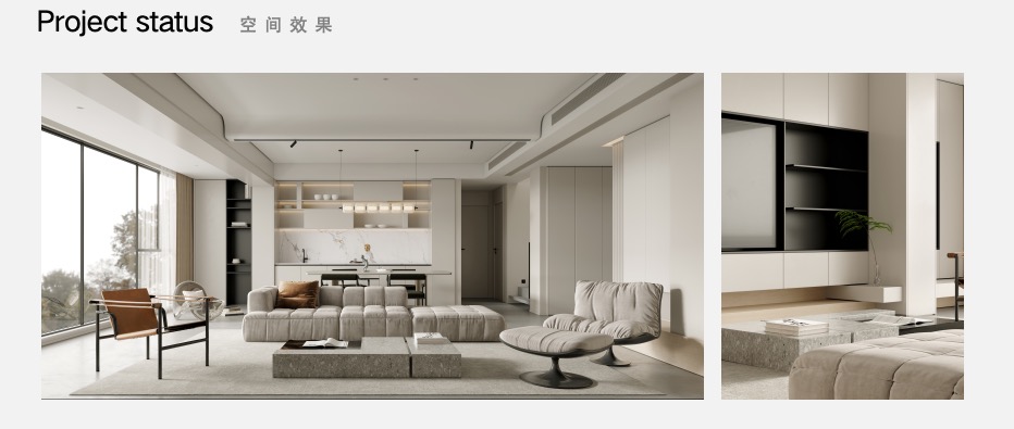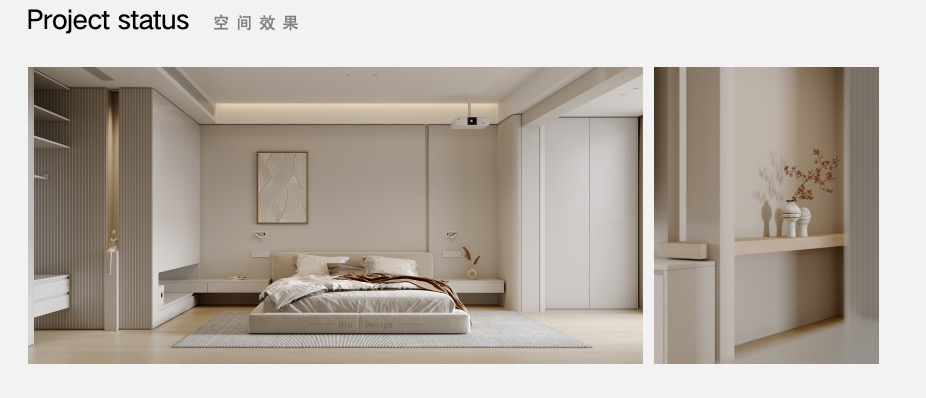 色彩适配:以“淡雅从容的颜色”为主,软装上不使用过多色彩,搭配沉稳的造境色调,整体色彩温润内敛,既契合“心归于简”的定位,又能营造温暖静谧的空间氛围,避免鲜艳色彩带来的视觉疲劳,贴合长期居住的舒适需求。