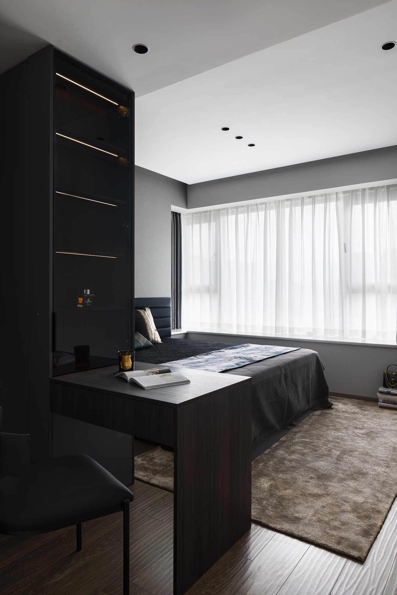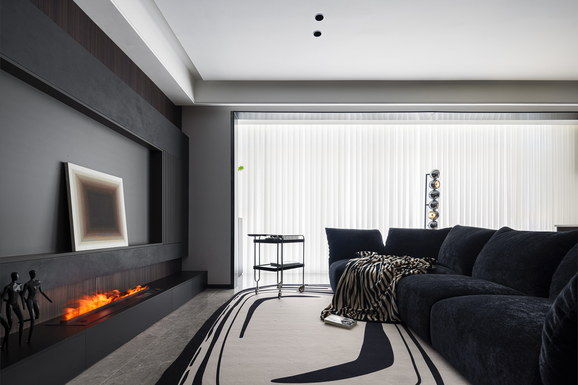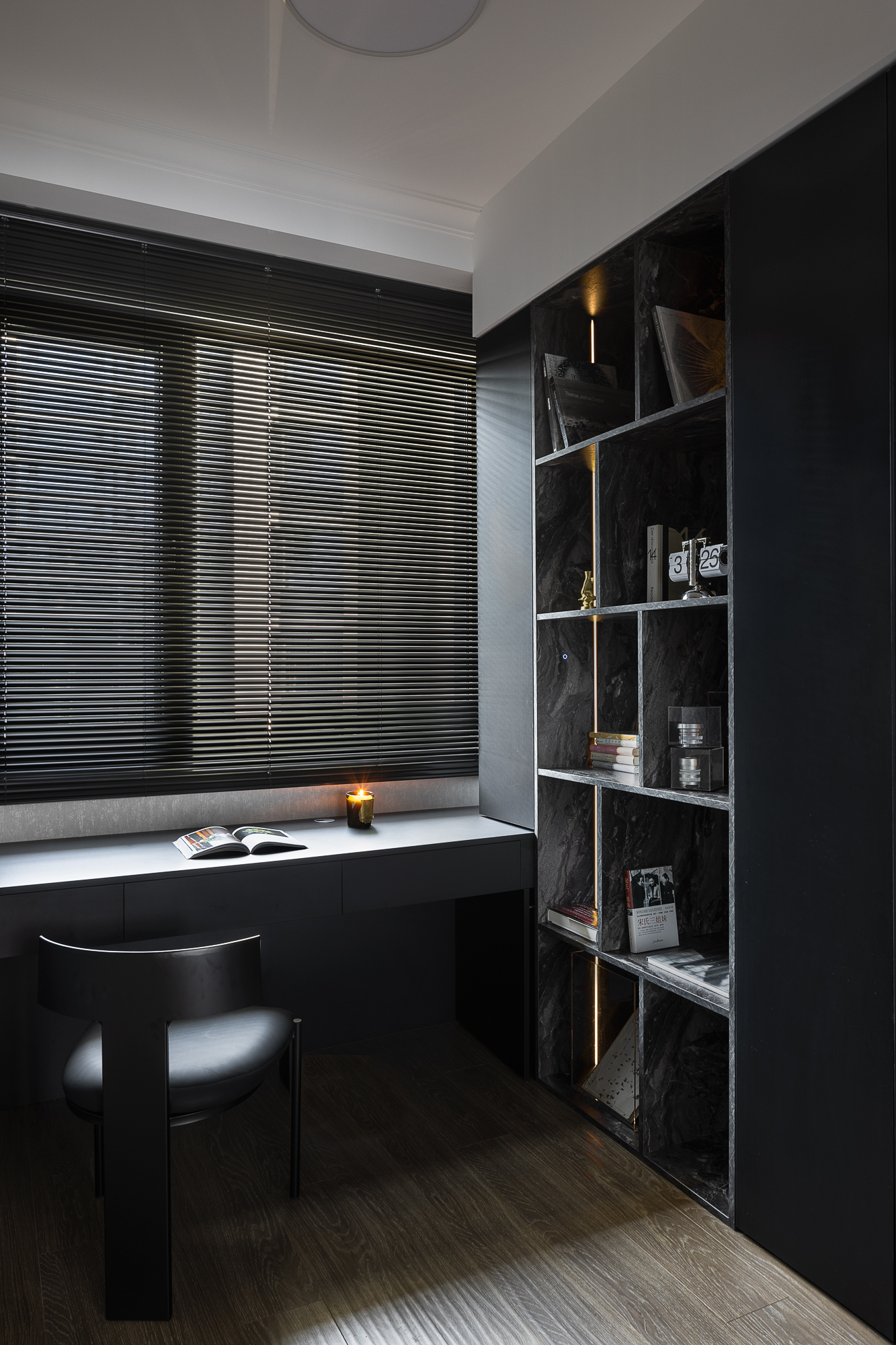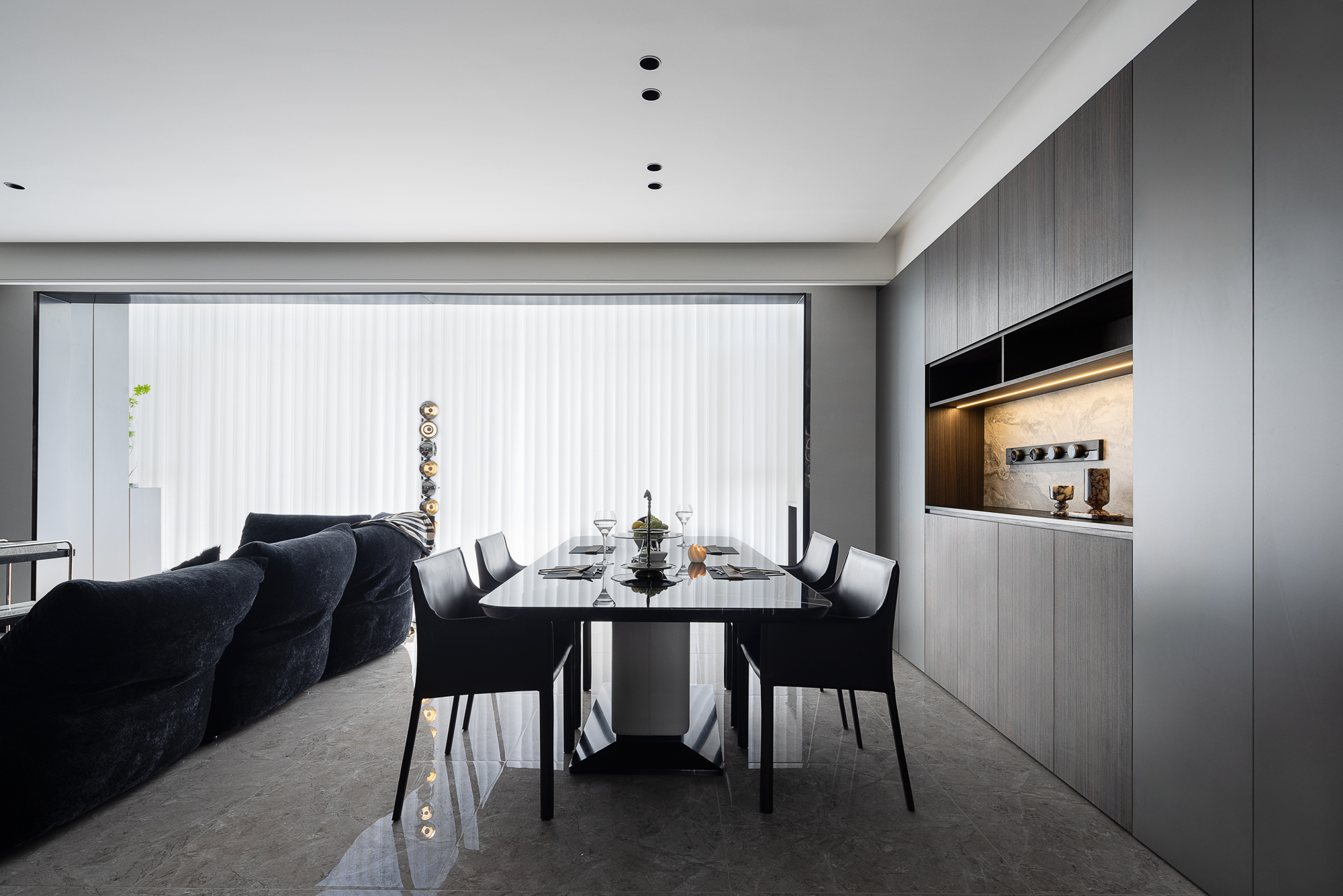 空间意境:破奢装明丽惯性,以暗黑肌理立基;质构混融柔化冷调,光影叙事赋隐奢松弛感。