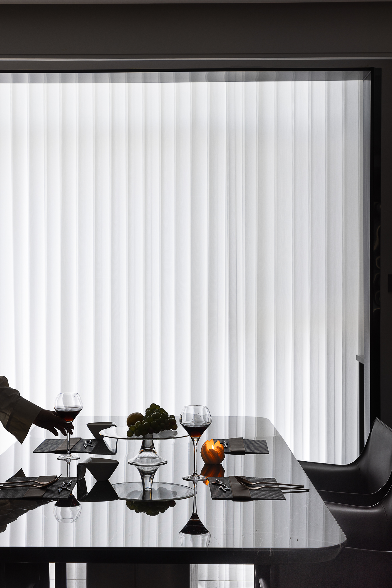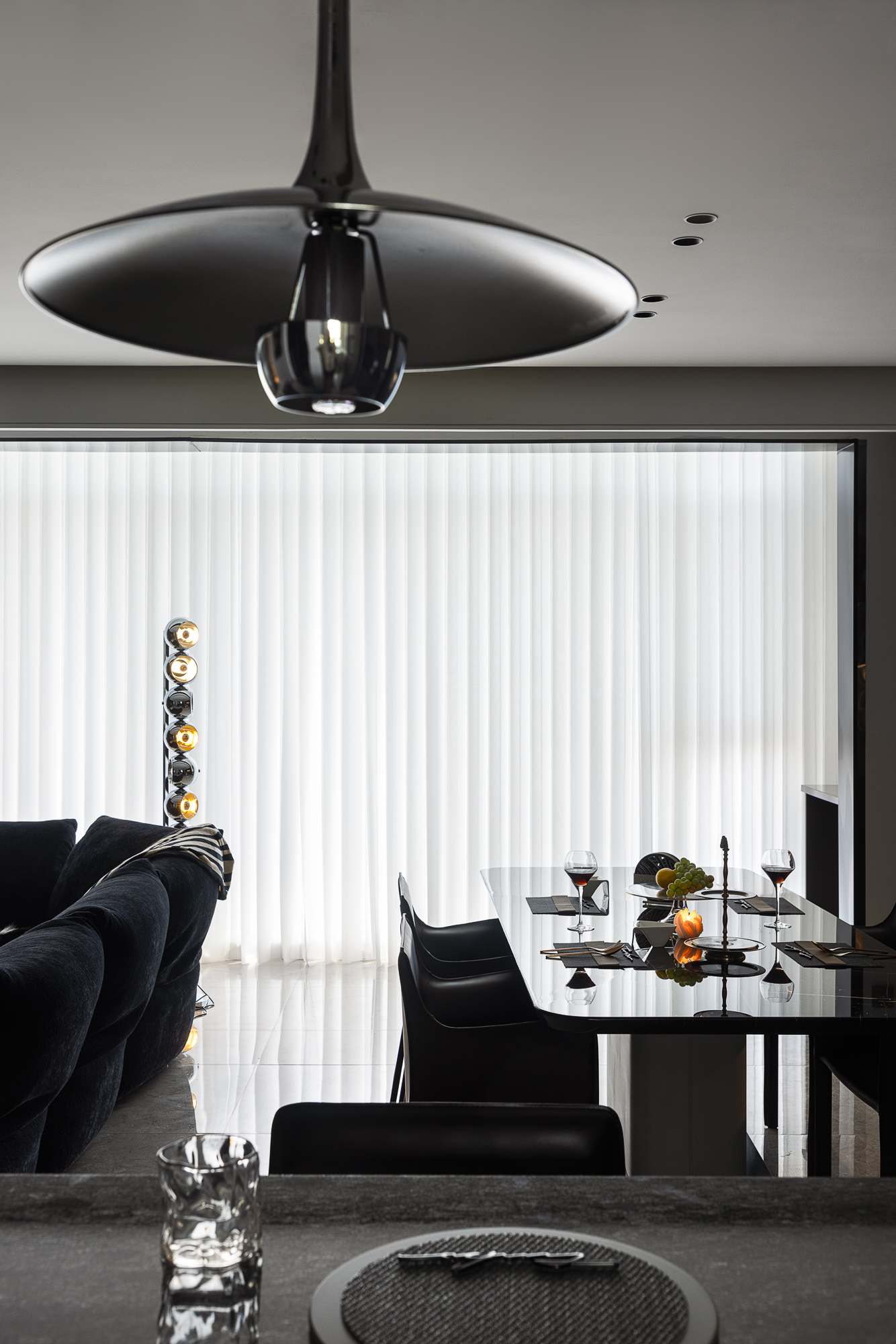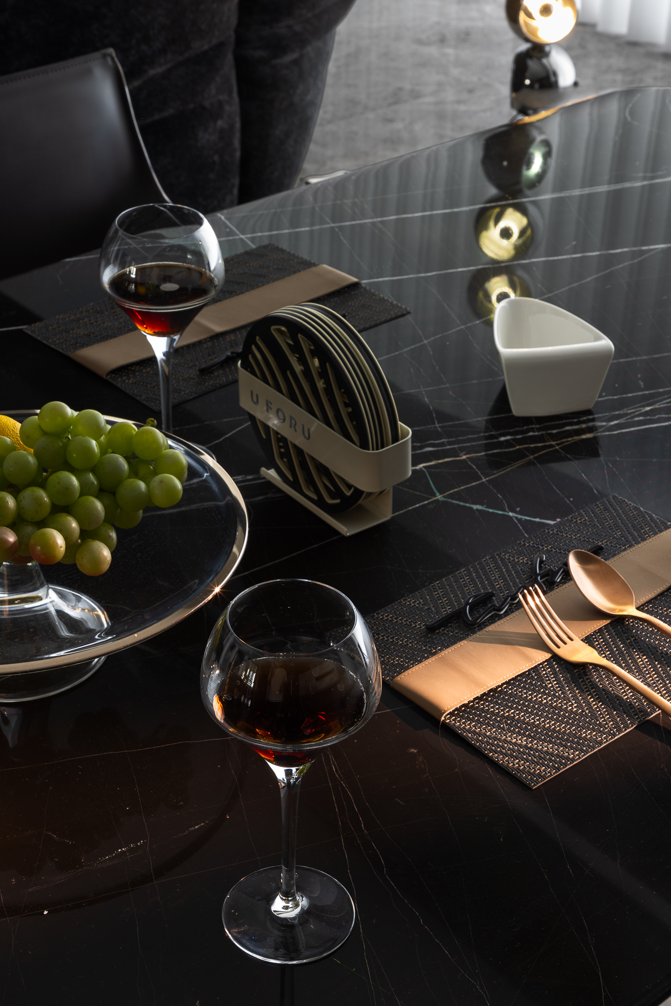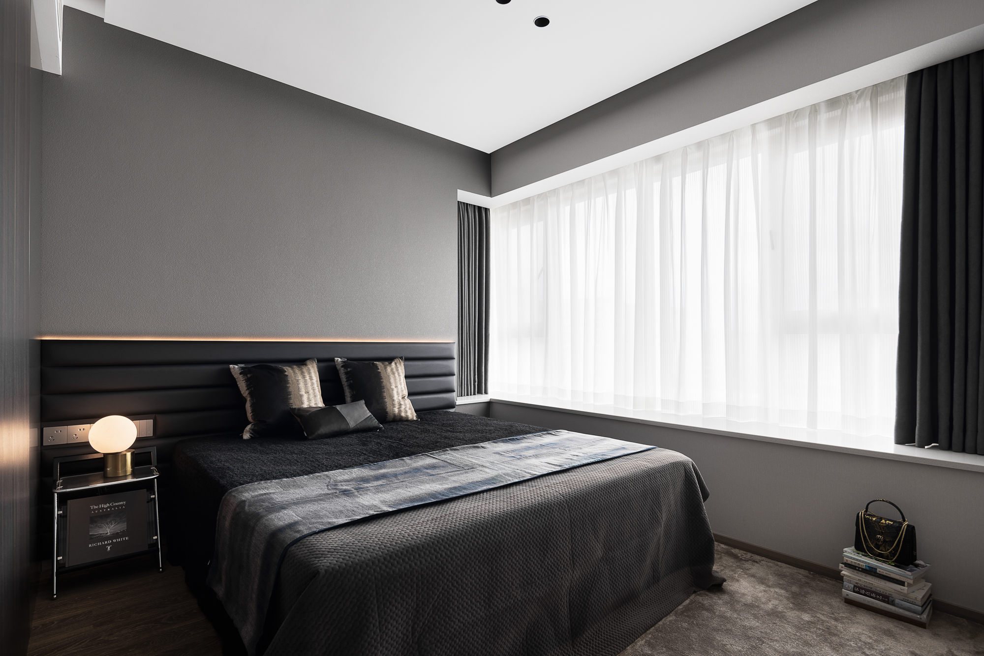 空间意境:破奢装明丽惯性,以暗黑肌理立基;质构混融柔化冷调,光影叙事赋隐奢松弛感。