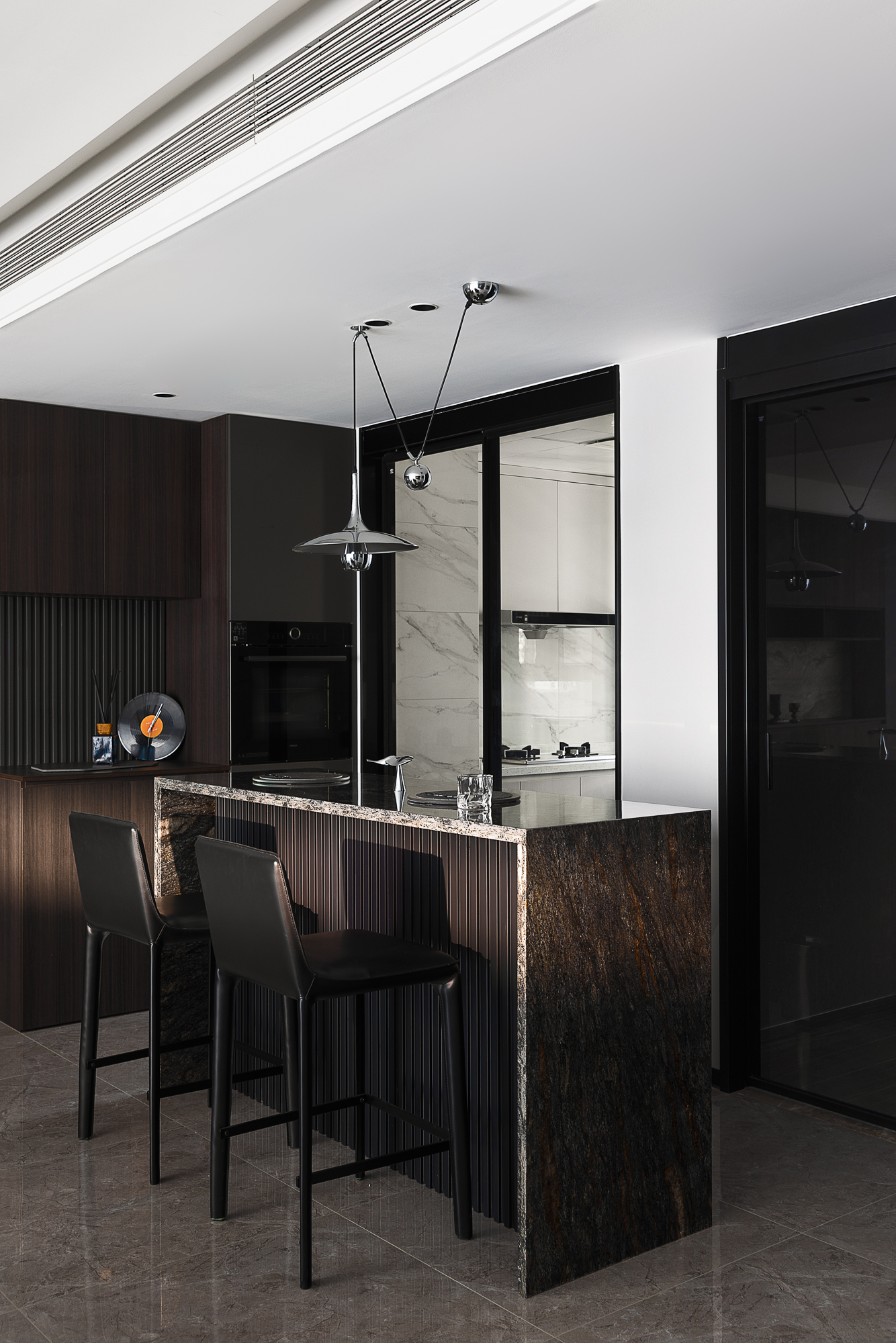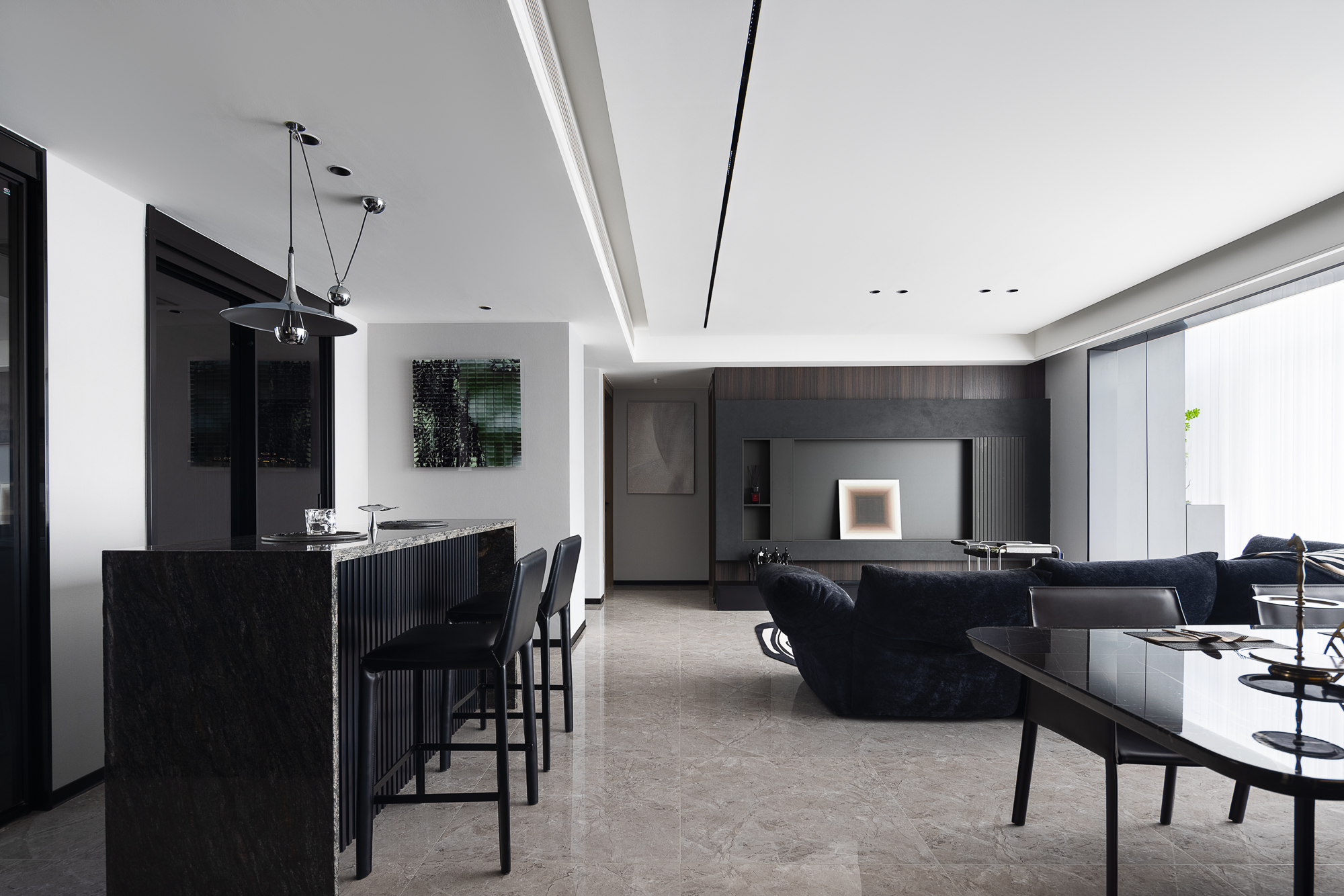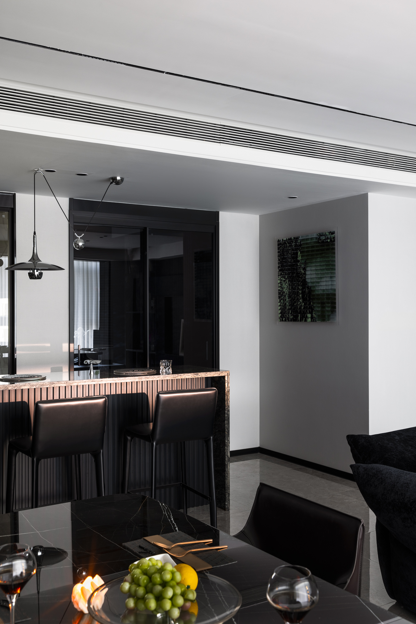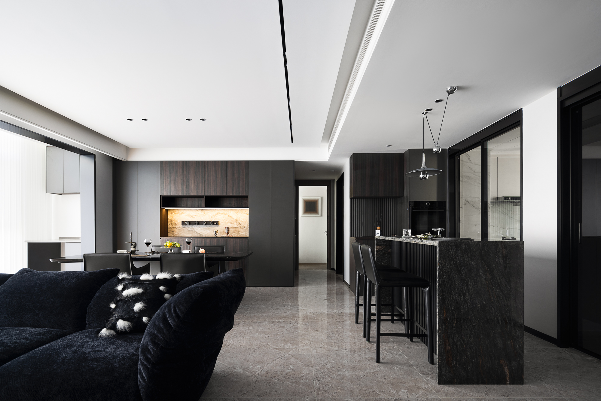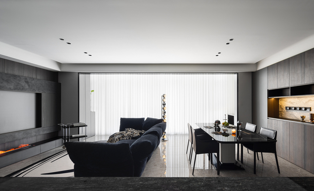 空间布局:破界开放式布局,消弥功能区壁垒,让暗黑奢调贯穿空间