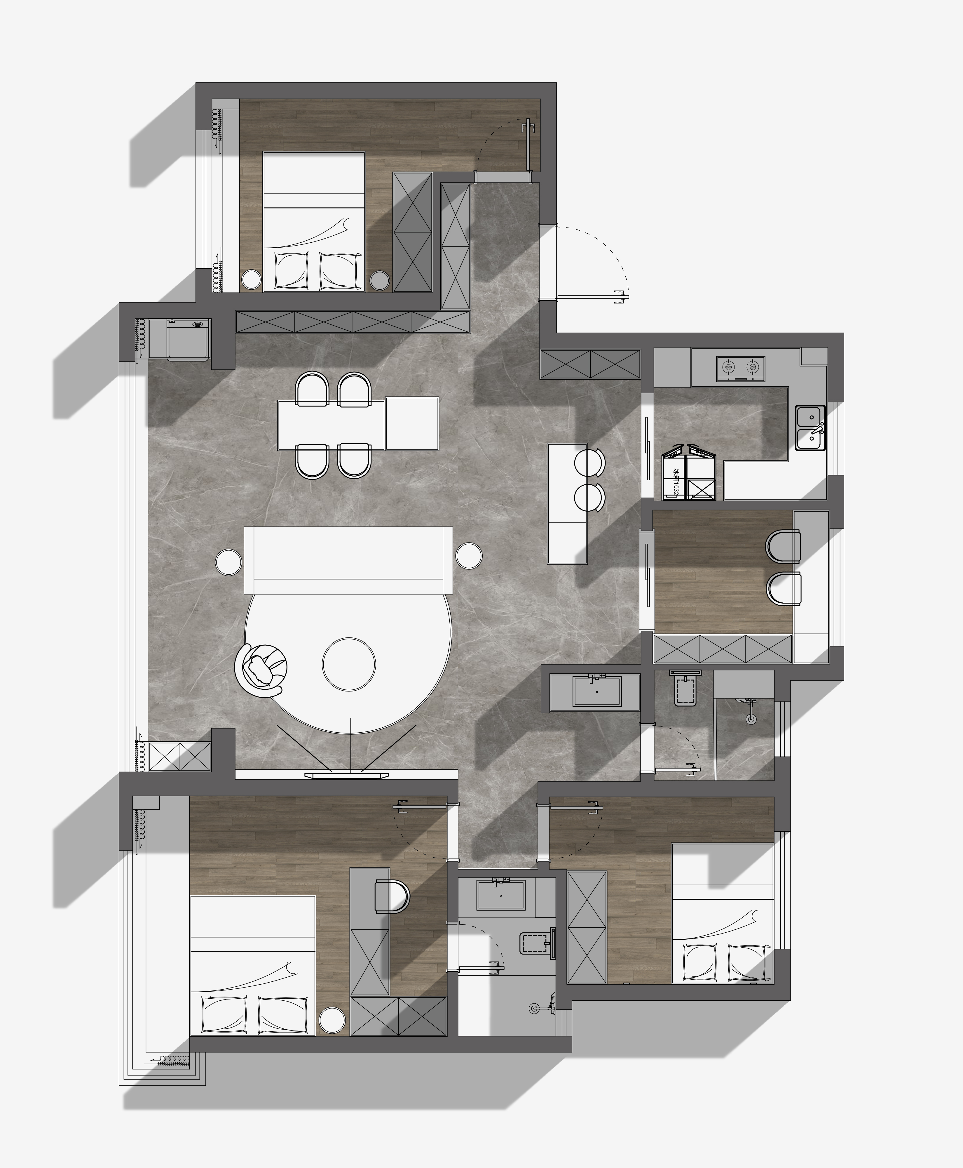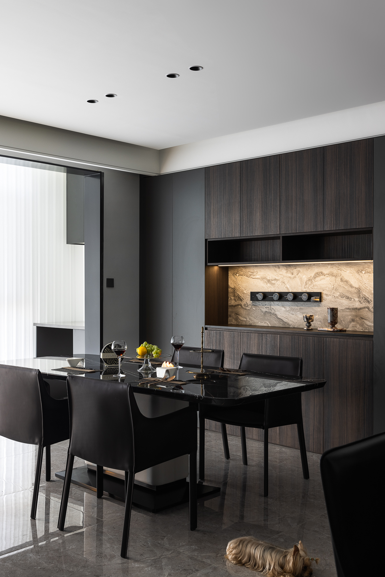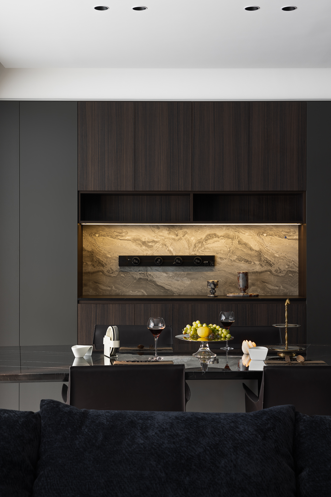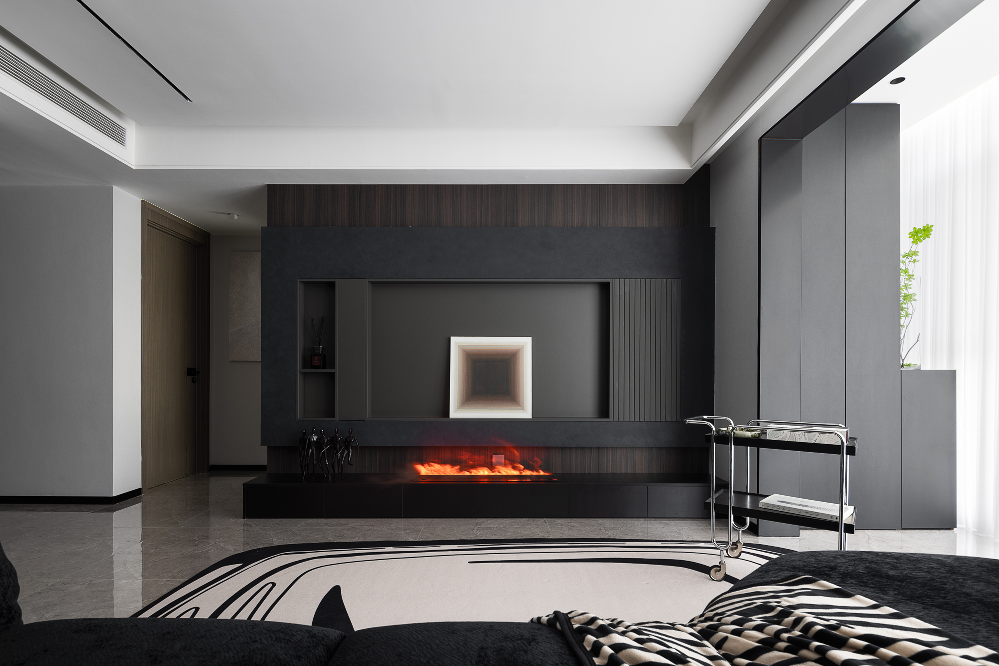 项目定位:暗黑奢调,质构共生,精宅软装凝现代艺境私域之雅韵