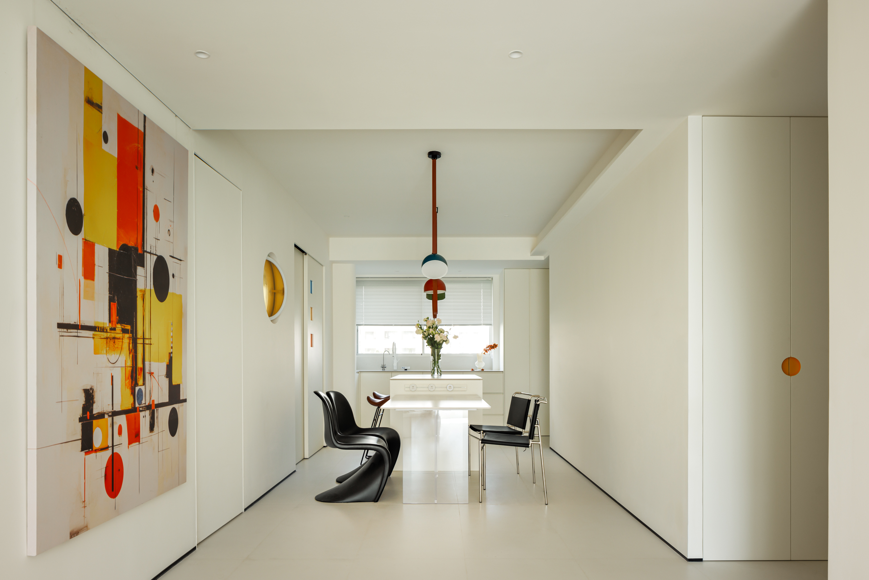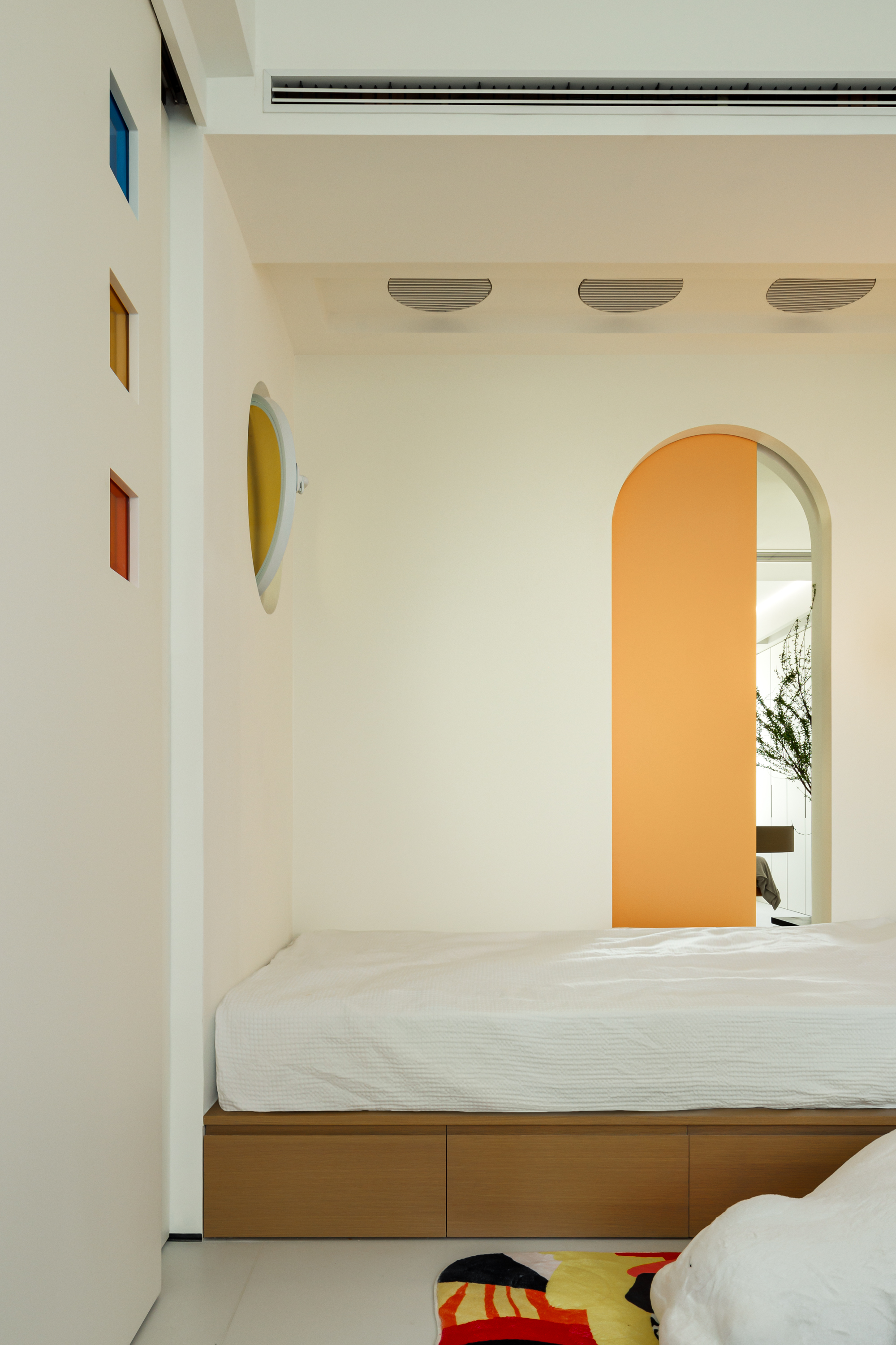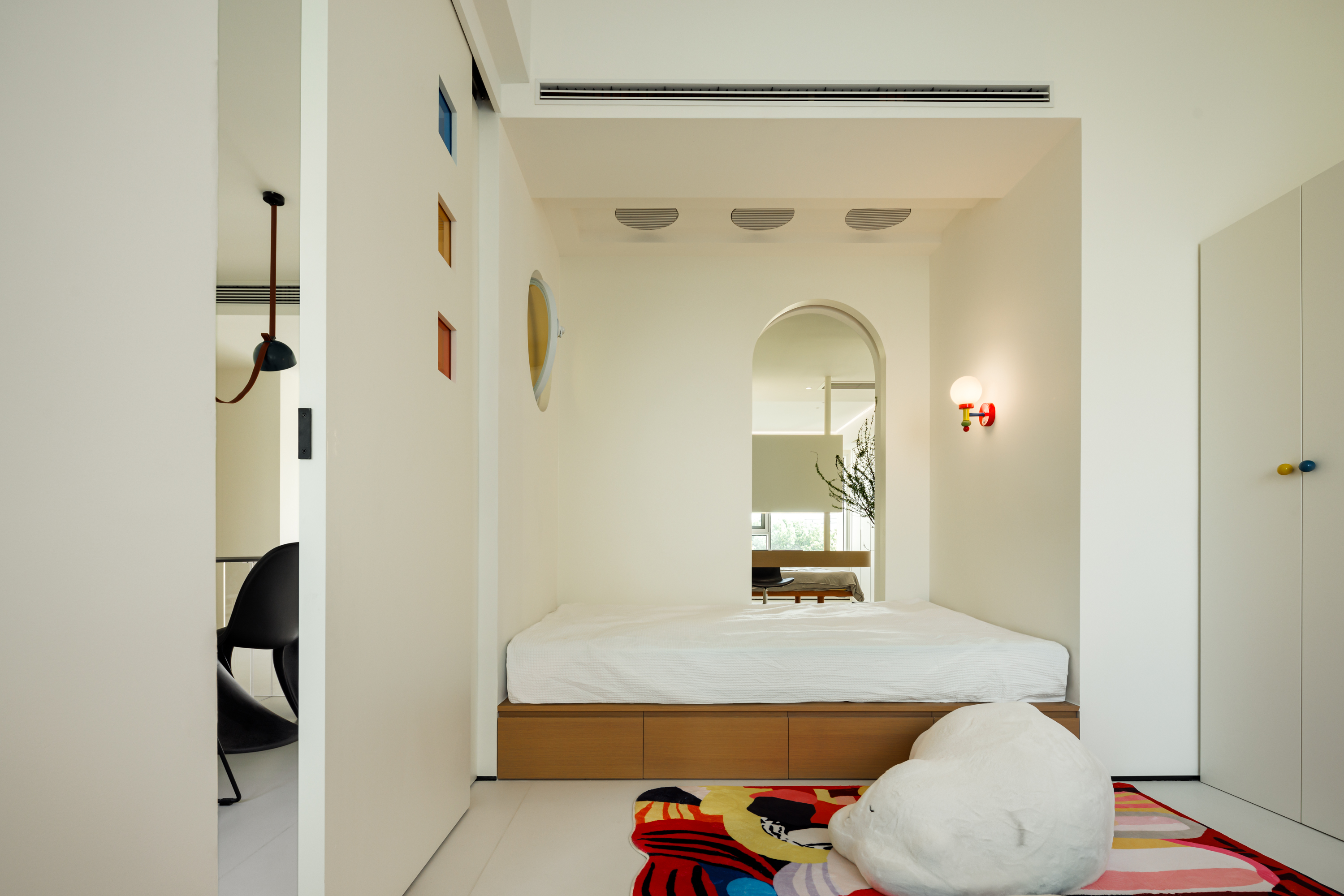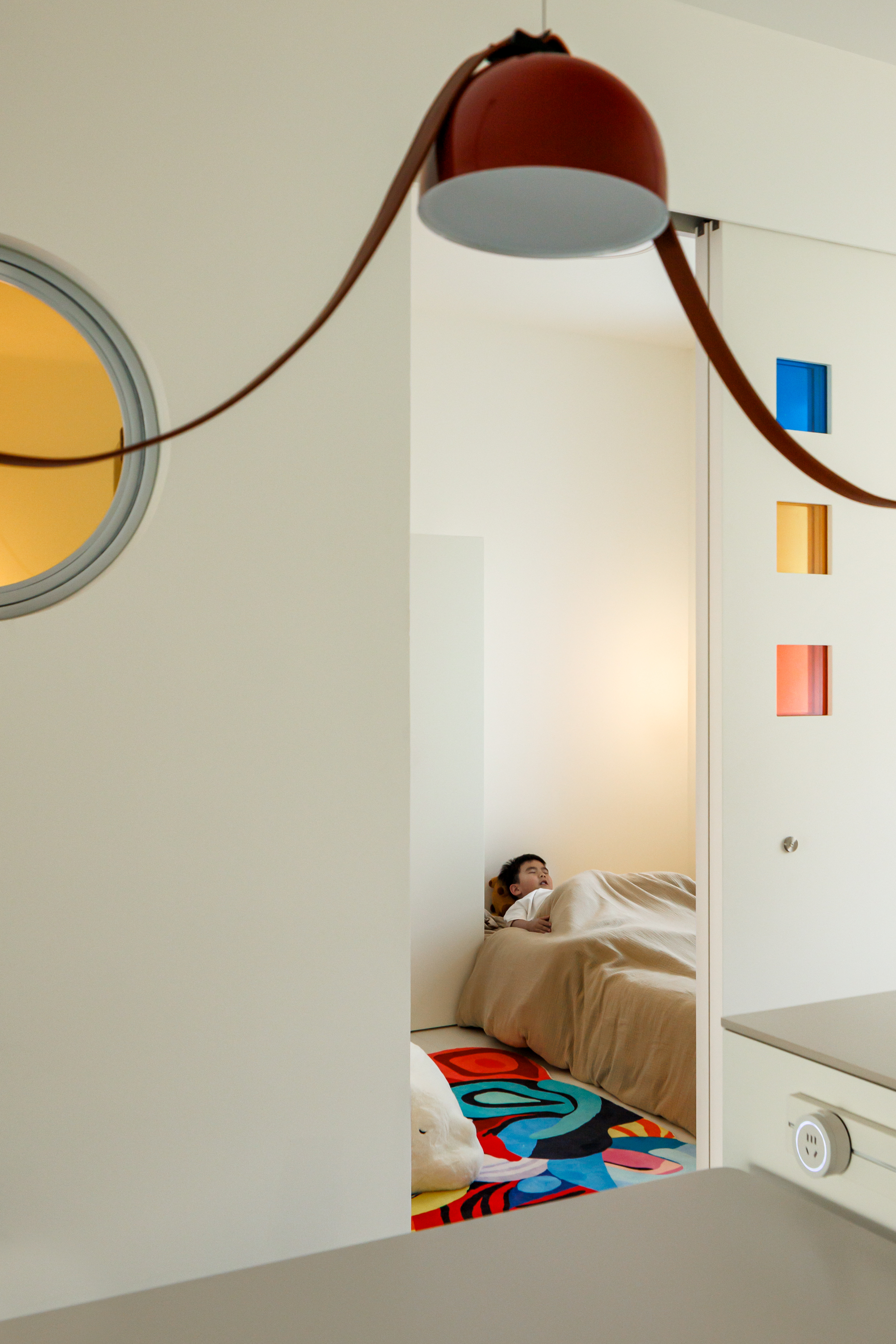 色彩与材质叙事:通过彩色玻璃、几何造型与局部跳色,在简约基底上营造出轻快、充满探索感的童趣氛围,让家本身成为启发想象力的舞台。 -