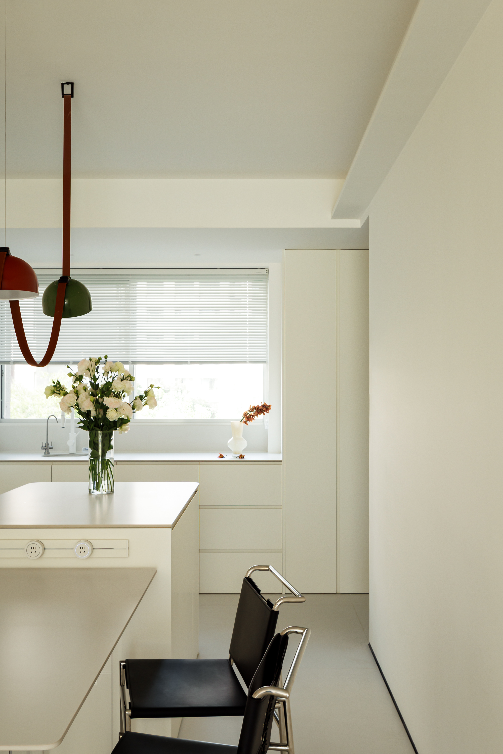 沿窗做满餐边柜,收纳力满分。岛台暗藏插座,烘焙、办公随心用。