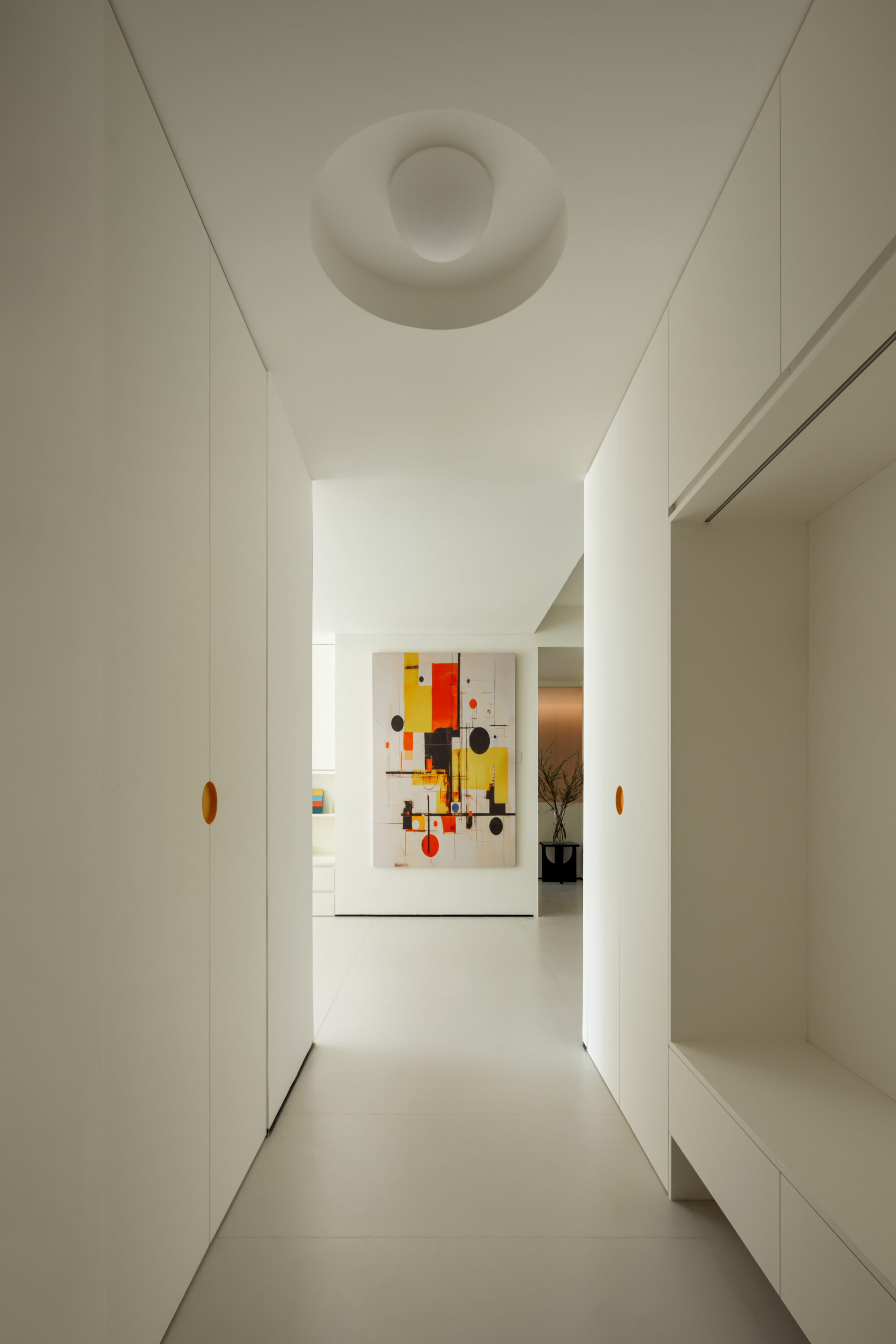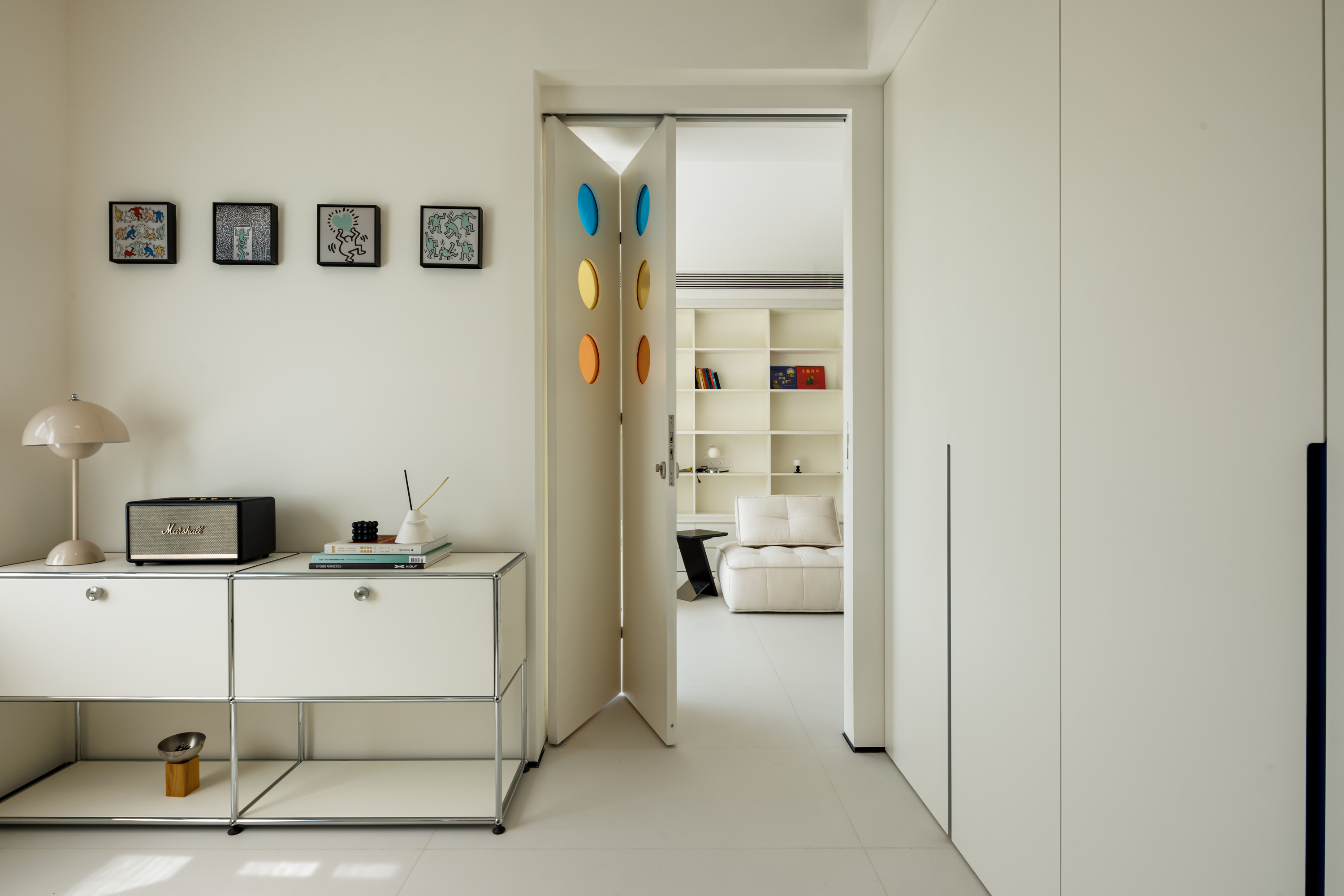 打通相邻房间,主卧与儿童房直连。夜里有任何动静,父母一步即达。幼儿期的安全感,是设计给予的第一份礼物。