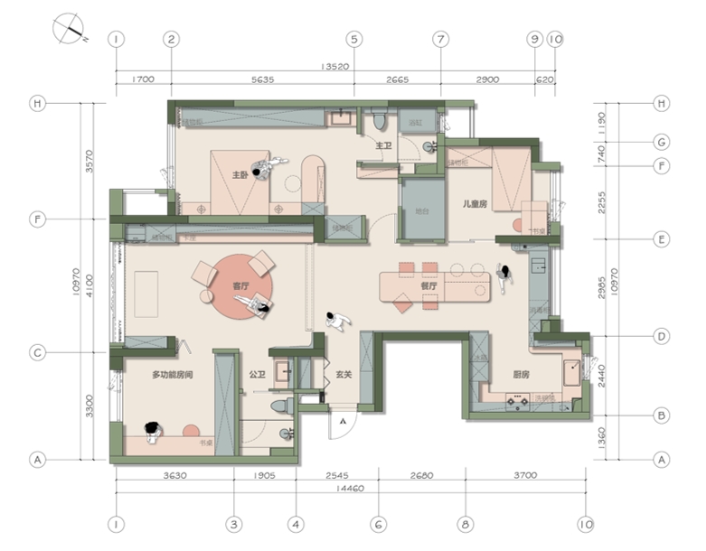 本案以“家庭陪伴”为核心驱动力,突破传统三居室格局,将住宅重塑为一个安全、开放、可共同成长的“家庭互动容器”。设计不仅解决两位儿童现阶段的看护与玩乐需求,更通过弹性布局与复合功能,为阅读、兴趣发展与亲子共处预留了随时间演变的空间,实现了从“居住空间”到“成长载体”的定位升级。