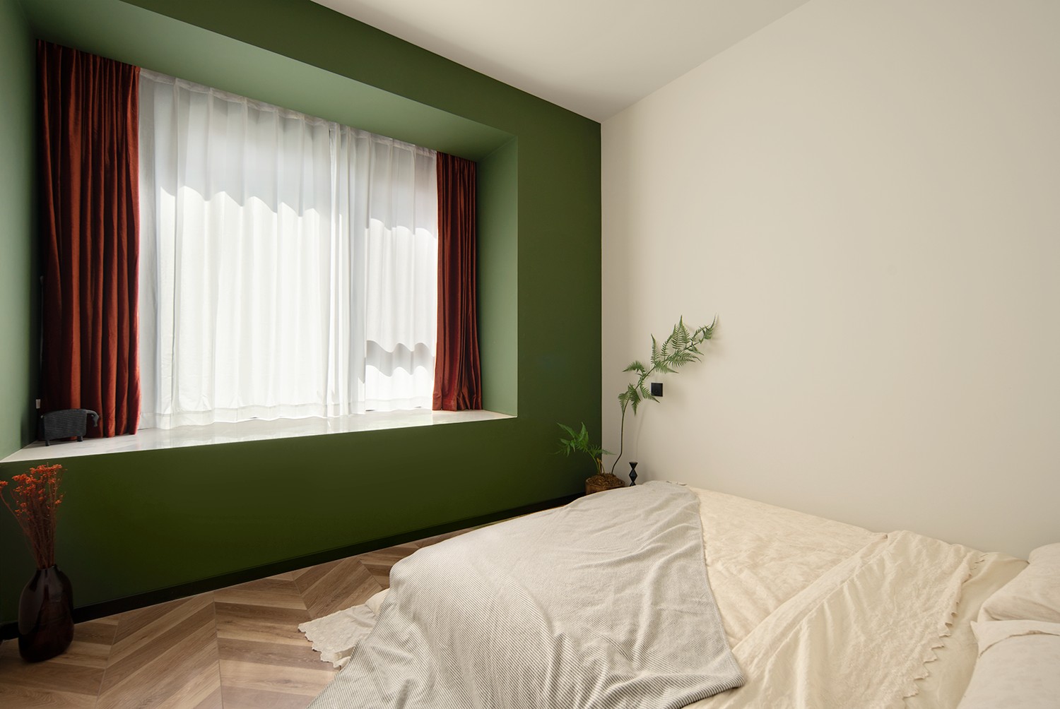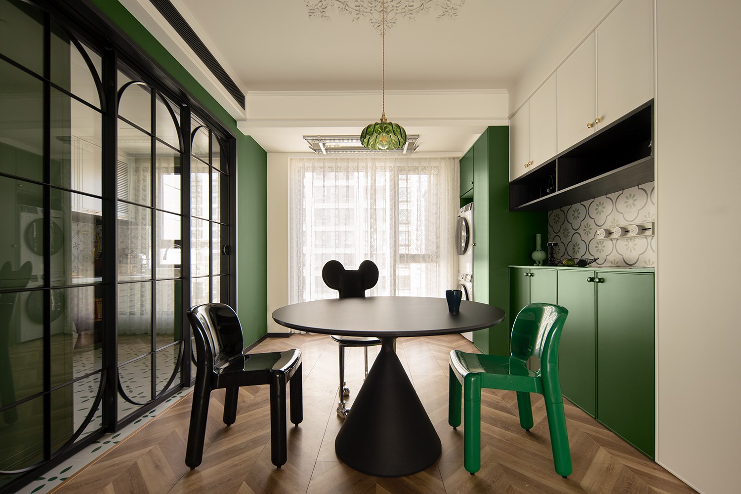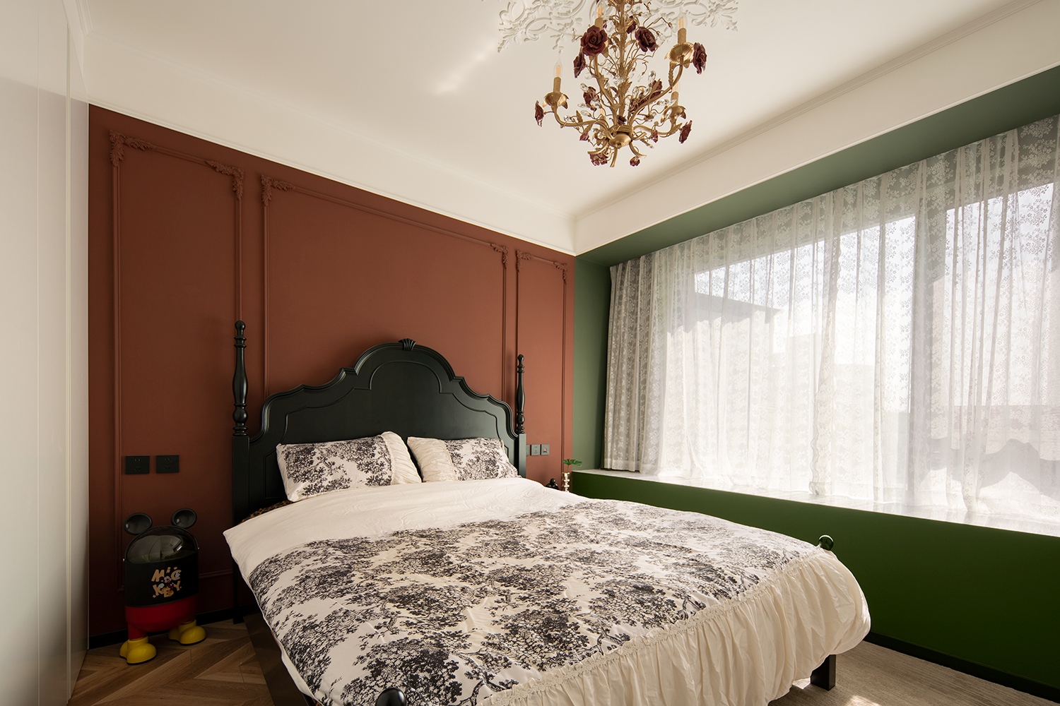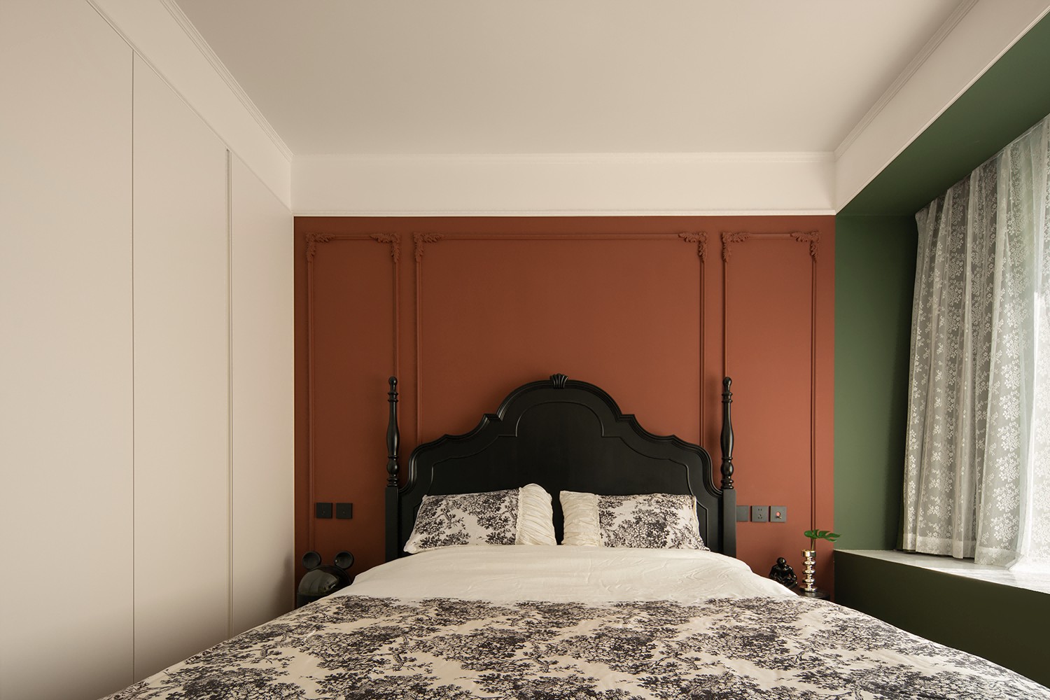 朱红色与墨绿色相互碰撞,古典的拱门造型,带有浓郁的宫廷色彩,又富含感性,优雅的格调带着真实的古朴和原味的典雅。