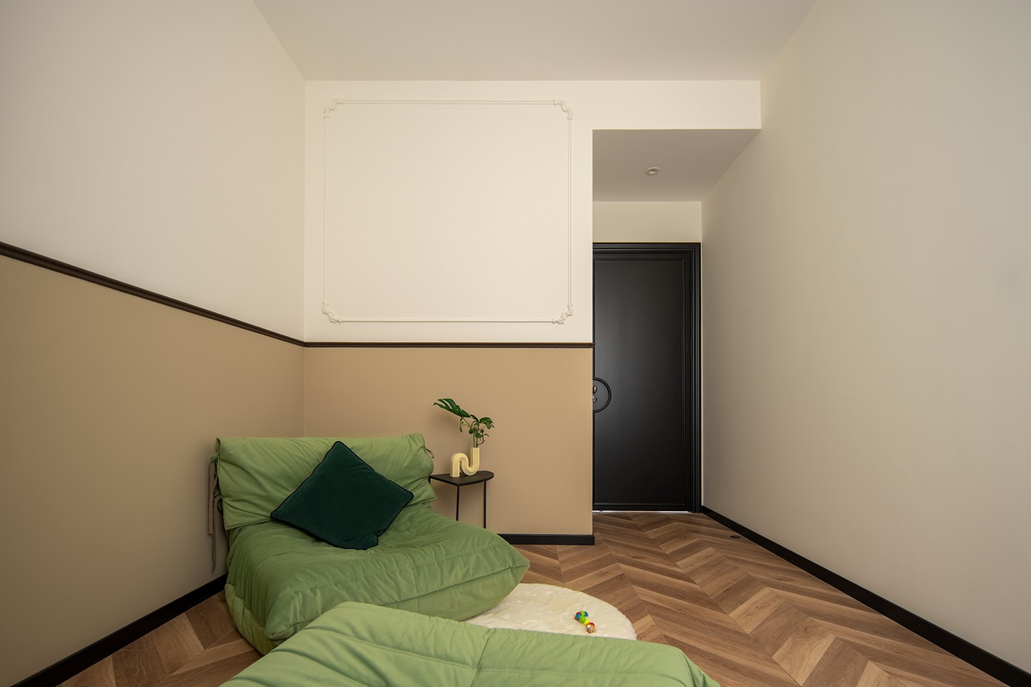 简洁的顶面设计轻盈不厚重,运用丰富的色彩使空间更有温度,软装配饰满而不乱,强烈的包裹感使人更有安全感。 -